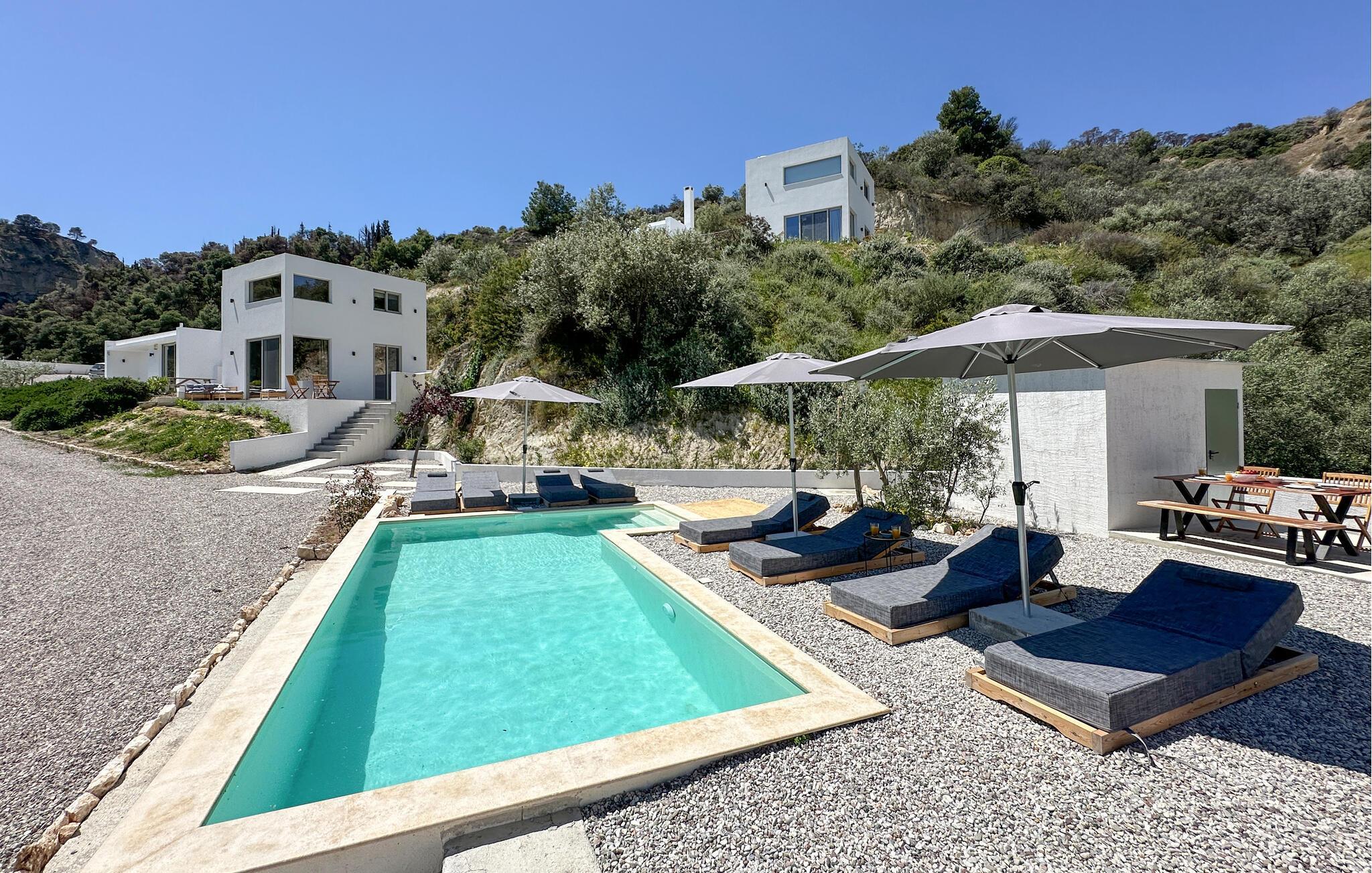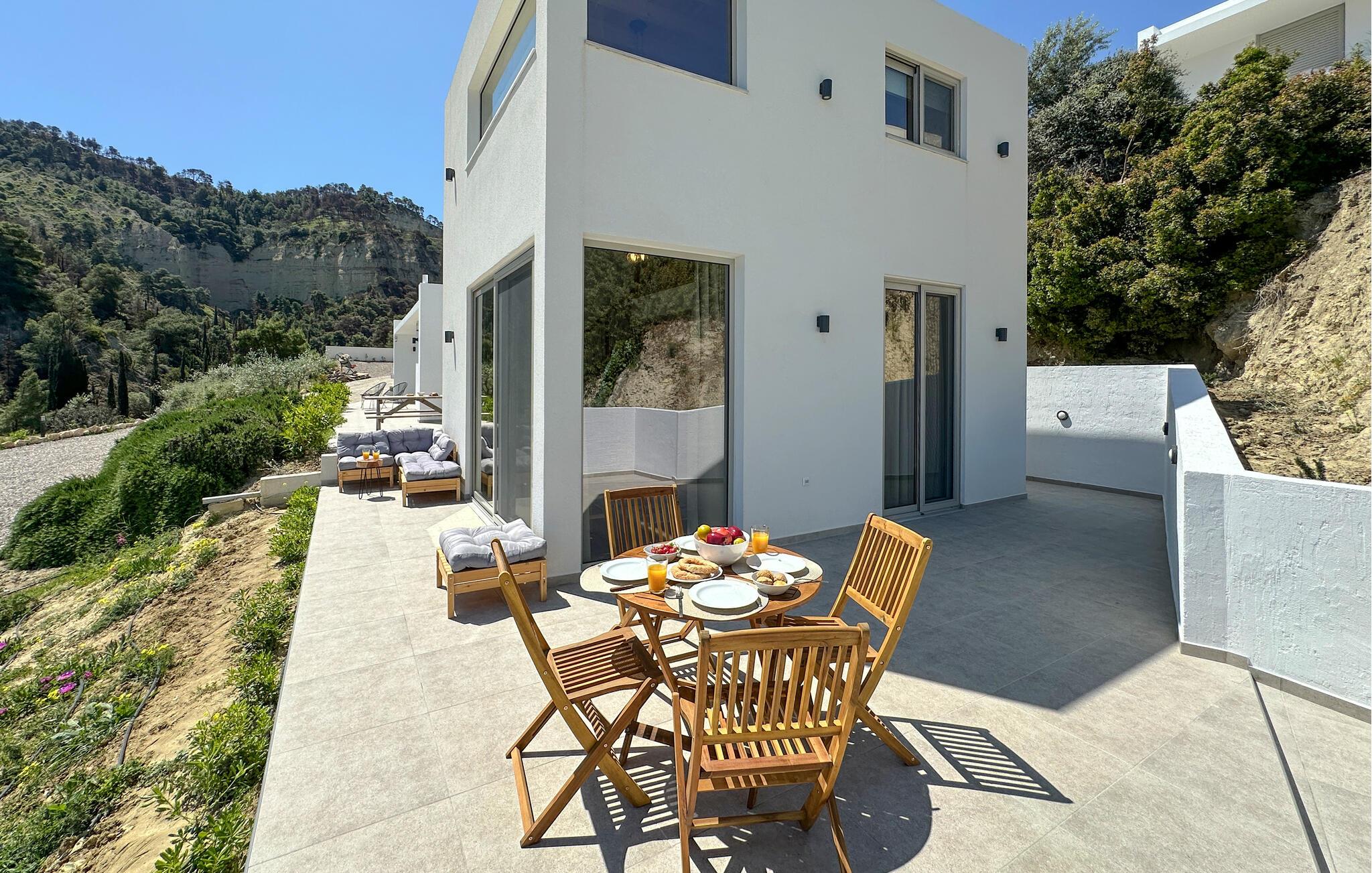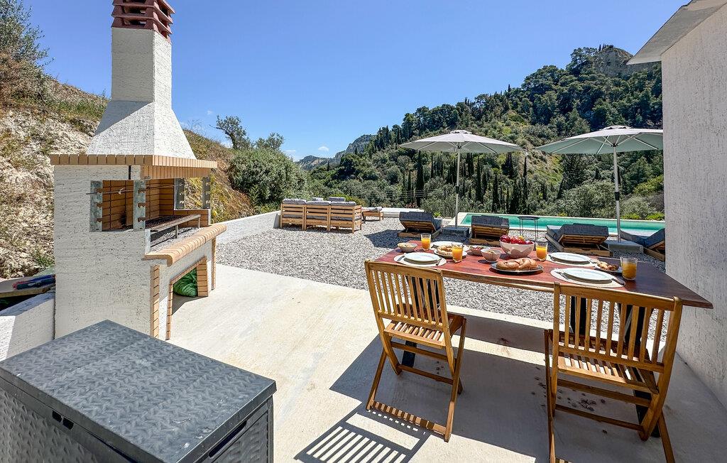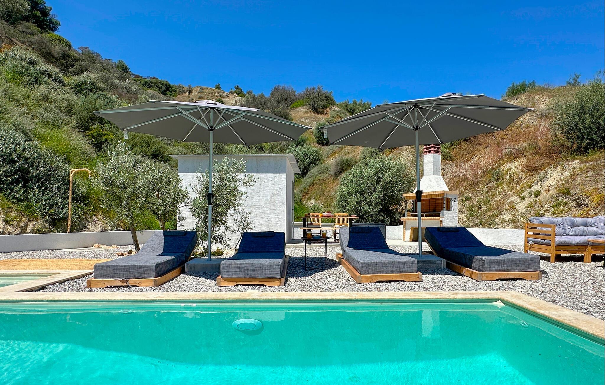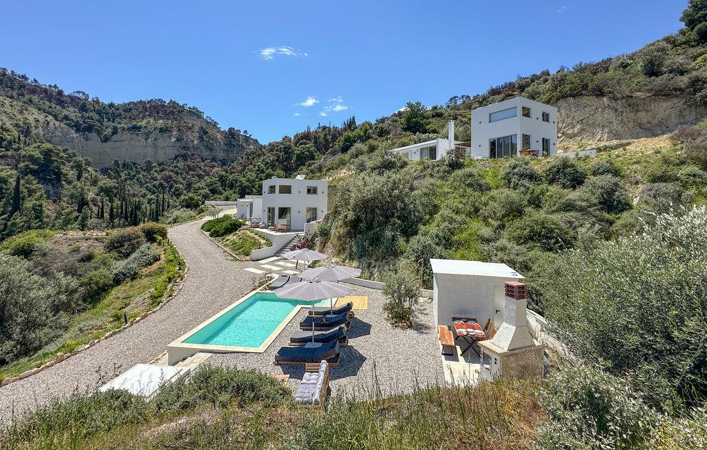 Overrask familien med en solrig ferie i dette komfortable feriehus med havudsigt og adgang til poolen. Dette moderne feriehus forkæler jer med en smuk udsigt over Korinthbugten og byder jer velkommen med et lyst og stilfuldt interiør. Glæd jer til harmoniske måltider og planlæg jeres aktiviteter i den friske atmosfære i det åbne opholdsrum. Efter en lang dag kan I streame en film på sofaen eller udfordre jer selv til et brætspil. Den åbne terrasse er det ideelle sted til en dejlig morgenmad udendørs. Forfrisk jer i den fælles pool og nyd solen på de komfortable liggestole. Hyg jer omkring grillen og snak over græsk vin i den lune sommernat. Vandr gennem de fantastiske Helmos-bjerge og oplev skjulte vandfald, eller slentre langs den maleriske promenade i Xylokastro med dens traditionelle tavernaer. Hold en picnic under fyrretræerne i Pefkias-skoven ved havet, tag den historiske tandhjulsbane gennem den betagende Vouraikos-kløft, eller tag en dagstur til det gamle Korinth.