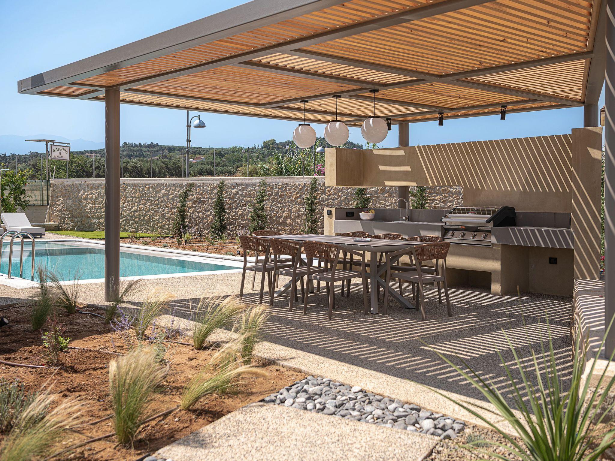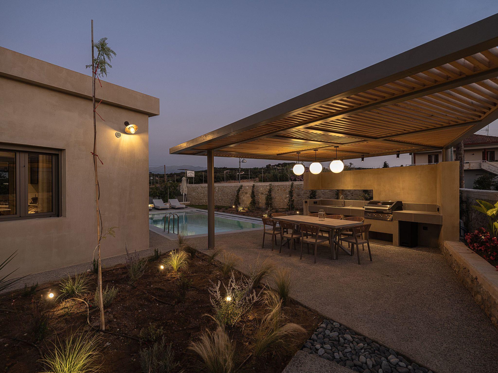 Enjoy long evenings under the pergola with a Gas BBQ and outdoor dining area – a dreamy spot for sunset dinners.• Private Orange GroveNext to the villa lies an exclusive orange grove, accessible only to guests. Stroll among the trees, pick fresh fruit, or simply relax under the shade and embrace the tranquil rhythm of rural Crete.