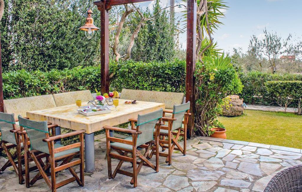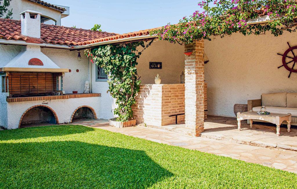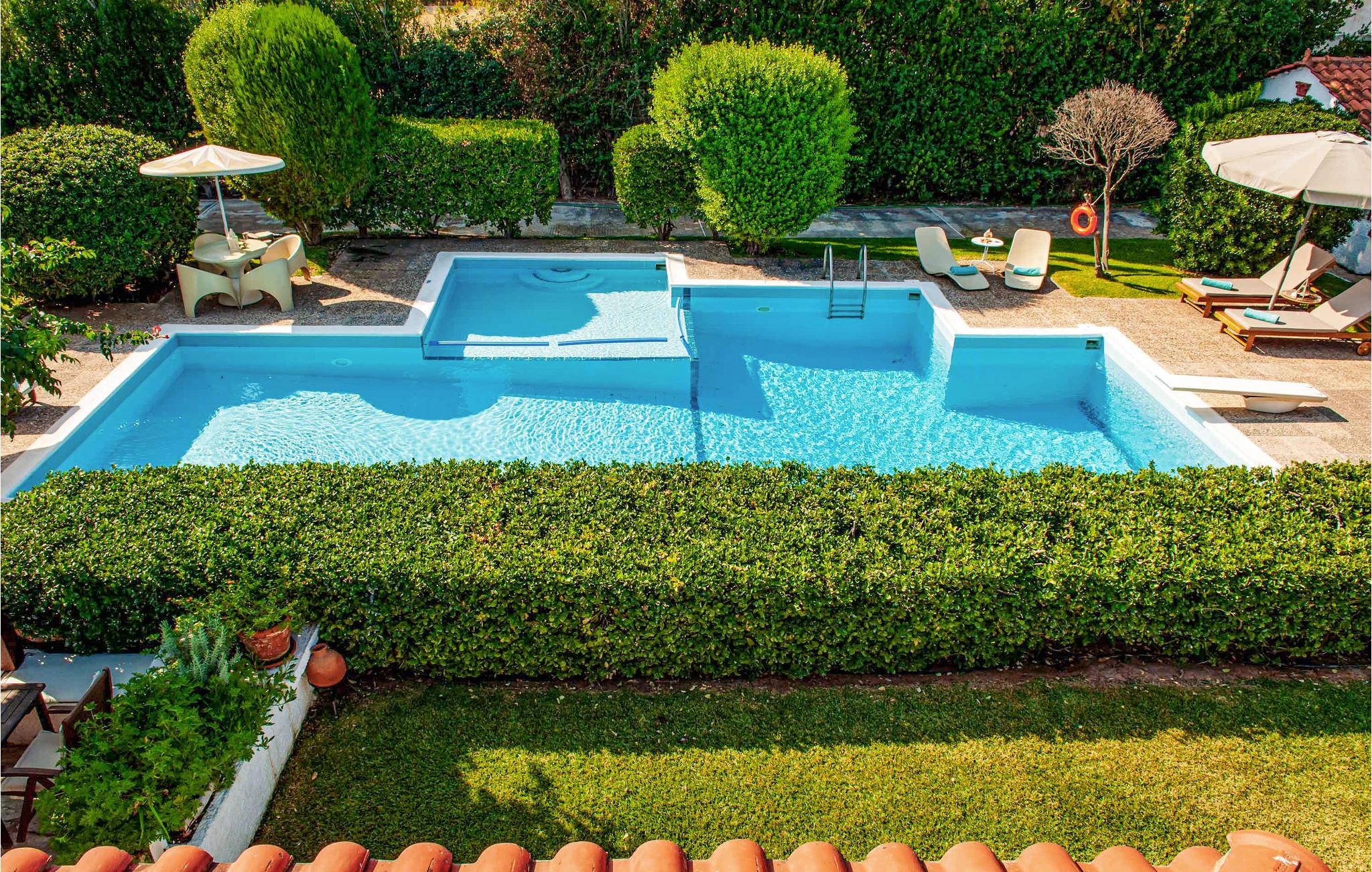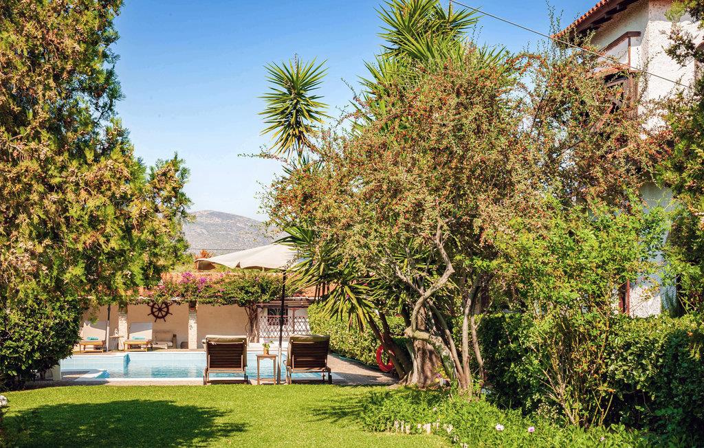 Huset er omgivet af en betagende have med træer og blomster i alle regnbuens farver. På husets højre side er der en grillplads med havemøbler, hvor I kan lave lækker mad. På den store terrasse ligger poolen, her er også solsenge, bord og stole – og det er et oplagt at spise morgenmaden samme sted. Senere på dagen kan I nyde en kølig drink fra baren og sætte jer i skyggen.