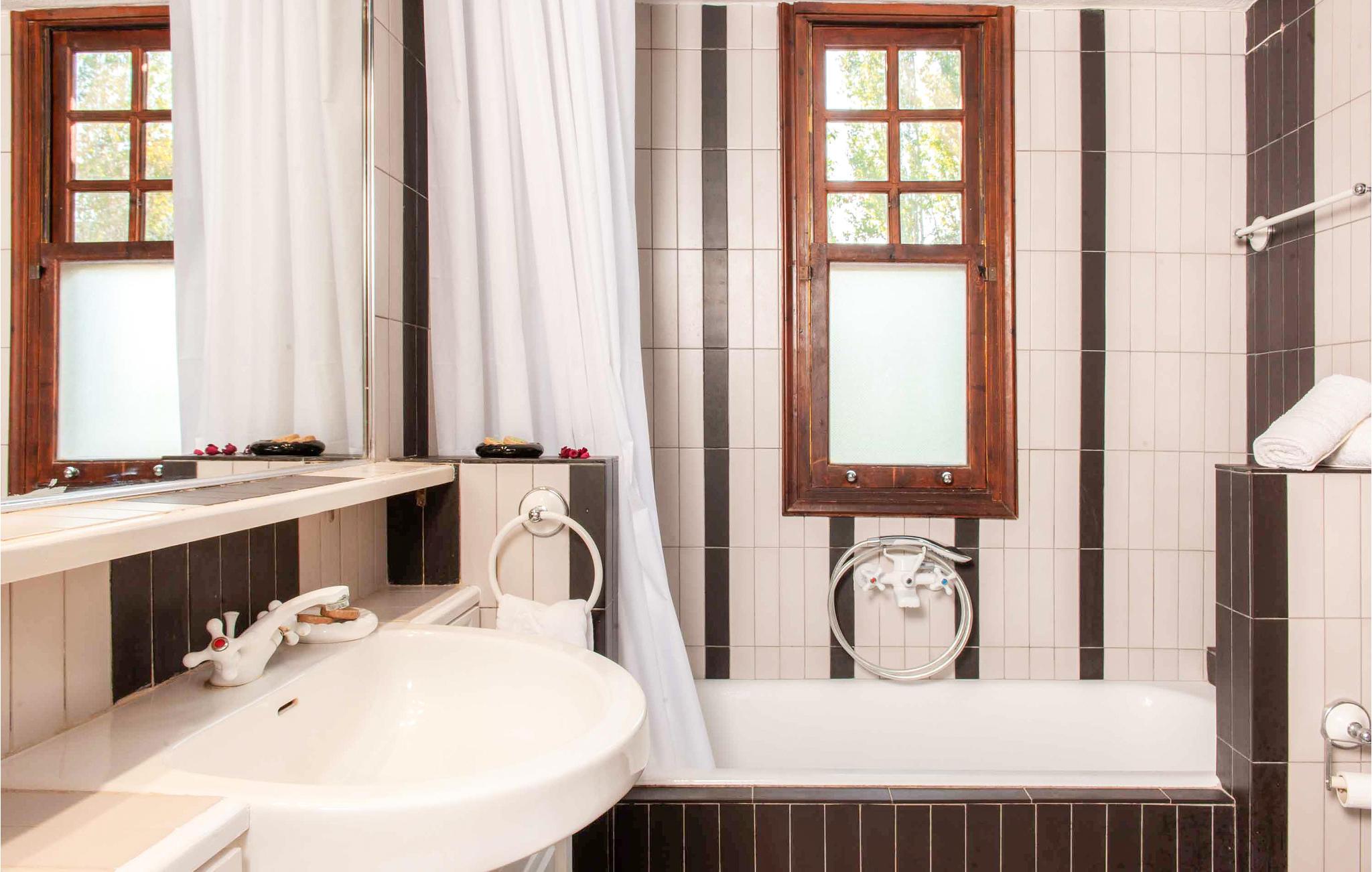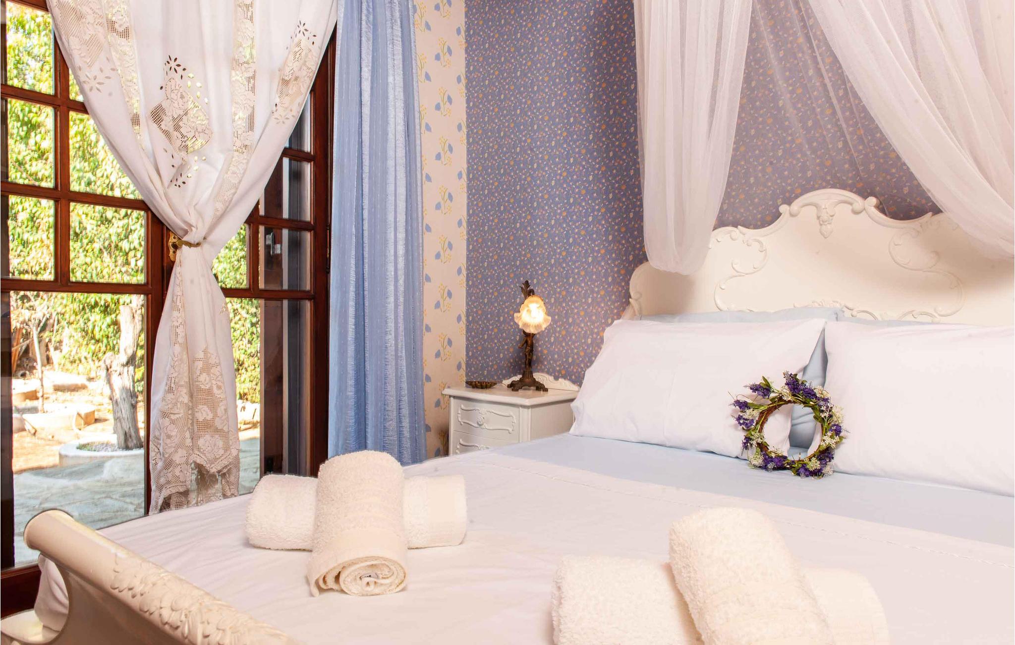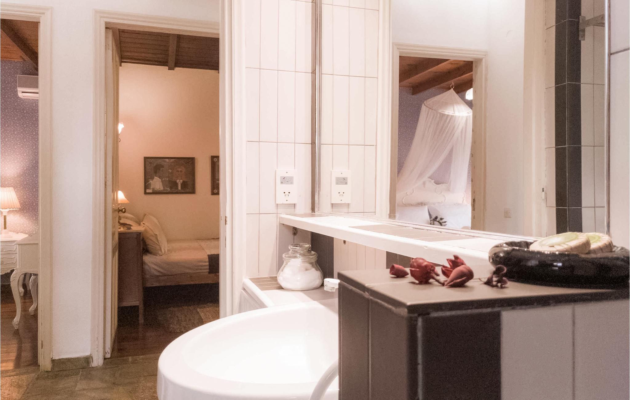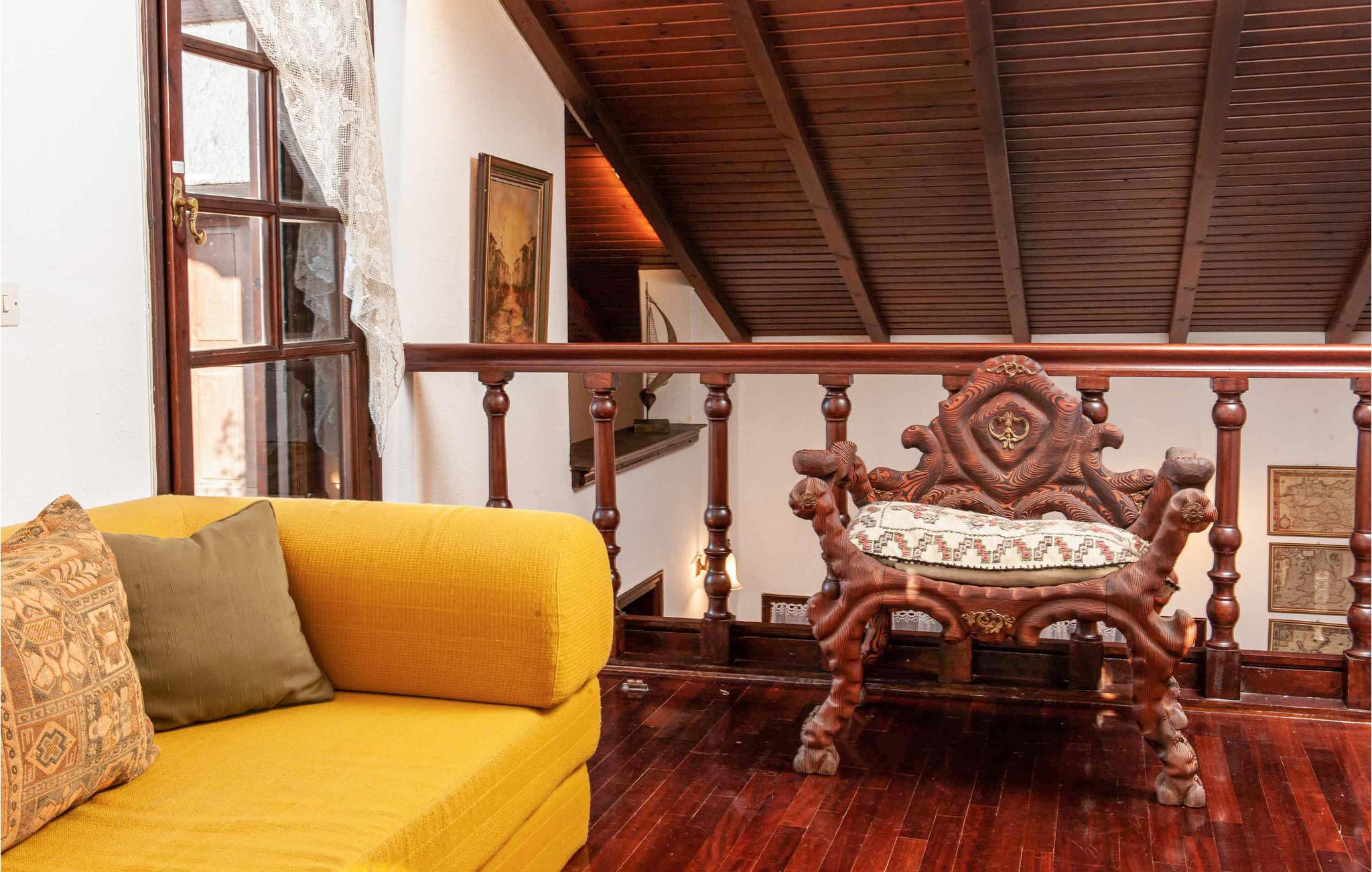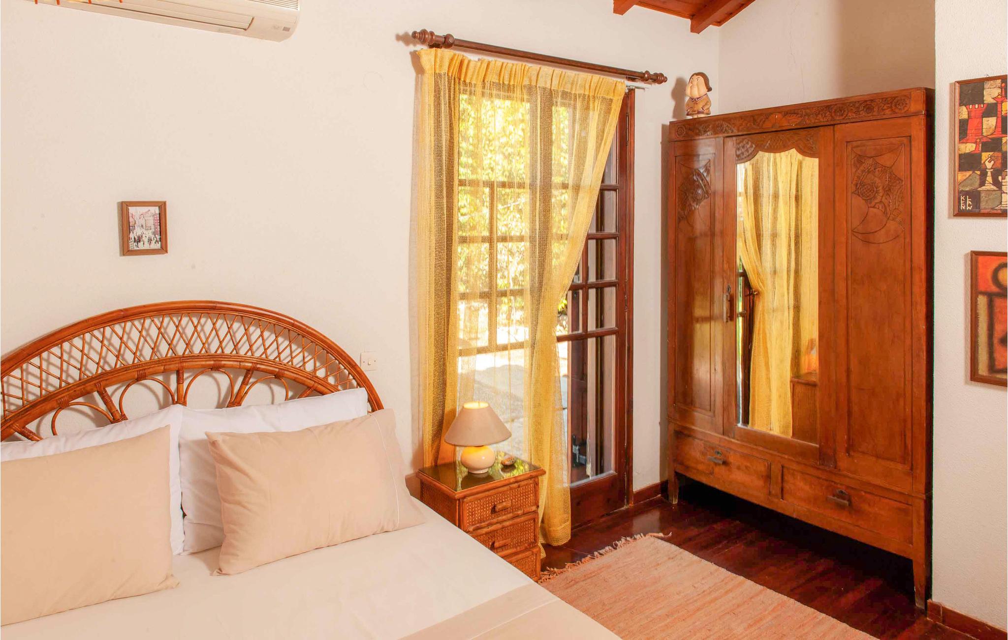 Husets indre er gennemstrømmet af sol og har en dejlig atmosfære med smukke trægulve. I stueplan er der tre store komfortable soveværelser, som er smagfuldt indrettet. Til hvert af dem hører en privat veranda. Den fjerde seng er på øverste etage. Herfra er der udgang til en privat terrasse med udsigt over poolen og her kan I nyde solnedgangen. Ved poolen er der et ekstra badeværelse.