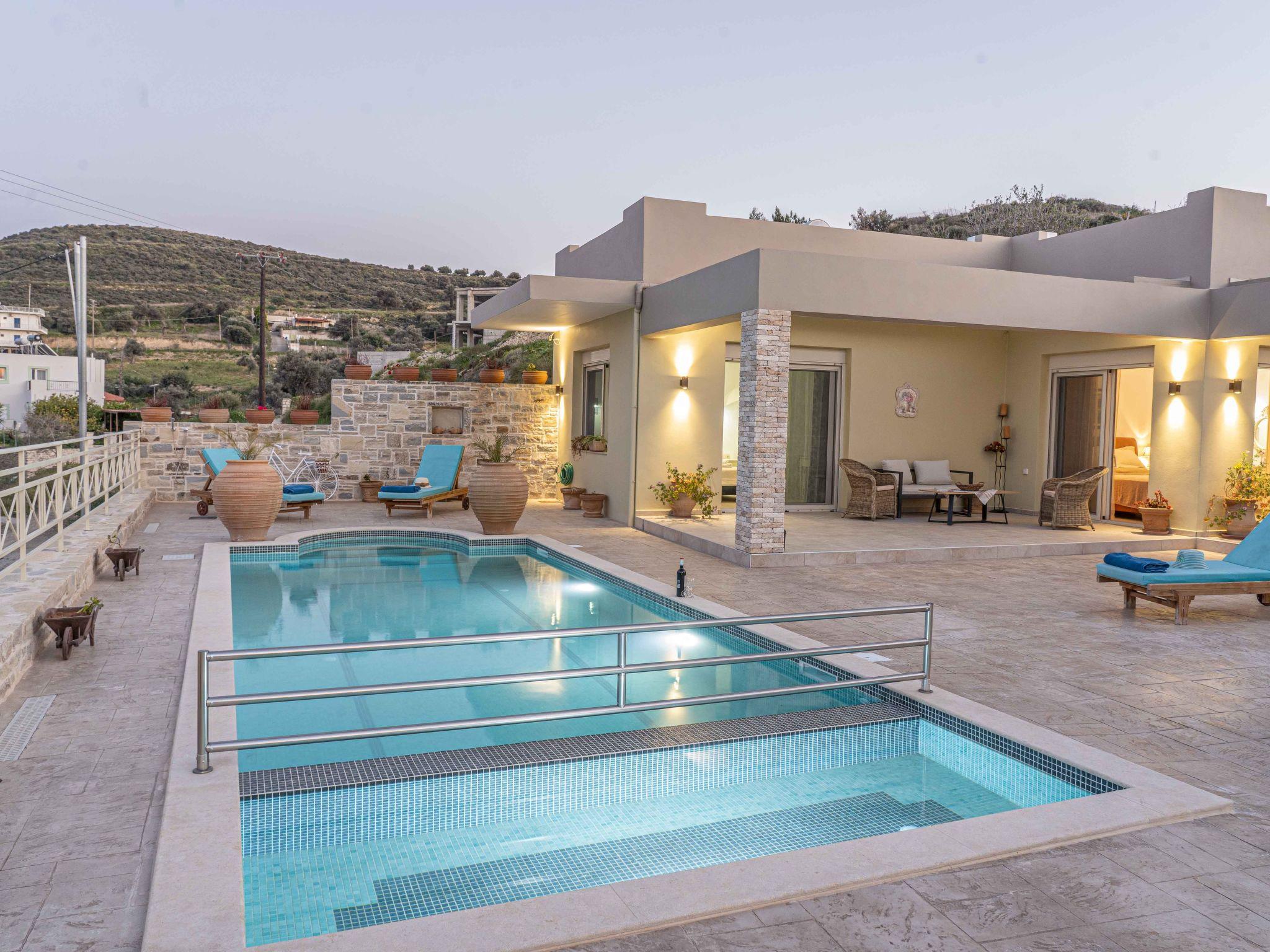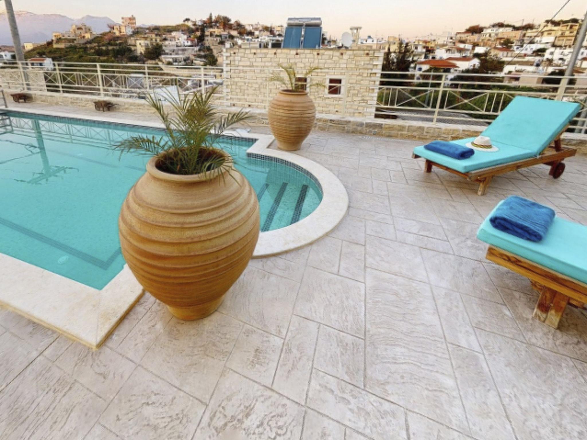 The outdoor area of Villa Urania is a testament to the beauty of Cretan living. The expansive terrace, complete with a private swimming pool of 32.88 sqm, invites guests to enjoy leisurely days under the sun, while the roof terrace offers a secluded spot for relaxation or outdoor dining. The garden, reserved exclusively for guests, adds a touch of greenery and tranquility to the surroundings, and the dedicated barbecue area is perfect for enjoying meals al fresco against the backdrop of the peaceful village.