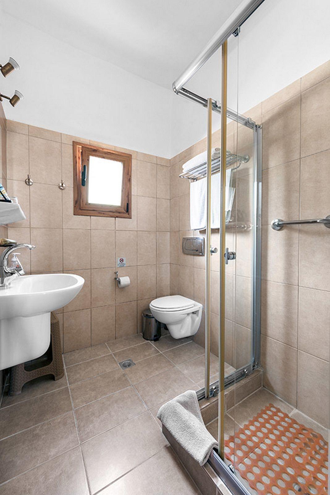 Location: Completely quiet on a large plot of land with olive and pine trees on a hillside on the edge of the pretty village of Mavrovouni. The complex is located above the long sandy beach, which can be reached via a small side road. There are 3 tavernas and a beach bar along the beach and a surf school 1.5 km away.