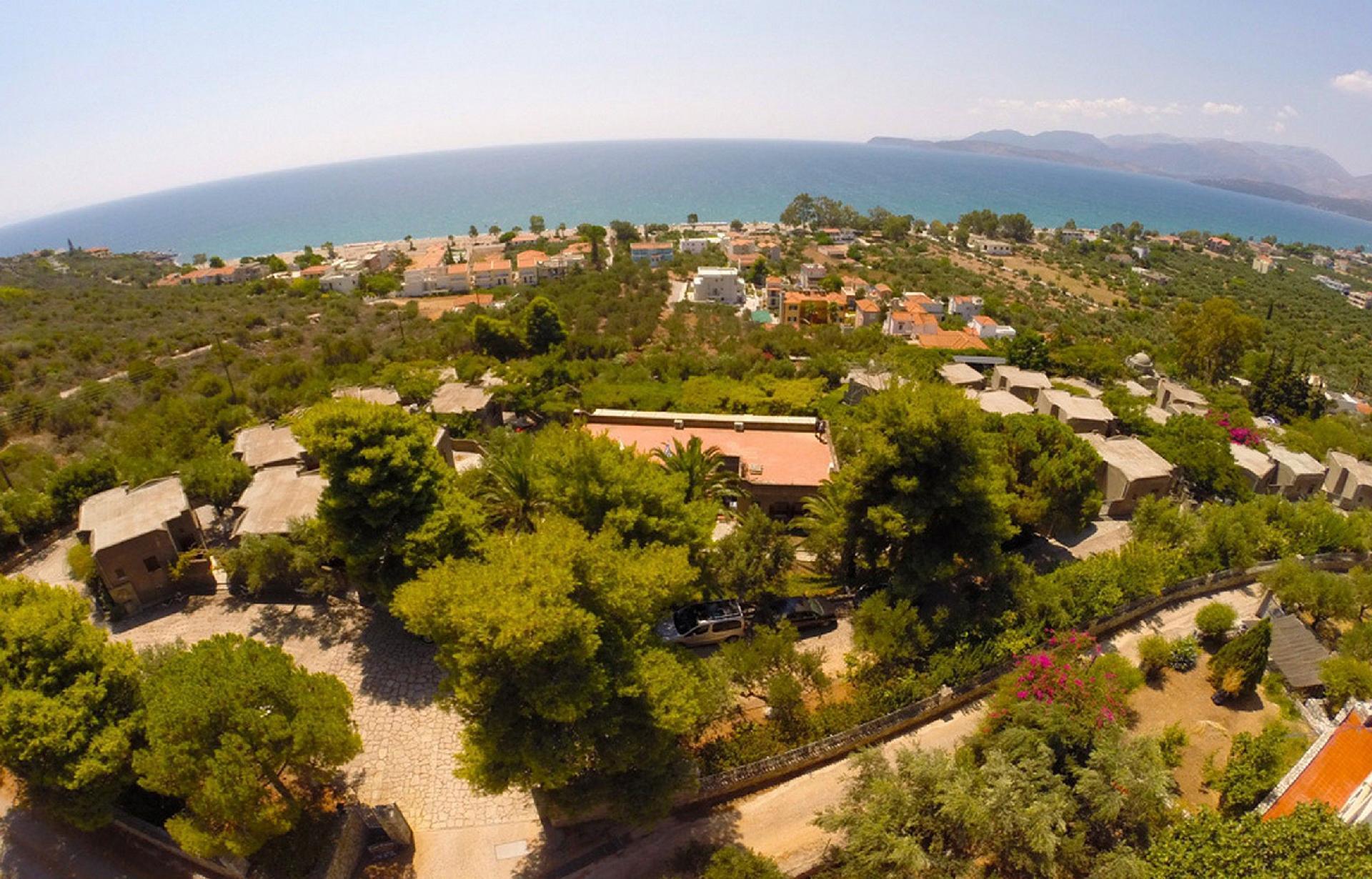 Location: Completely quiet on a large plot of land with olive and pine trees on a hillside on the edge of the pretty village of Mavrovouni. The complex is located above the long sandy beach, which can be reached via a small side road. There are 3 tavernas and a beach bar along the beach and a surf school 1.5 km away.
