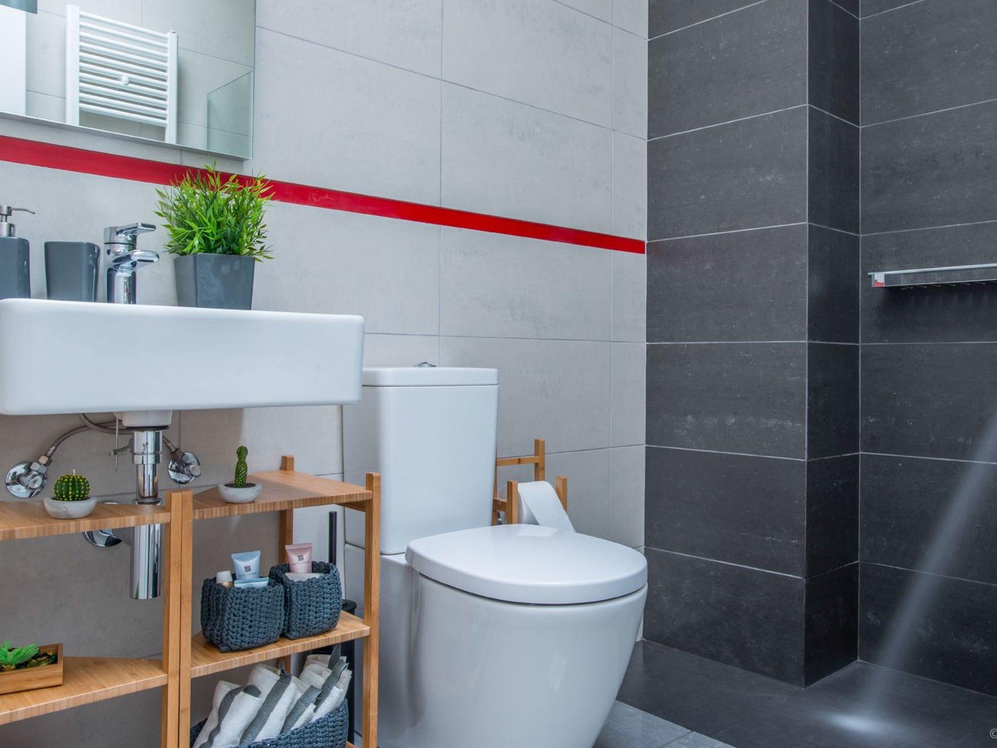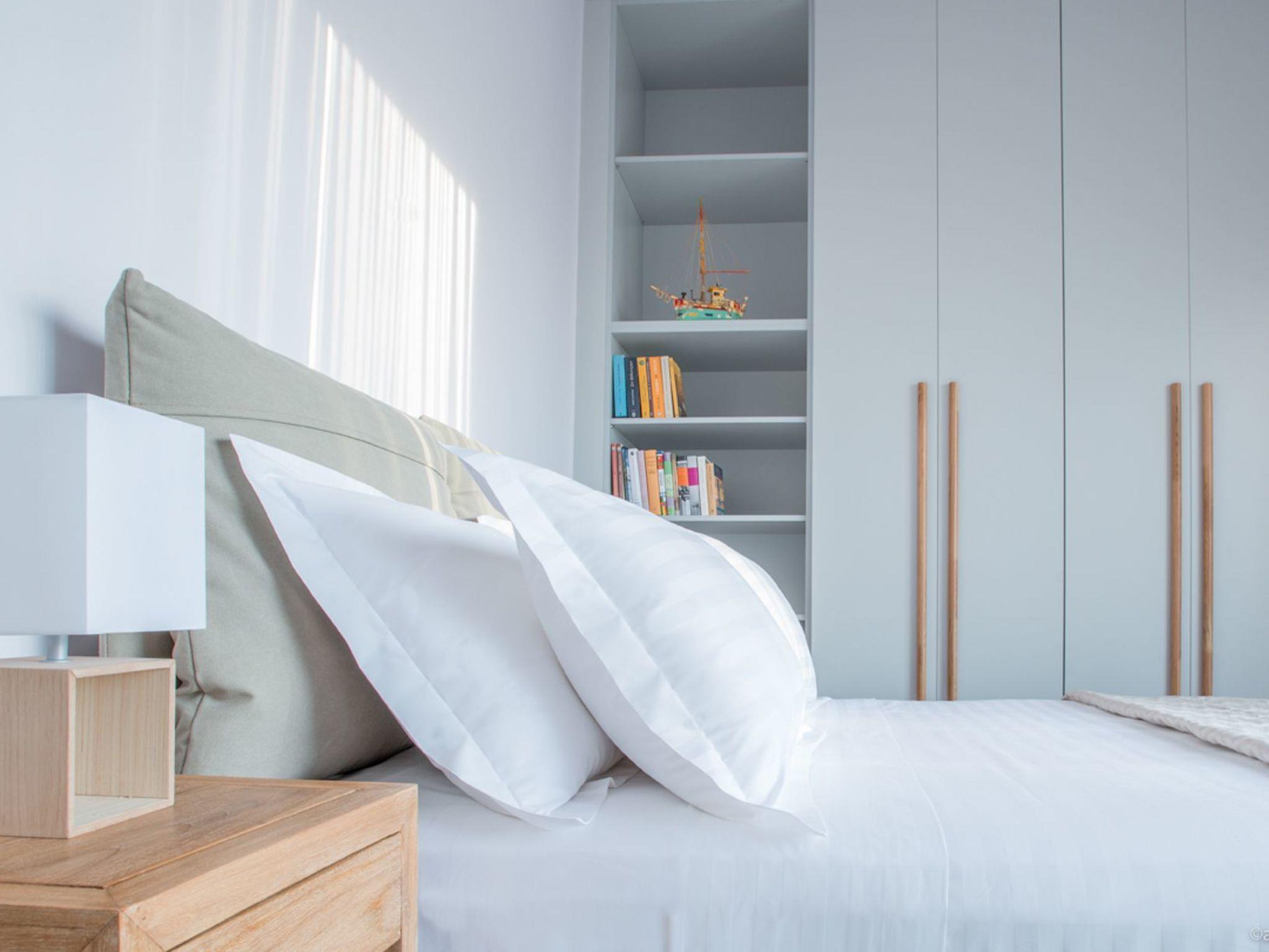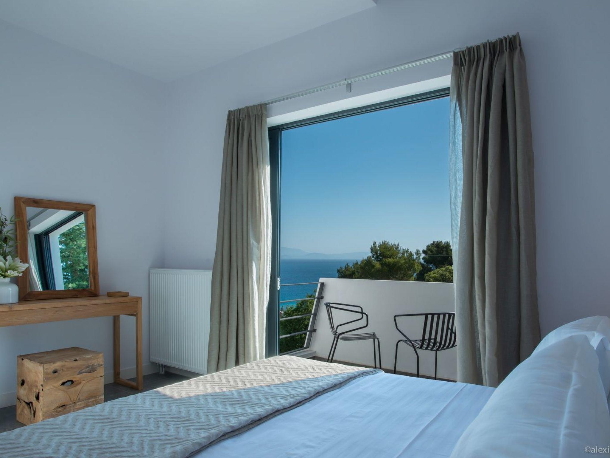 Upper level: Master bedroom with Super King size bed (1.80m) and balcony with sea view, double bedroom with King size bed and balcony with forest and sea view, bathroom.