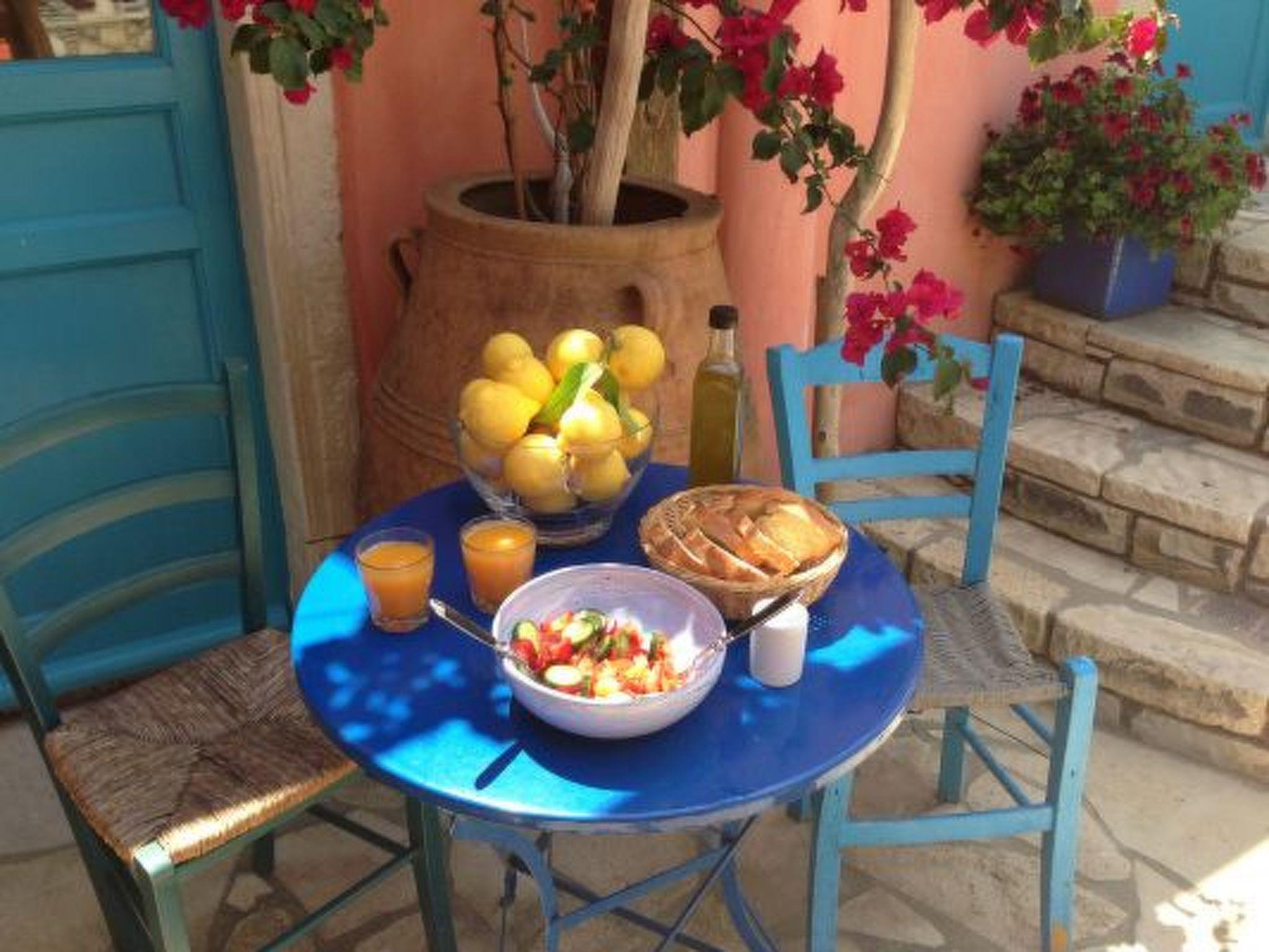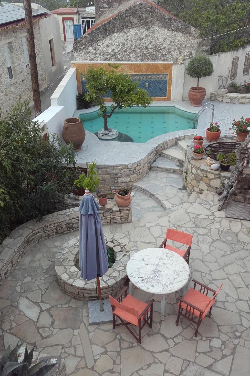The enclosed courtyard offers peace and quiet and many places to relax on different levels. The terrace on the roof offers a marvellous view of Psiloritis (the highest mountain in Crete) and the surrounding mountain massifs. In the distance you can see the white mountains and, on clear days, the sea. Olive groves as far as the eye can see. From June 2017, the small pool will be put back into operation for the summer months. This will be complemented by an outdoor shower. You can park a car in a private car park free of charge.