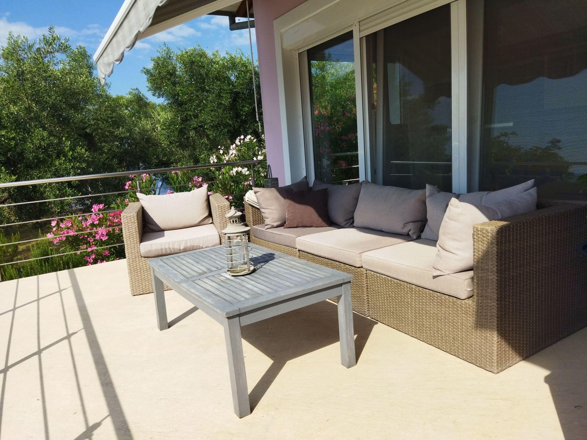 Discover your own private paradise in this charming villa in Paralia Mirtofitou, ideal for couples seeking peace and seclusion in a picturesque setting. Nestled among olive groves, this detached holiday home with its exclusive terrace and breathtaking sea views provides the perfect backdrop for an unforgettable getaway. Thanks to the generous window fronts, the feeling of living indoors is complemented by the natural beauty of the surroundings - a place that puts tranquillity and nature centre stage.