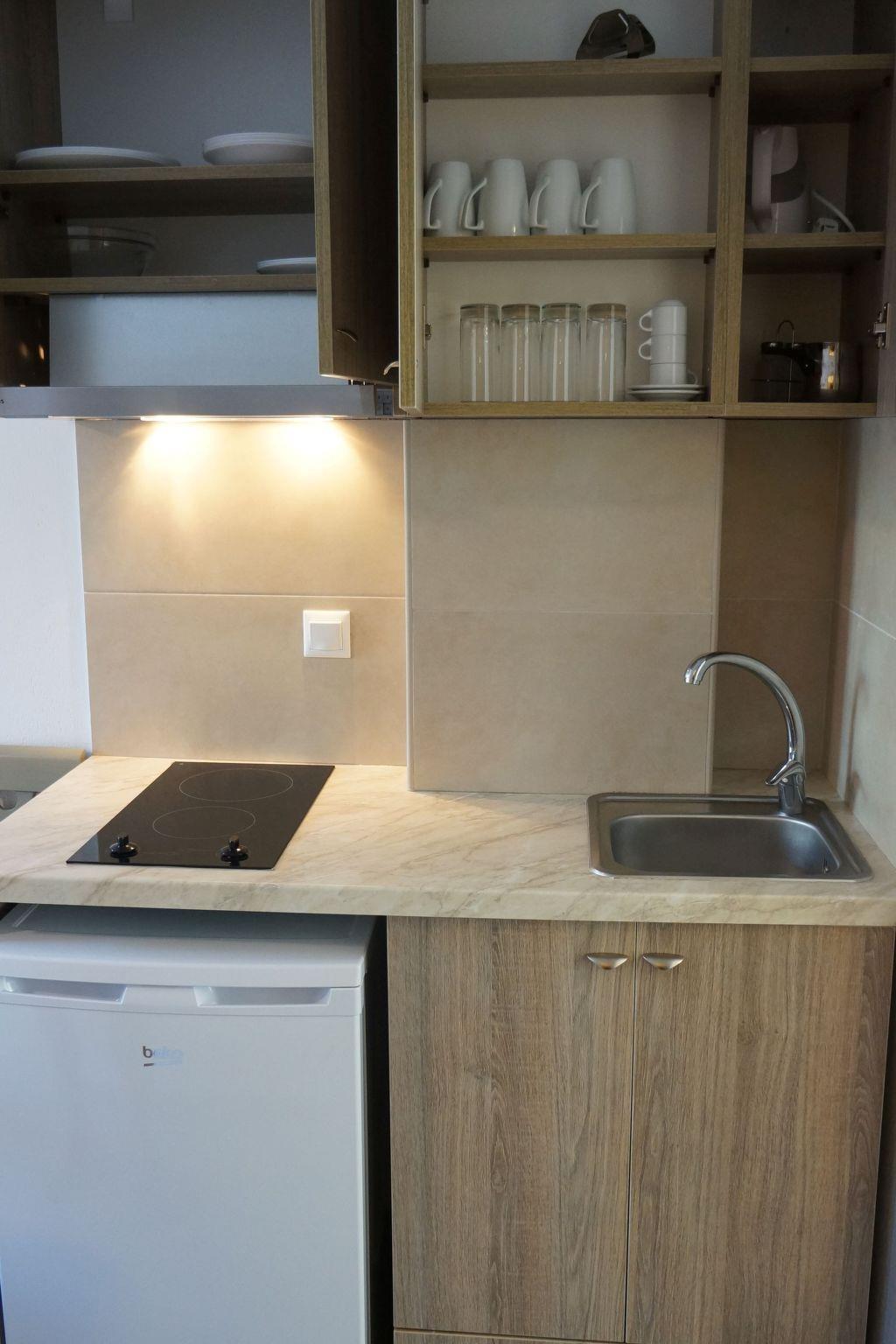 The lofts on the 1st floor consist of a bedroom with double bed and 2 chests of drawers, large balcony with table and 4 chairs and clothes horse, fully equipped kitchenette, wardrobe, desk and satellite TV. The gallery contains 2 single beds with chest of drawers. The bathroom is equipped with toilet, large washbasin, shower cubicle, hairdryer, towel rack and toiletries. All lofts have a low-noise inverter air conditioning system, satellite TV with channels in your language and high-speed WiFi. The entrance doors are fitted with security locks.