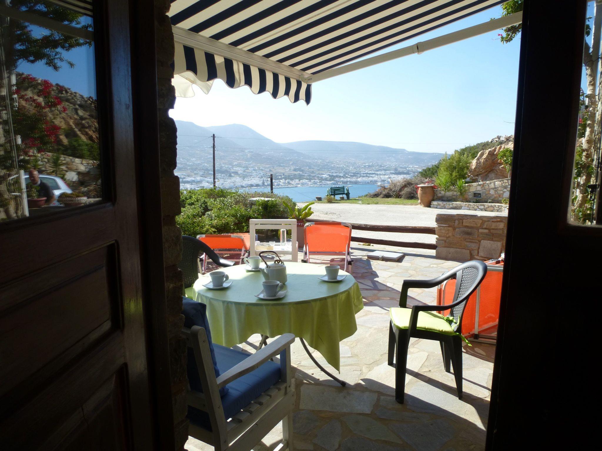 The house is nestled in a hill, below the former Apollon temple on the hill with unobstructed views of the sea and the bay of Parikia and Nausa.