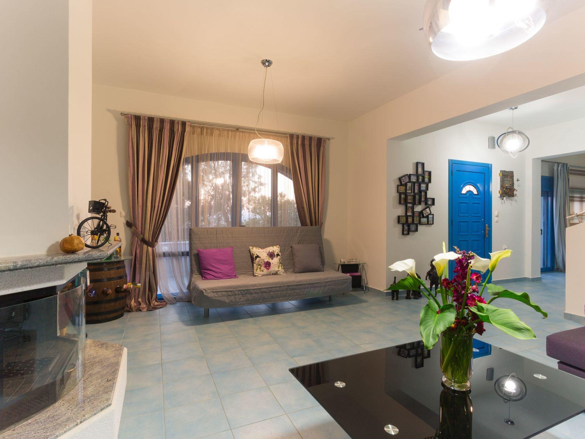 The livingroom is bright and spacious with large windows overlooking the south-eastern coast of the island. There is also a fireplace for those cool nights. The bathrooms have a 24 hour supply of hot water. For your convenience there are also slippers and towels available for all guests.