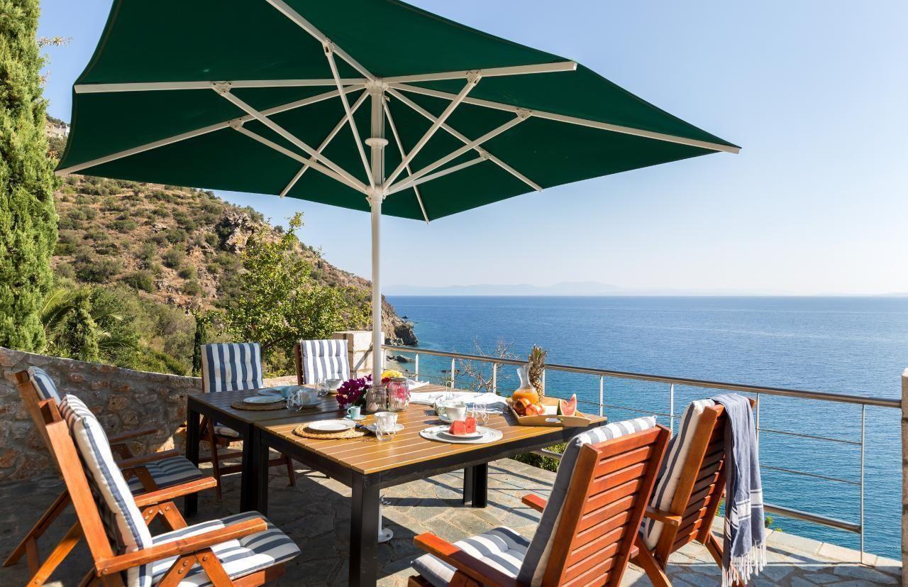 An enchanting property in perfect harmony with the environment and the natural beauty of the environment. God Bacchus villa, ground floor and first floor, 170 m2, consisting of living room and 4 bedrooms including a bathroom on the ground floor and first floor. Only a few steps down through a thicket of plane trees you reach the lonely beach of Kissakas. The villas are located on the coast of Arcadia, in the south-east of Peloponnese, between Tyros (5 km) and Leonidio (12 km). The facility is about 2.5 hours from the "El. Venizelos International Airport of Athens (210 km) and about 2 hours from Kalamata International Airport (149 km). Our philosophy is to provide a higher standard of living. Therefore, your stay here will offer you a peaceful and relaxing experience that will charm you. A quiet and dreamy environment in harmony with the infinite blue of the sky and the sea and the lapping of the sea with views of the islands of Spetses and Spetsopoula. The picture is complemented by the pristine landscape with a magical sunrise and a romantic full moon. The villas offer all the comforts expected of a private holiday home. They create the ideal conditions to escape everyday life and to rejuvenate