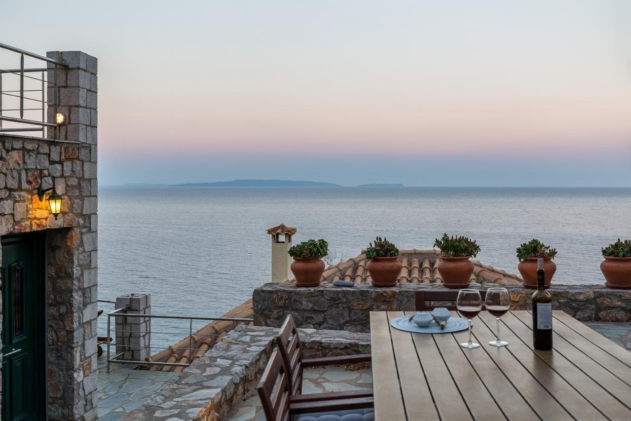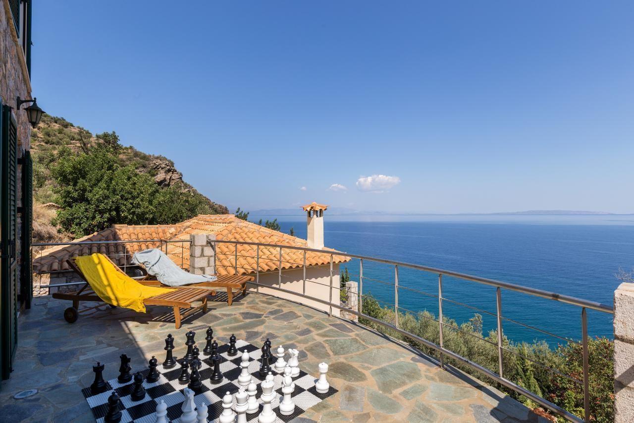 An enchanting property in perfect harmony with the environment and the natural beauty of the environment. Leonardo da Vinci villa, ground floor and first floor, 110 m2, consisting of living room and a WC on the ground floor and 2 bedrooms and a big bathroom on the first floor. Only a few steps down through a thicket of plane trees you reach the lonely beach of Kissakas. The villas are located on the coast of Arcadia, in the south-east of Peloponnese, between Tyros (5 km) and Leonidio (12 km). The facility is about 2.5 hours from the "El. Venizelos International Airport of Athens (210 km) and about 2 hours from Kalamata International Airport (149 km). Our philosophy is to provide a higher standard of living. Therefore, your stay here will offer you a peaceful and relaxing experience that will charm you. A quiet and dreamy environment in harmony with the infinite blue of the sky and the sea and the lapping of the sea with views of the islands of Spetses and Spetsopoula. The picture is complemented by the pristine landscape with a magical sunrise and a romantic full moon. The villas offer all the comforts expected of a private holiday home. They create the ideal conditions to escape everyday life and to rejuvenateThis villa is GF+1 floor, 110 sqm, consisting of 2 bedrooms + spacious living, with super view to the Aegean sea.