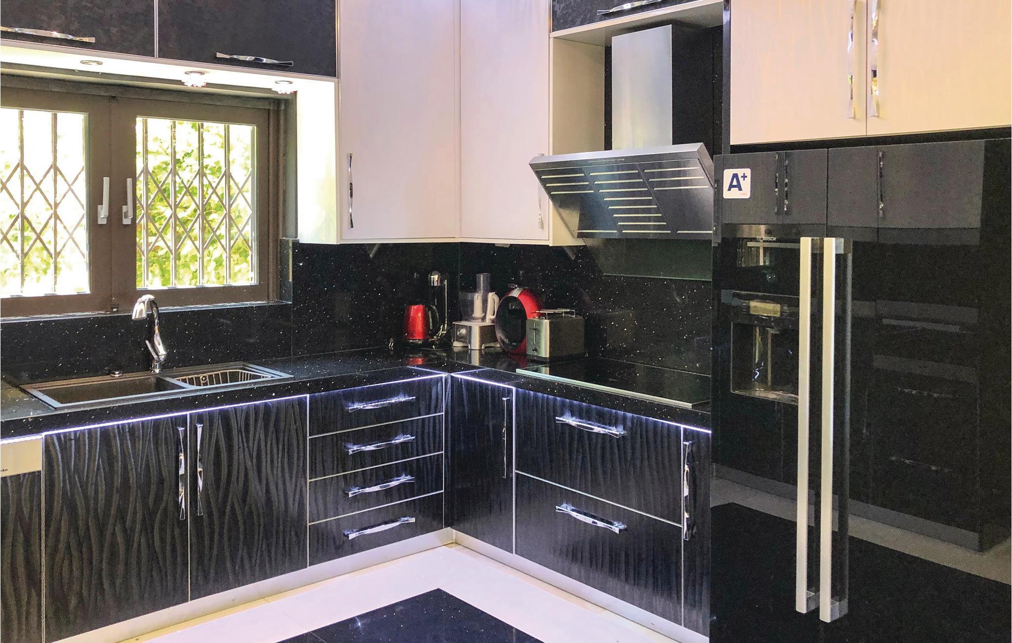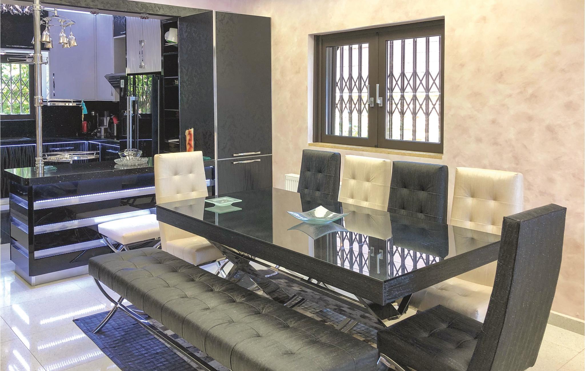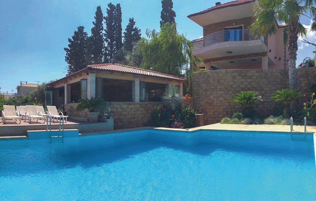 Feriehuset er velindrettet med en blanding af moderne og klassiske møbler, og byder på alle bekvemmeligheder til en uforglemmelig ferie i Grækenland. I huset findes fire soveværelser, alle med eget badeværelse. Hertil kommer to fuldt udstyrede køkkener og to opholdsstuer. Udendørs findes et vidunderligt, overdækket atrium med bar, hvor I kan spise sammen og nyde udsigten over havet. Atriet ligger ved siden af swimmingpoolen, der har hydromassage.