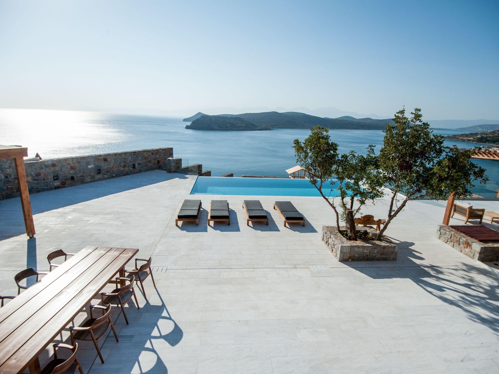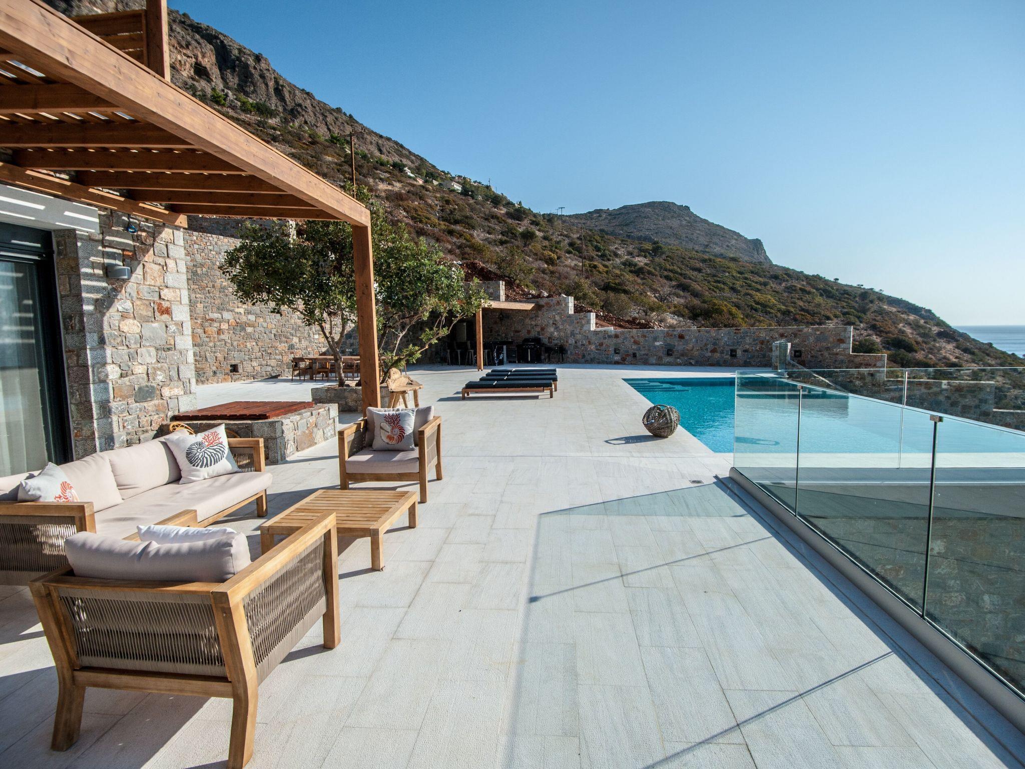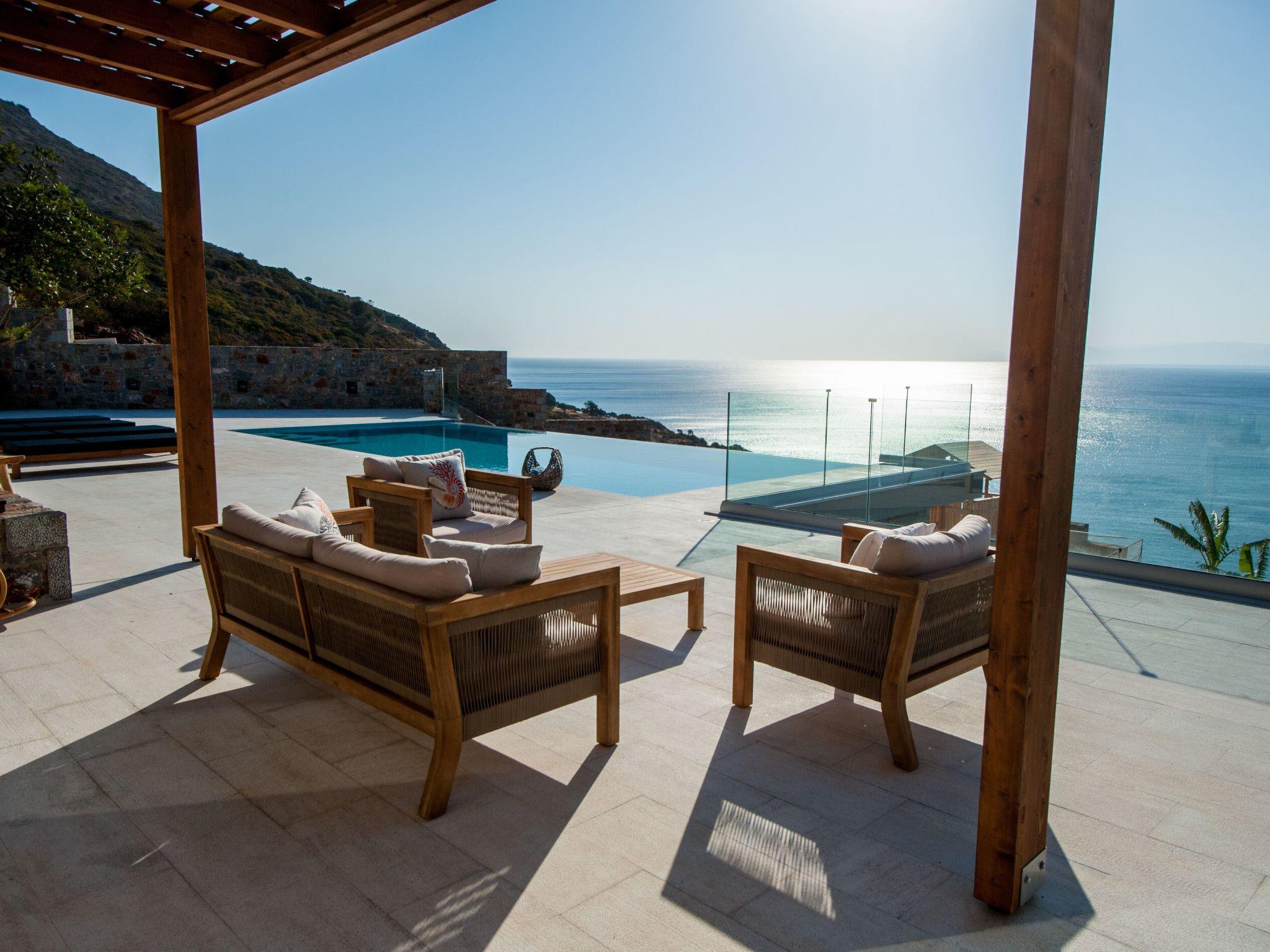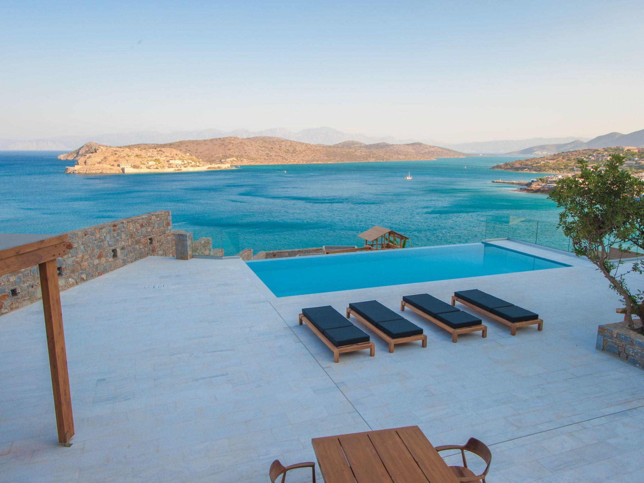 Villa Superior is one of the area’s newest and grandest residences. This villa is every bit as stunning as the seascape it overlooks. Its three stone stories are luxury designed as your holidays should be.Superior graduates up the hill with a lower garden level at its base, a stunning infinity pool, and a terrace at ground level. Six luxury bedroom suites beyond expectations will keep your soul, body, and mind totally relaxed.Italian hardwood floors run the length of the large open-plan kitchen and living area. Deluxe handpicked furnishings, modern art, and a top-of-the-range kitchen, in what we can only describe as Aegean blue.The meticulous design of the villa ensures it’s a view you can enjoy from almost anywhere. The terrace seating areas, dining suite, even the outdoor kitchen with its gas barbecue and bar area are open-sided to offer no interruption to your own personal vista. On the lower ground level likewise, a neat and private internal garden leading into a children’s play area runs out towards the sea.Four bedroom suites open out onto this garden area. If you’re looking for some downtime, you’ll find a sanctuary in these oases of calm, with their brilliant white finish, cool Italian marble ensuites, and Jacuzzi baths. Two more bedrooms top the house, swapping garden views for a personal balcony. What better place to pop a cork and drink a toast to the holiday highlife?There can be no question that villa Superior has everything you could wish for during a relaxed and enjoyable stay. Its location opens up a wider world of opportunities for exploration. It’s just a short walk to the sweet little village of Plaka. Its quintessential Greek vibe and warm hospitality are a temptation too much, and you’ll find yourself strolling back and forth as the mood takes you. In easy reach by car, the wider Elounda region is the holiday destination of choice for society’s ‘elite’, with its lovely beaches and tavernas. The area’s rich history comes back to life from the ruins of the ancient city of Olous, but the top of your bucket list should be a boat trip out to the island of Spinalonga. Don’t forget to look back towards the shore to catch a glimpse of Villa Superior graduating up the hill from the sea. Access to a sustainable environmentally friendly rocky beach.