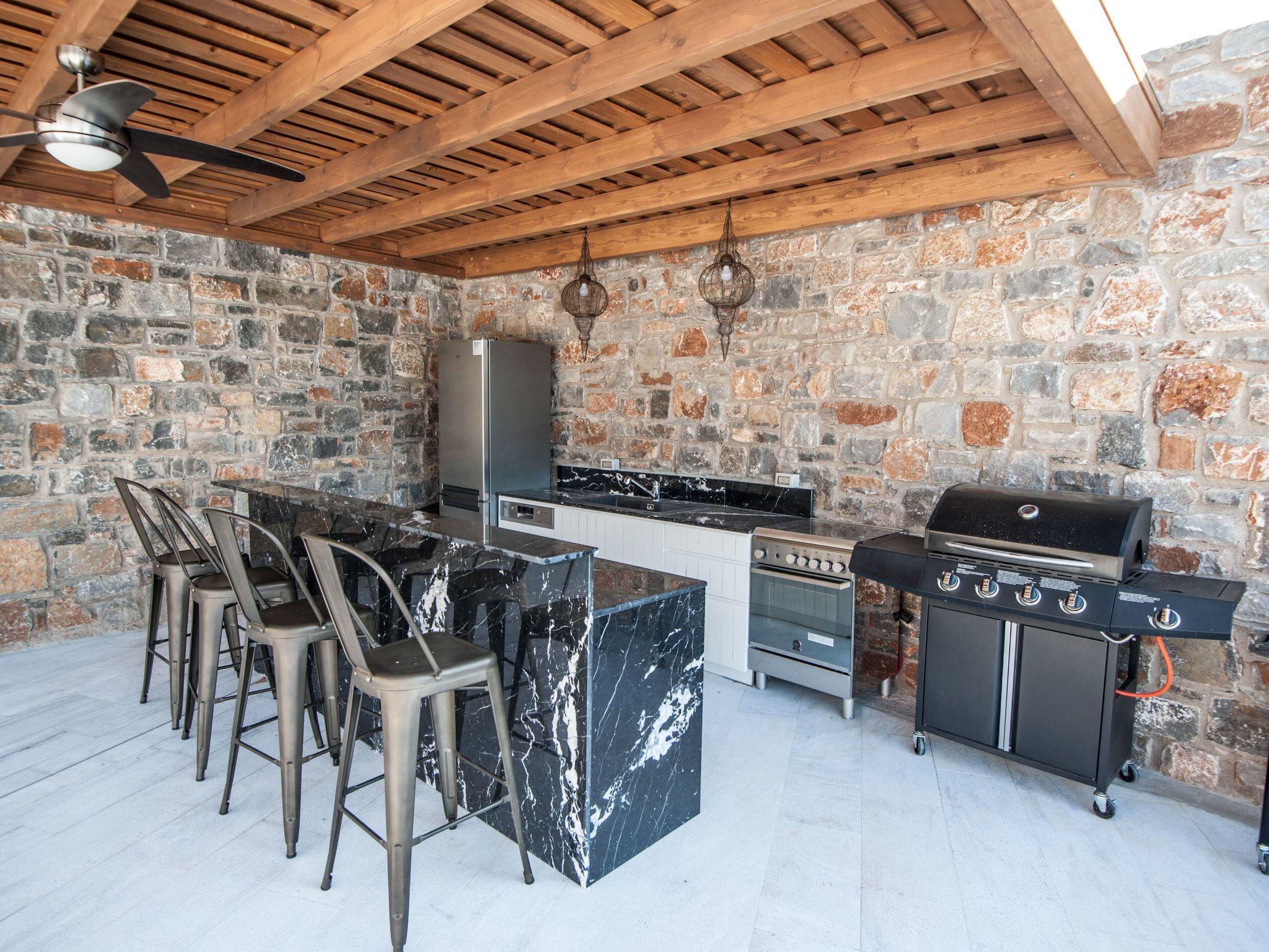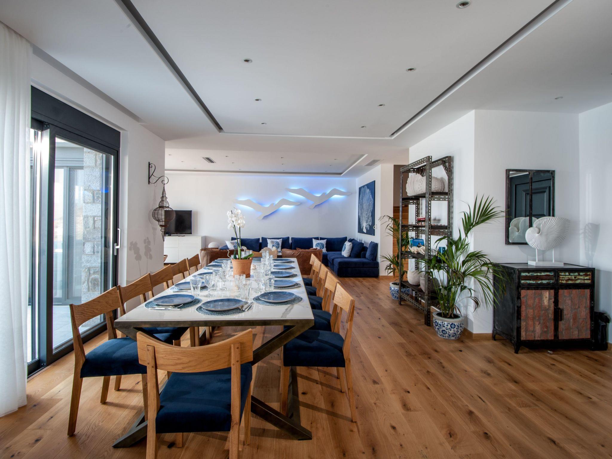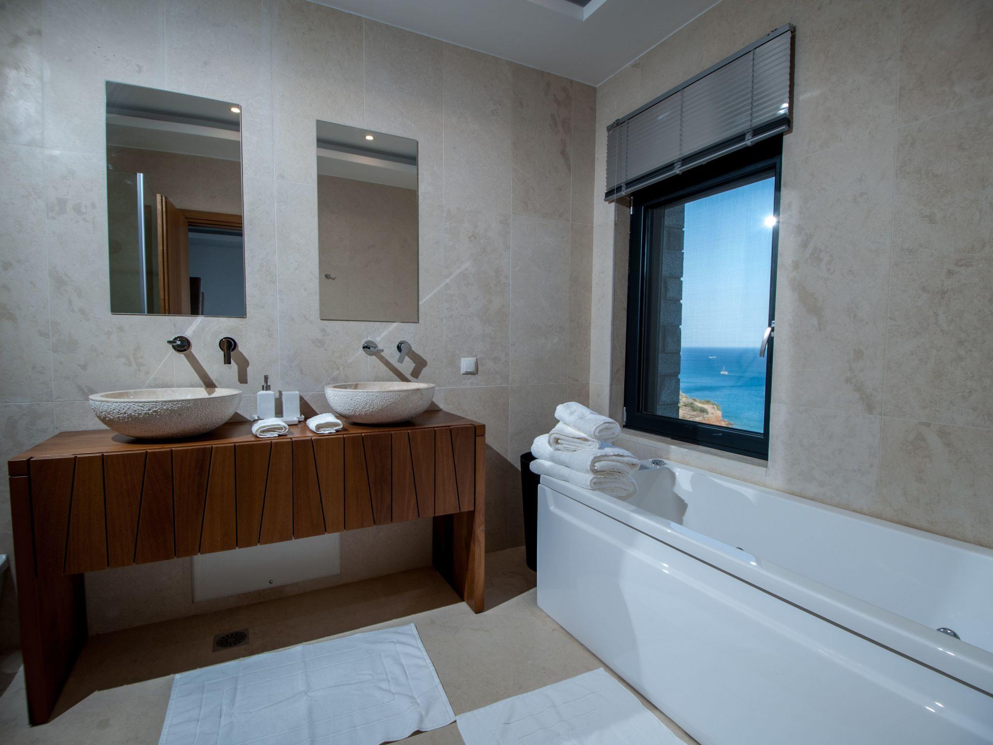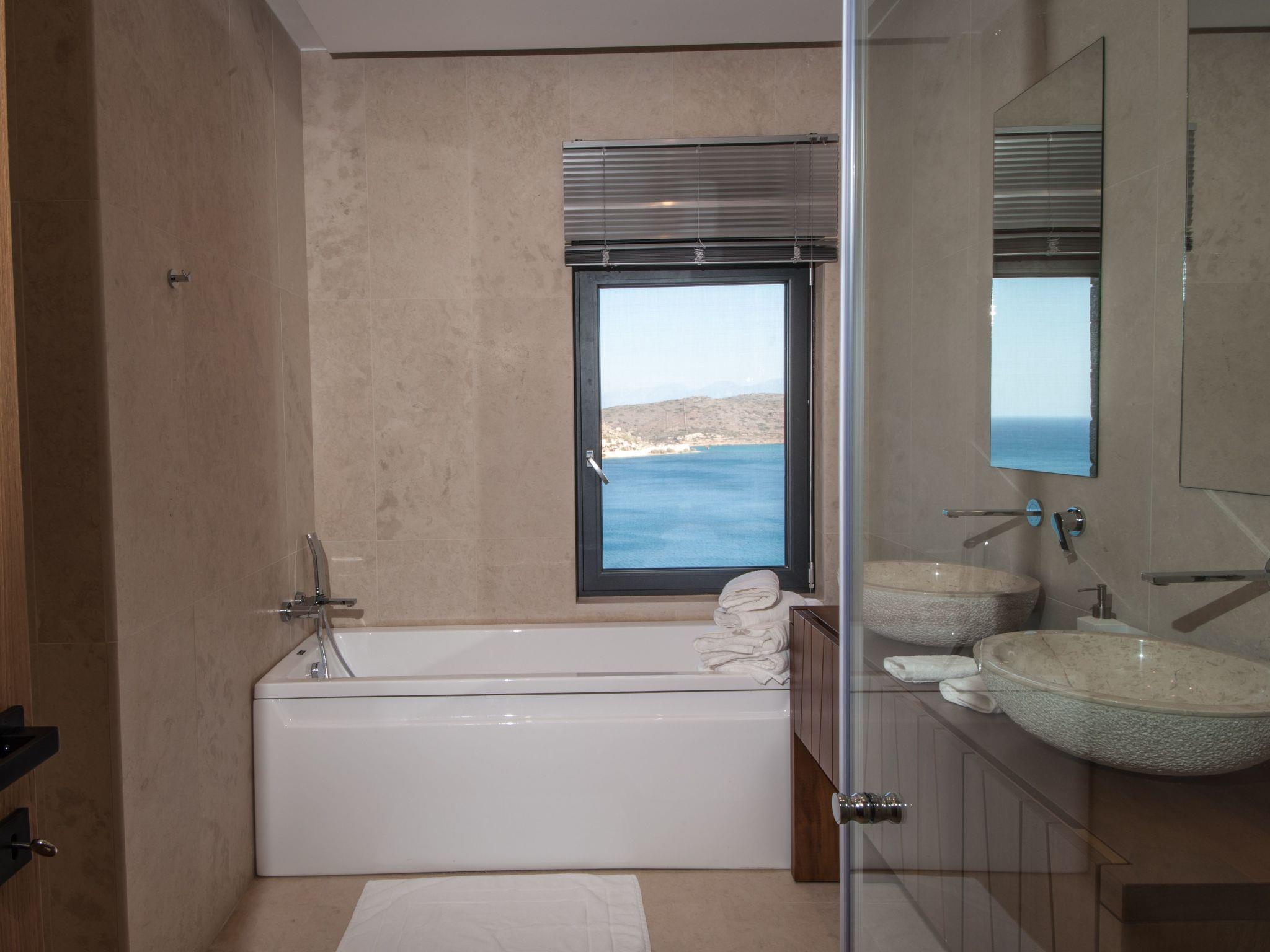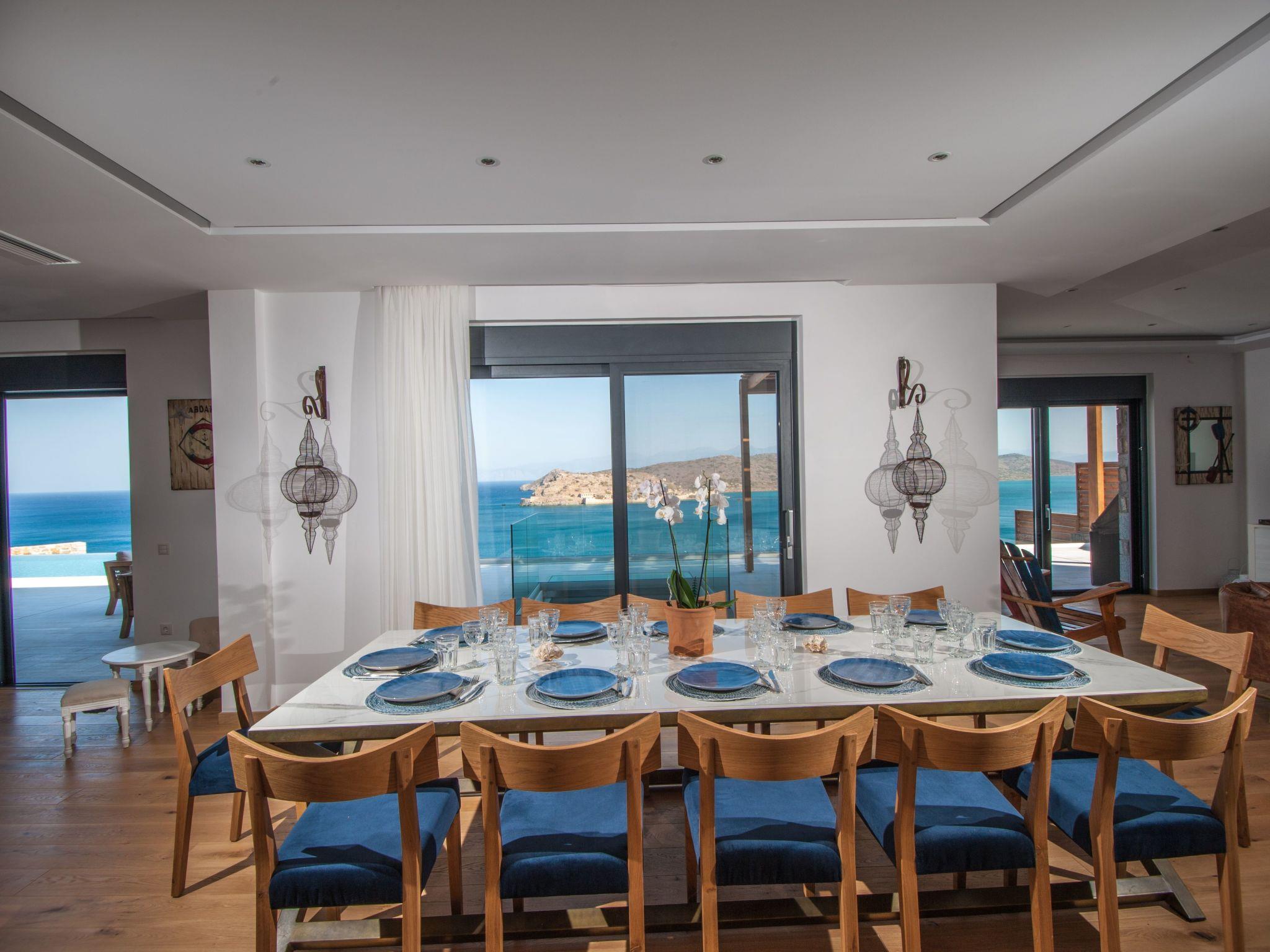 Villa Superior is one of the area’s newest and grandest residences. This villa is every bit as stunning as the seascape it overlooks. Its three stone stories are luxury designed as your holidays should be.Superior graduates up the hill with a lower garden level at its base, a stunning infinity pool, and a terrace at ground level. Six luxury bedroom suites beyond expectations will keep your soul, body, and mind totally relaxed.Italian hardwood floors run the length of the large open-plan kitchen and living area. Deluxe handpicked furnishings, modern art, and a top-of-the-range kitchen, in what we can only describe as Aegean blue.The meticulous design of the villa ensures it’s a view you can enjoy from almost anywhere. The terrace seating areas, dining suite, even the outdoor kitchen with its gas barbecue and bar area are open-sided to offer no interruption to your own personal vista. On the lower ground level likewise, a neat and private internal garden leading into a children’s play area runs out towards the sea.Four bedroom suites open out onto this garden area. If you’re looking for some downtime, you’ll find a sanctuary in these oases of calm, with their brilliant white finish, cool Italian marble ensuites, and Jacuzzi baths. Two more bedrooms top the house, swapping garden views for a personal balcony. What better place to pop a cork and drink a toast to the holiday highlife?There can be no question that villa Superior has everything you could wish for during a relaxed and enjoyable stay. Its location opens up a wider world of opportunities for exploration. It’s just a short walk to the sweet little village of Plaka. Its quintessential Greek vibe and warm hospitality are a temptation too much, and you’ll find yourself strolling back and forth as the mood takes you. In easy reach by car, the wider Elounda region is the holiday destination of choice for society’s ‘elite’, with its lovely beaches and tavernas. The area’s rich history comes back to life from the ruins of the ancient city of Olous, but the top of your bucket list should be a boat trip out to the island of Spinalonga. Don’t forget to look back towards the shore to catch a glimpse of Villa Superior graduating up the hill from the sea. Access to a sustainable environmentally friendly rocky beach.