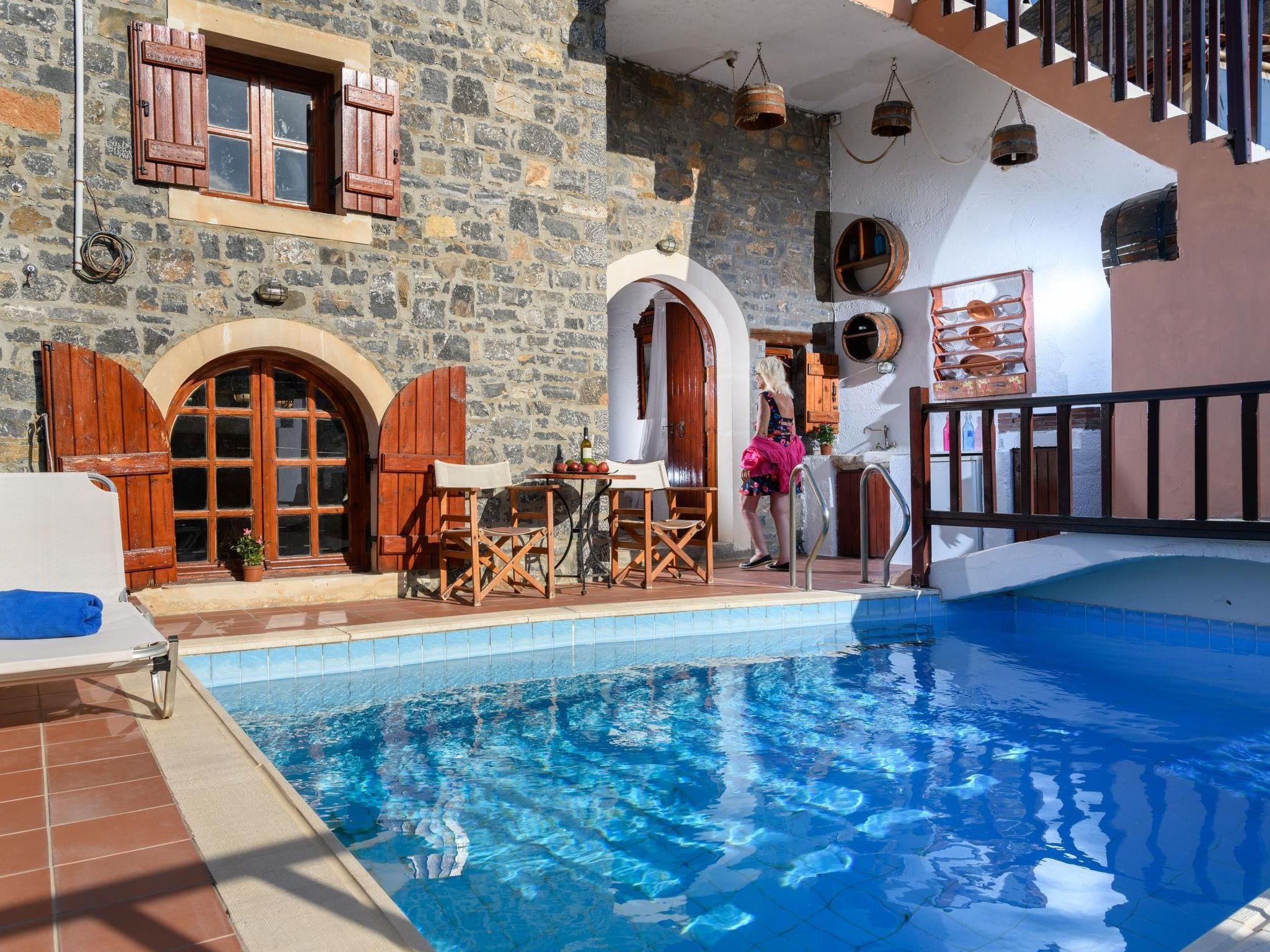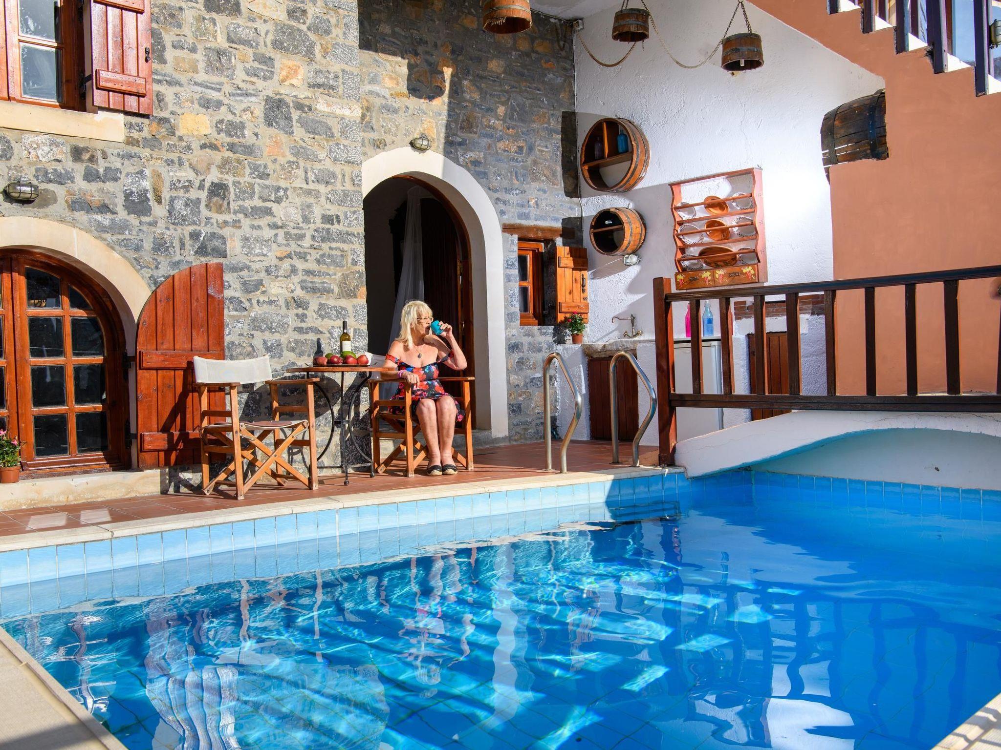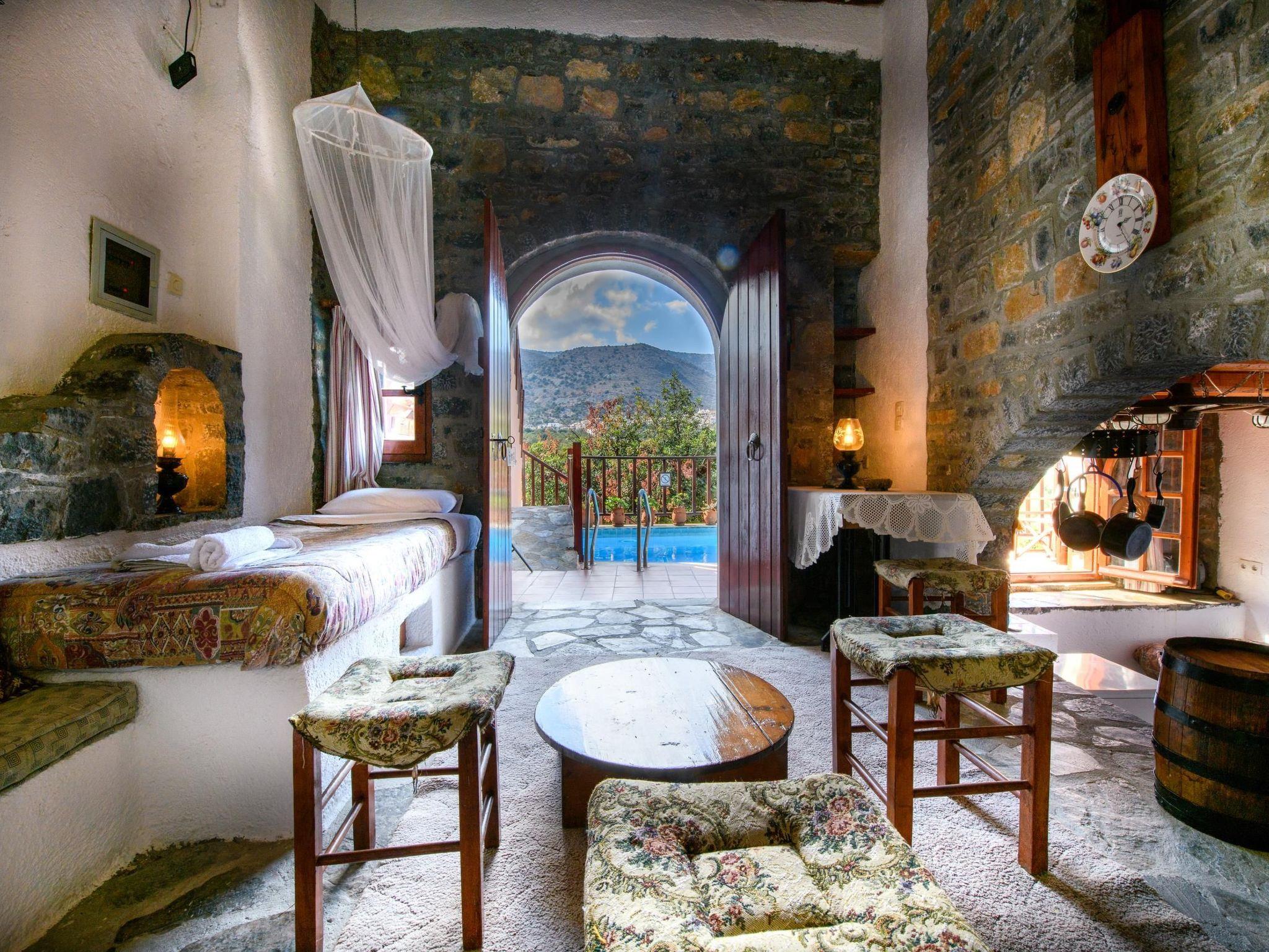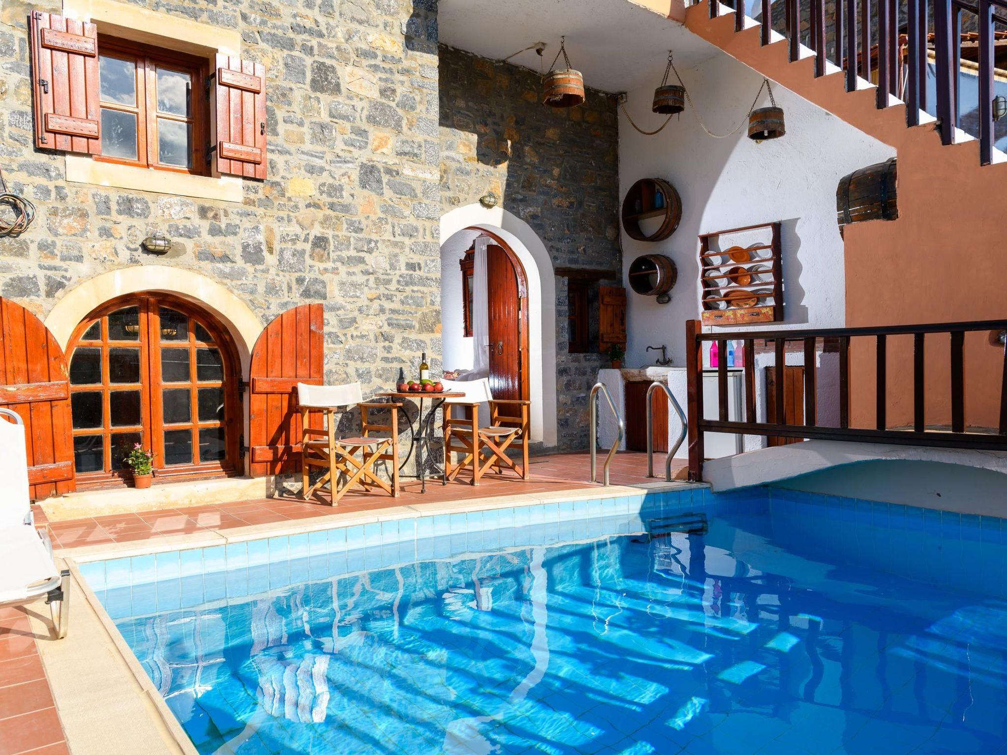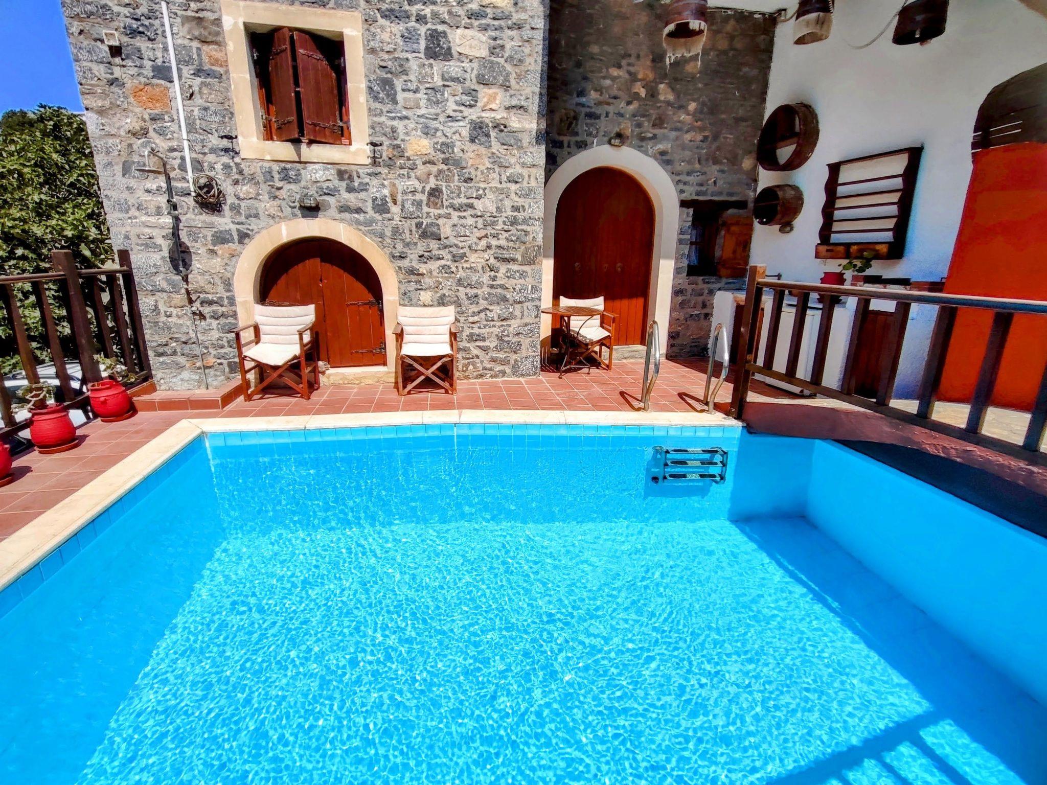 Relax in a beautifully restored traditional stone home with a private swimming pool, handcrafted details, and a peaceful atmosphere—just 10 meters from private parking and a short walk from Elounda's beaches.