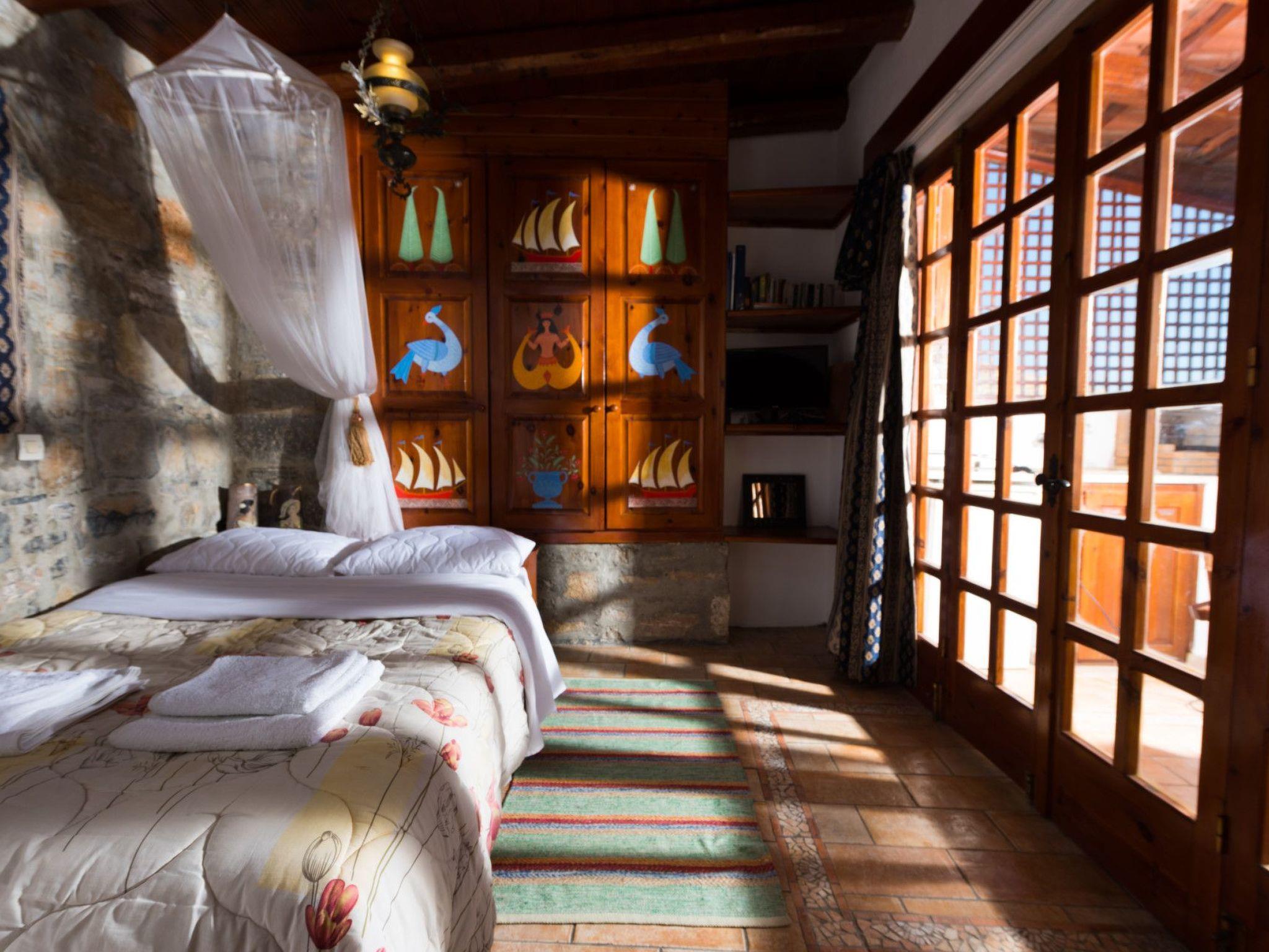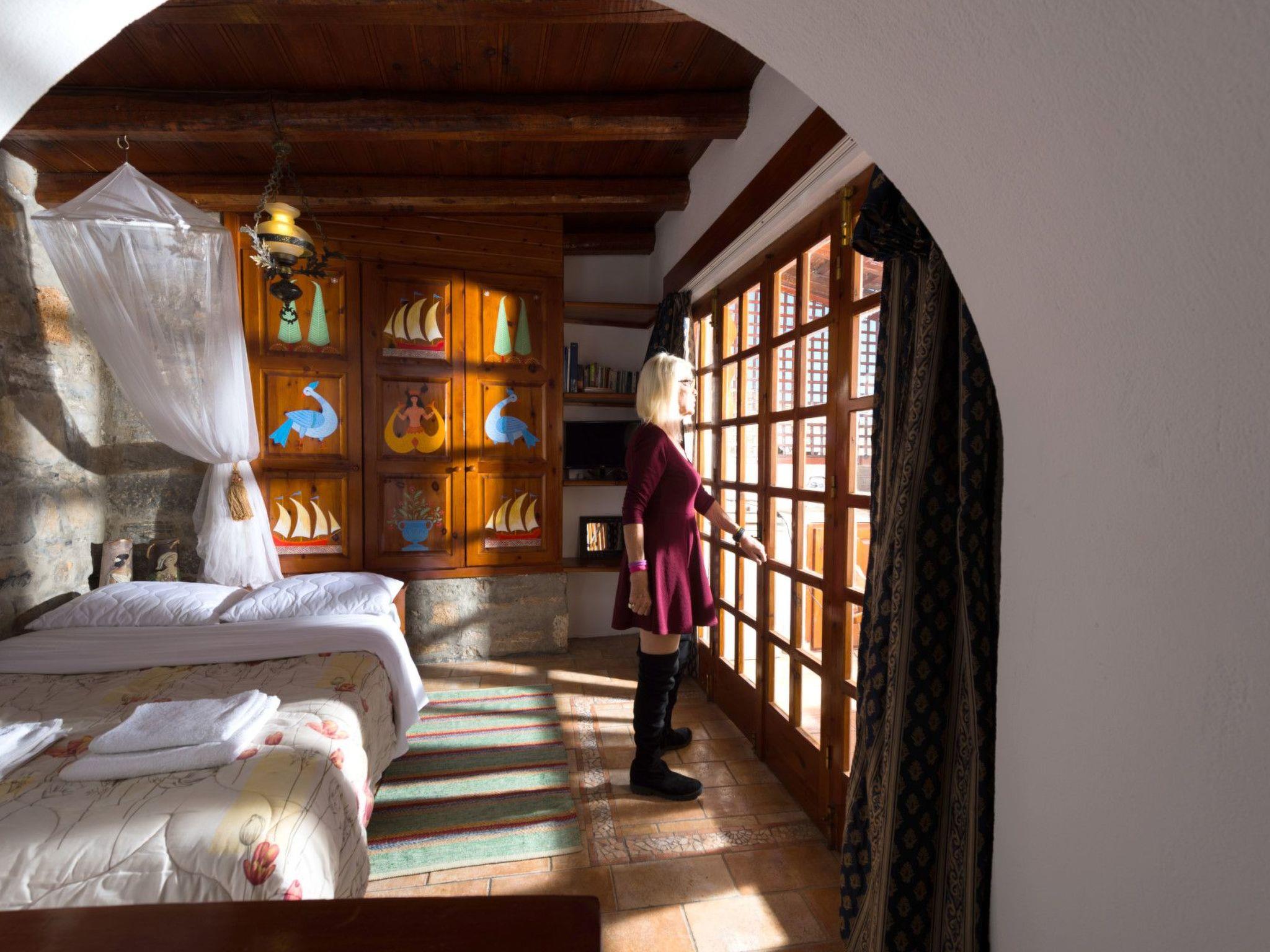 Leonidas Cretan Traditional Stone Home with Sea View Thank you for choosing us for your holiday, as the region of Elounda is considered to be the most unique and beautiful on the island. Distance from Port, Commercial Center, and Beaches 10 minutes of easy walking or 5 minutes by car. The Cretan stone house of Leonidas is situated in Mavrikiano, a village that overlooks Elounda. The Leonidas can accommodate three people in two distinct areas. A/C is provided. The entryway leads to a spacious living and dining area with a sofa to the left of the fireplace. On the right is a fully equipped kitchen, and on the left is a restroom. On the mezzanine floor, there is a chamber with a single bed and a matrimonial bed at the very end. The balcony is accessible via the entrance to the right. The master bedroom and veranda, which includes a kitchenette with a refrigerator and a barbecue, offer breathtaking views of the ocean.
