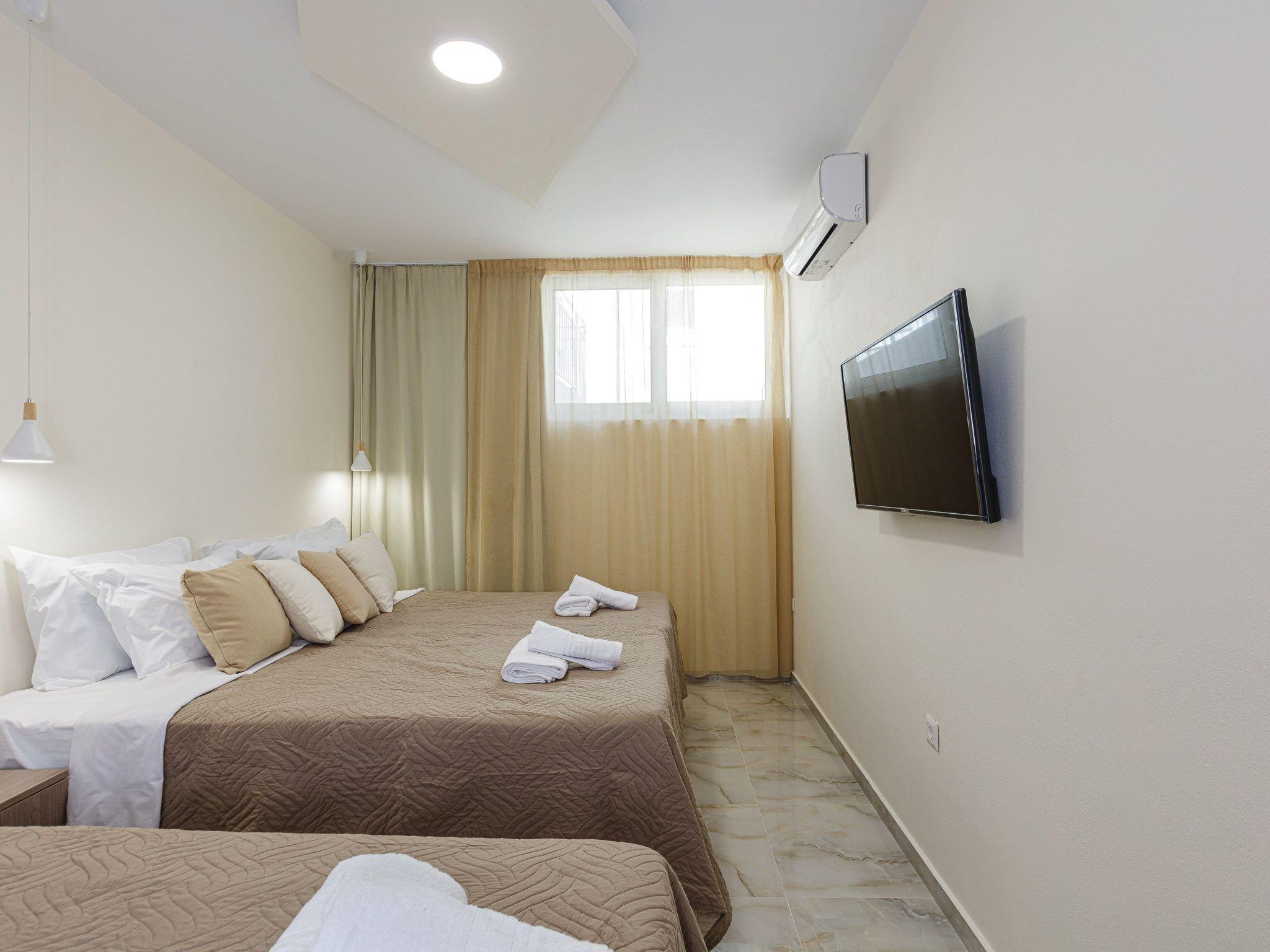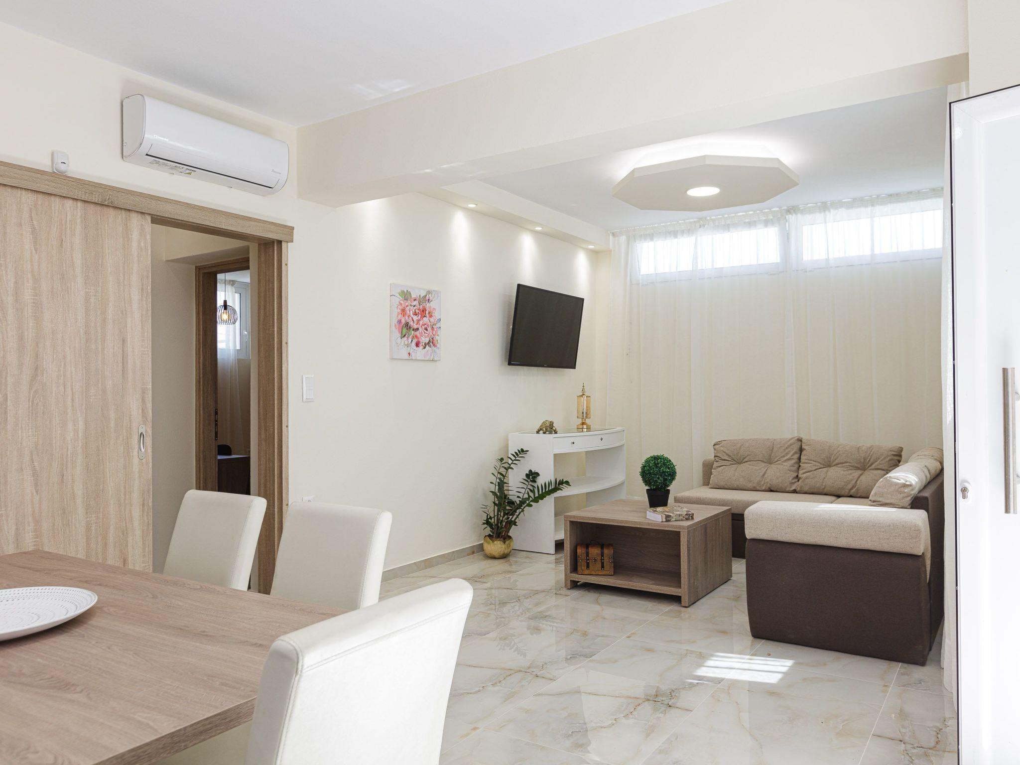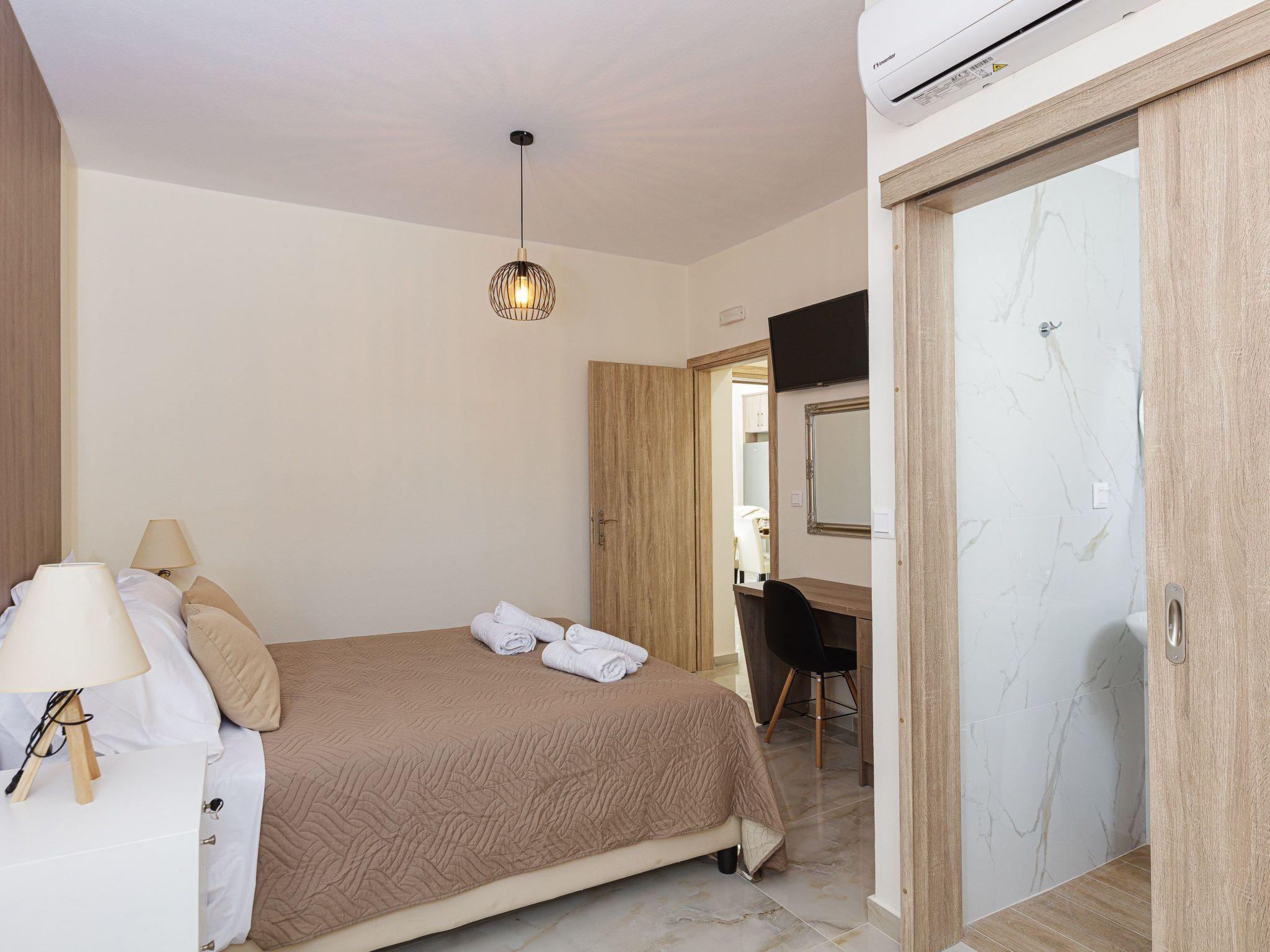 Villa Salmostro is an inviting family holiday rental located in the Bali area of Rethymno, Crete—a trendy resort Island in Greece. While this picturesque family villa is near many splendid beaches, restaurants, and local amenities, the beautiful Villa Salmostro is also a wonderful place to escape for a secluded, private vacation. The magnificent Villa Salmostro in Bali, is the perfect destination for a relaxing, carefree, and exhilarating family vacation in Greece. The quiet location of the holiday villa ensures privacy, yet there are many interesting attractions within easy reach of the vacation rental property. The family holiday villa offers a comfortable living area, stylishly furnished with ample seating for guests, a 53-inch smart TV, and a sound system with Bluetooth speakers. In the property the internet speed is 50mbb. In addition, there is air conditioning available to keep friends and family comfortable during their stay. Villa Salmostro is equipped with a trendy, modern kitchen with an oven, microwave, dishwasher, refrigerator, and freezer, as well as a coffee machine, toaster, and kettle. Additionally, there is a mixer, blender, water filter, juicer, and egg machine provided for visitors’ convenience. There is also an enticing dining area with ample seating, shielded by a large pergola. The family holiday villa is home to 2 double bedrooms and 2 twin bedrooms, with additional bedding to sleep up to 12 guests if required. All bedrooms have private balconies, air conditioning, and a safe for guests of the villa to utilize. There are 3 full ensuite bathrooms, with 2 towels per guest and a hairdryer. Additionally, there is a cleaning service once a week. Other amenities for guests include a washing machine, iron, and ironing board. The spacious outdoor area is host to a swimming pool in a restful garden setting, the ideal place for families to spend some quality time while on vacation in Crete. There is a large outdoor entertainment area with a gas grill BBQ and a dining area, as well as casual seating and a children’s play area. Additionally, there is a football table for guests’ enjoyment. There is a parking space for 2 cars at the Salmostro holiday villa.