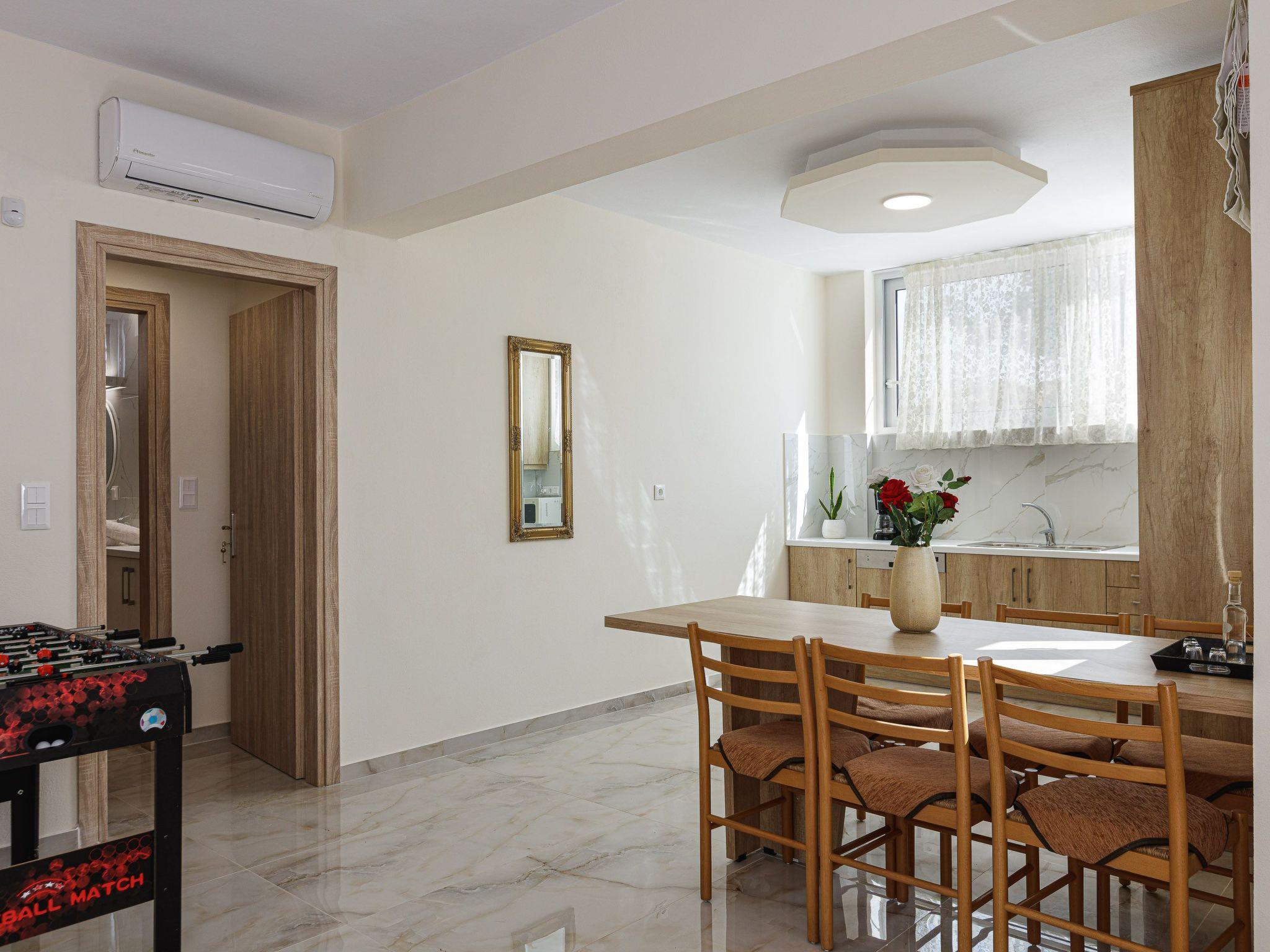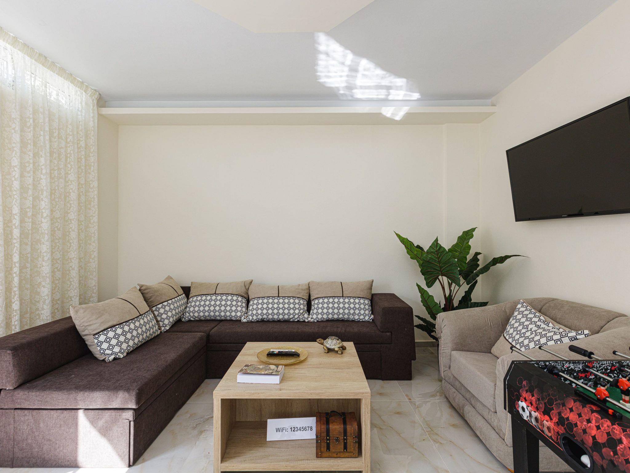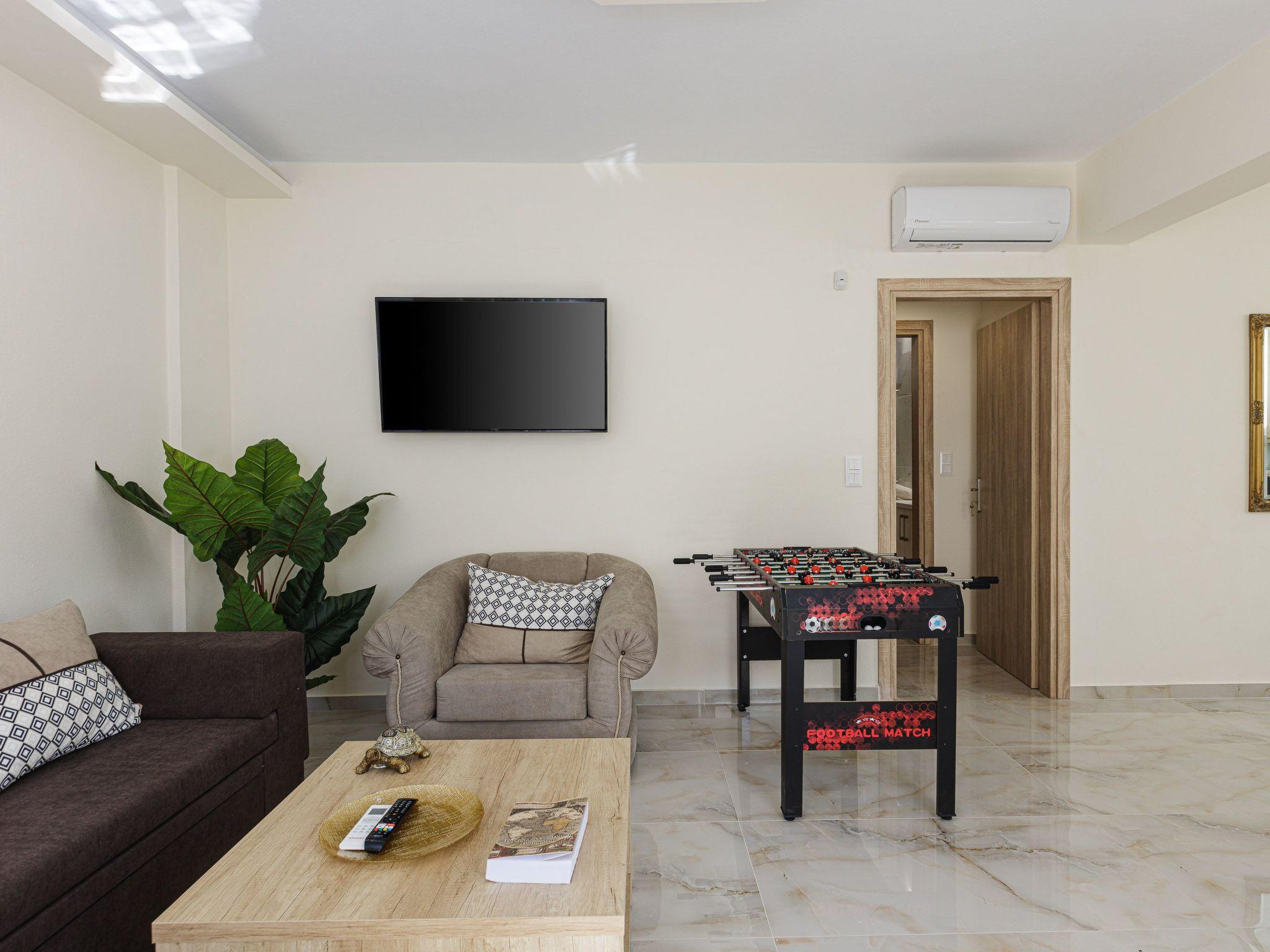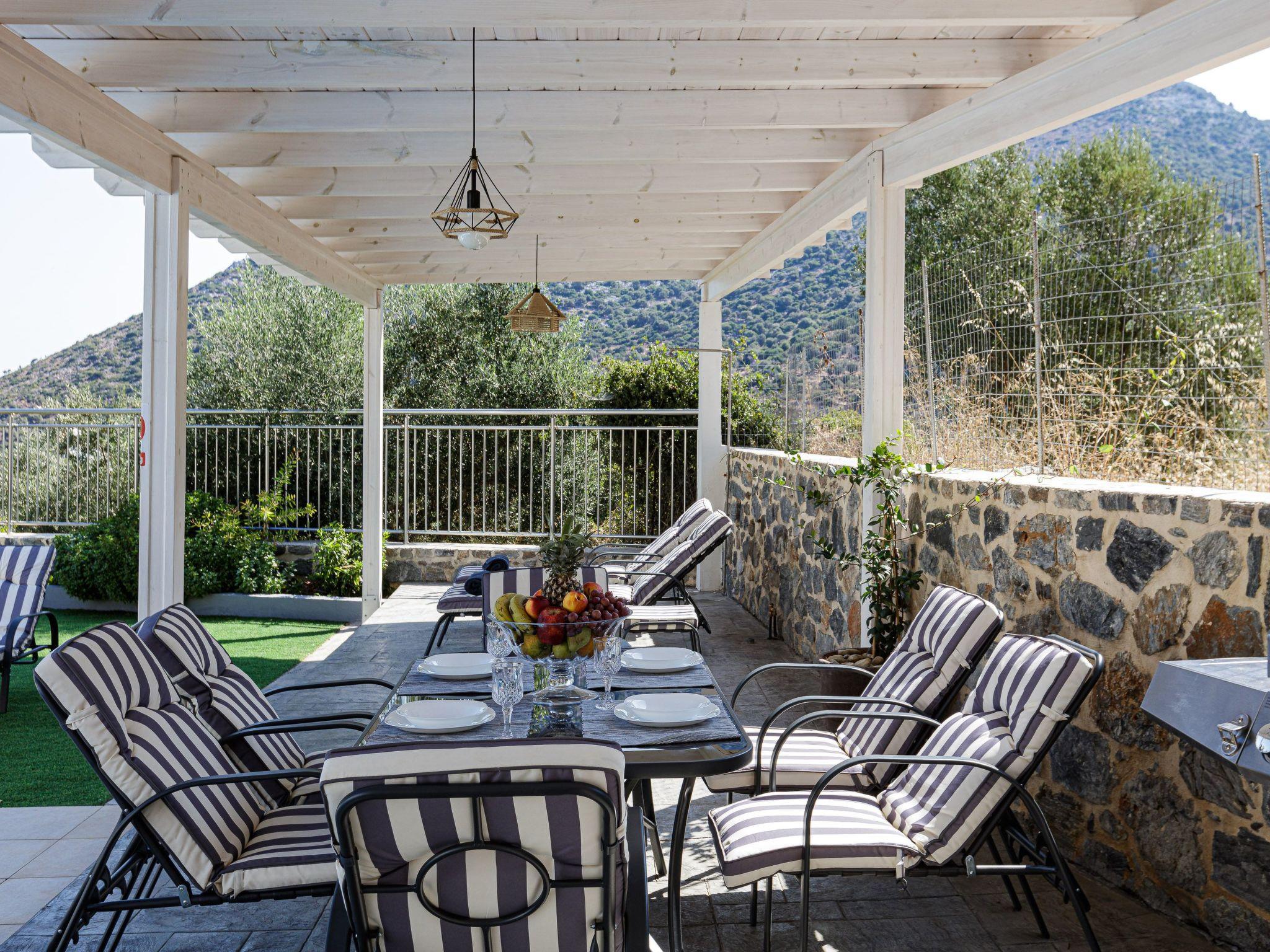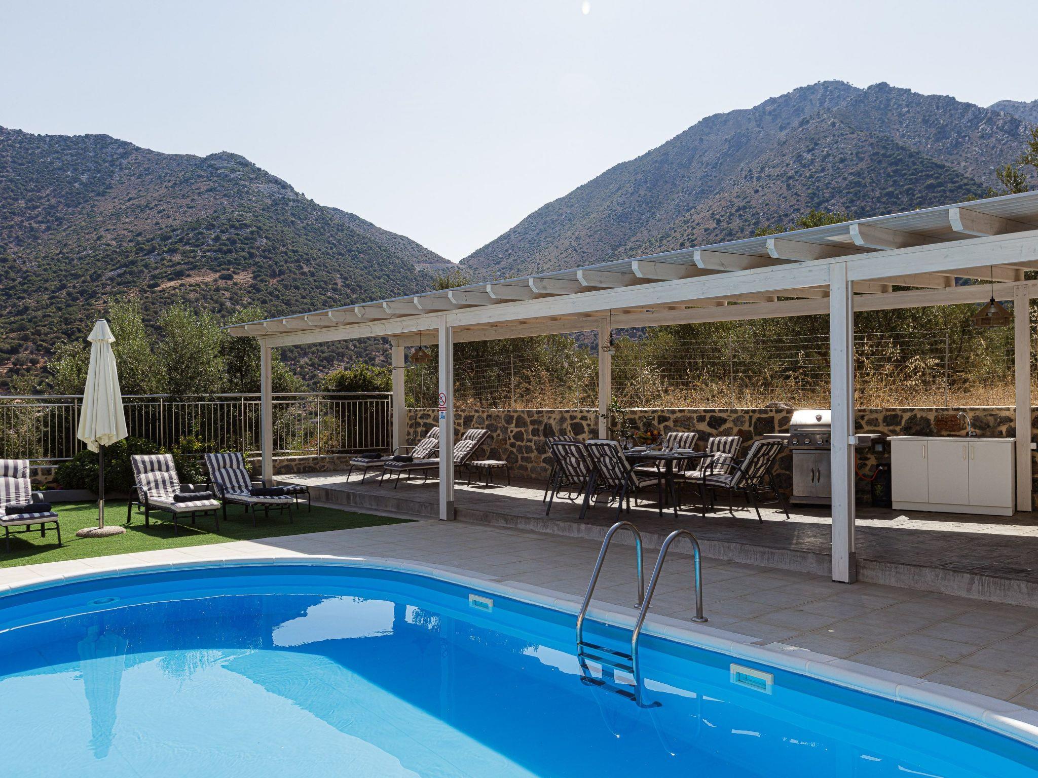 Villa Gloria is an exquisite family vacation rental situated in the Bali vicinity of Crete, a fashionable resort island in Greece. While this attractive villa is close to various magnificent beaches, restaurants, and local amenities, the delightful Villa Gloria is also the perfect getaway for a secluded, private family holiday. The beautiful Villa Gloria in Bali, Rethymno, is the ideal destination for a peaceful, relaxed, and enthralling family vacation in Greece. The tranquil location of the holiday villa ensures privacy, yet there are ample holiday attractions within easy reach of the holiday rental property. The private family villa boasts a stylish living area, tastefully furnished with ample seating for family and friends, a 53-inch smart TV, and a sound system with Bluetooth speakers. In the property the internet speed is 50mbb. Furthermore, there is air conditioning available to keep guests comfortable during their stay. Villa Gloria is fitted out with a sophisticated, modern kitchen with an oven, microwave, dishwasher, refrigerator, and freezer, as well as a coffee machine, toaster, and kettle. In addition, there is a mixer, blender, water filter, juicer, and egg machine offered for visitors’ convenience. There is also a cozy dining area with ample seating. The family holiday villa has 2 double bedrooms and 1 twin bedroom, with additional bedding to sleep up to 7 guests if required. The bedrooms have private balconies, air conditioning, and a safe for guests to enjoy. There are 2 full bathrooms of which one is ensuite, with 2 towels per guest and a hairdryer. Cleaning service is available once a week and amenities for guests include a washing machine, iron, and ironing board. The inviting outdoor area is host to a heated swimming pool in a peaceful garden setting, perfect for spending long summer days relaxing with the family. This Crete holiday villa has an extensive outdoor entertainment area, shielded by a large pergola. It contains a gas grill BBQ and a dining area, as well as informal seating and a children’s play area. Additionally, there is a football table for guests’ enjoyment. The Gloria family holiday villa also includes parking space for 2 cars.