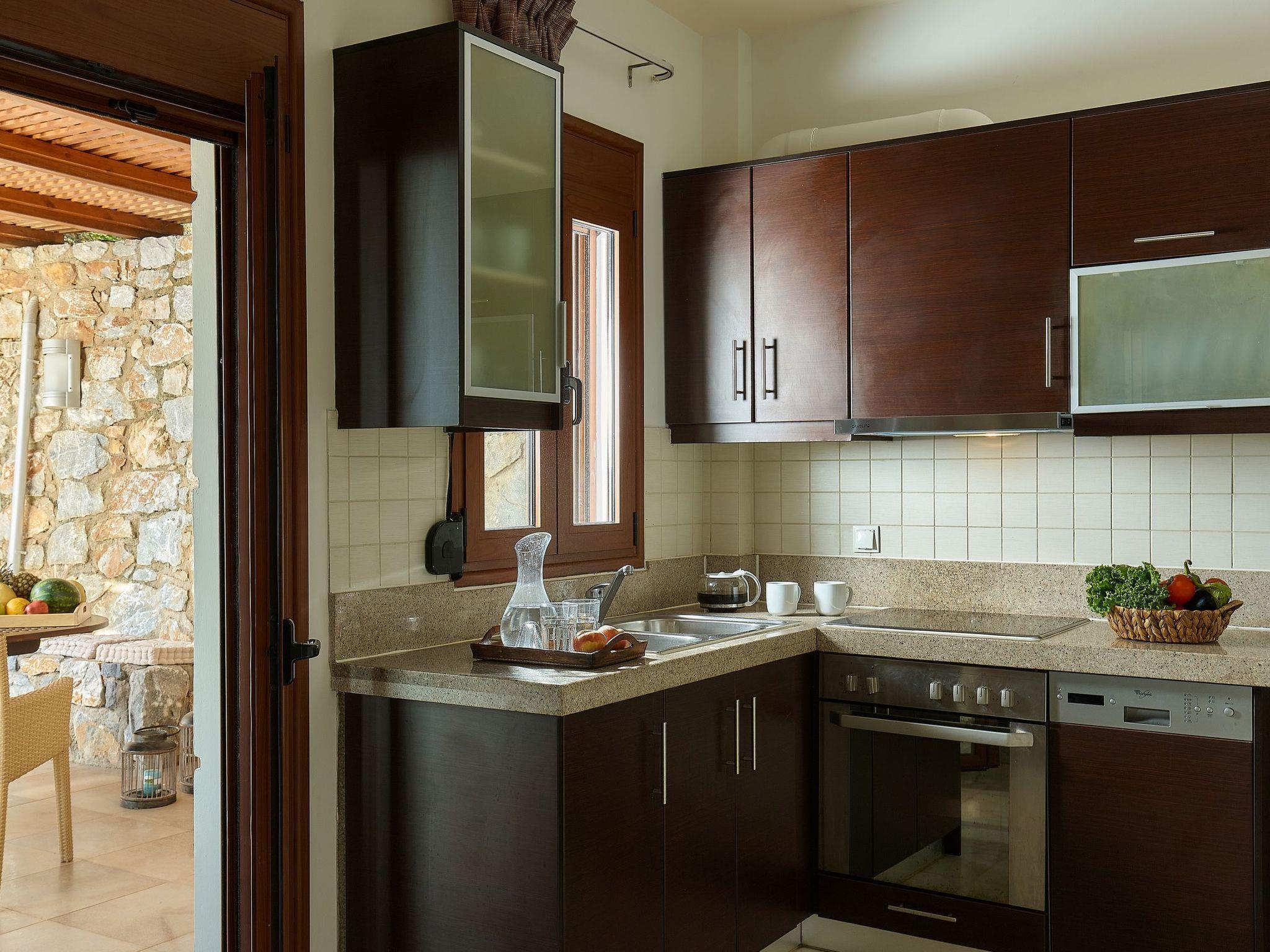 The villa offers access to many tourist attractions, beaches, big cities, airports, harbours/ports, etc. You can visit on foot or by car the calm beach at the bay of “Kalo Chorafi” which is at a distance of only 600 m from the Villas. You can swim at the light blue transparent waters of the secluded beach enjoying the Cretan sun under the umbrellas and the sunbeds provided by us.
