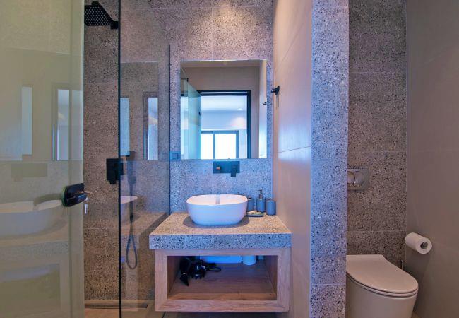 The villa is equipped with a 25 sqm private swimming pool and an attached kids' pool with a shaded area (pergola) where you'll find a barbecue and outdoor furniture to enjoy your meals. It is fully air-conditioned, offers free WiFi, and provides satellite TV. The property also has its own parking area.