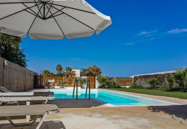 This villa features an easily accessible ground floor layout and covers an area of 67 sq.m. It comprises two bedrooms, one with a double bed and the other with twin beds, as well as two fully equipped shower bathrooms. There is a modern open-plan kitchen that comes fully equipped, and a living room with a comfortable sofa, dining table, and various furnishings and amenities. The villa is equipped with a satellite TV, a music system, and a safe. All areas are air-conditioned, and there is fast internet Wi-Fi coverage throughout.