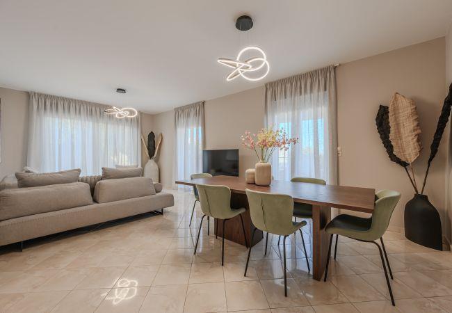 Foothills Tangerine Villa is a breathtaking 6-bedroom property located in the serene Sfakaki area of Rethymno, Crete. Perfectly designed to host up to 12 guests, the villa offers a harmonious blend of luxury, comfort, and stunning views, making it ideal for families or groups of friends seeking an unforgettable getaway.