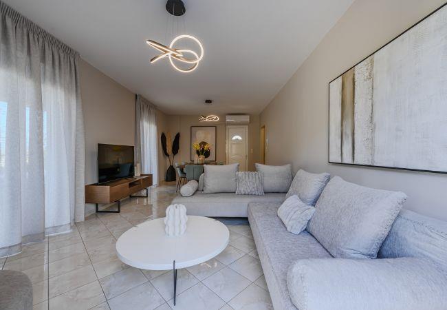 The Sfakaki area boasts beautiful sandy beaches and within a short walk, you'll find charming taverns, restaurants and a supermarket. Rethymno Town is just 9 kilometers away, and there's a bus stop within a few minutes' walk from the villa.