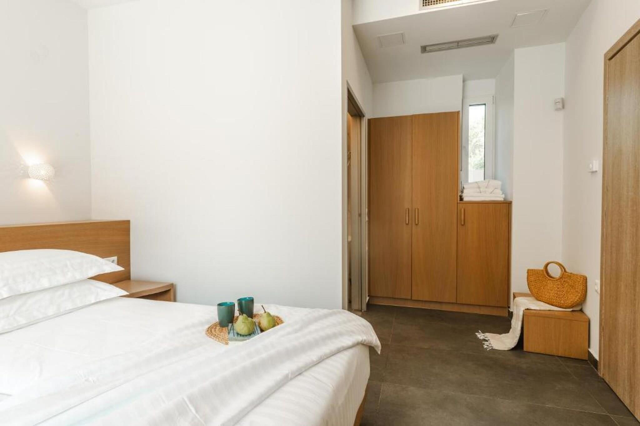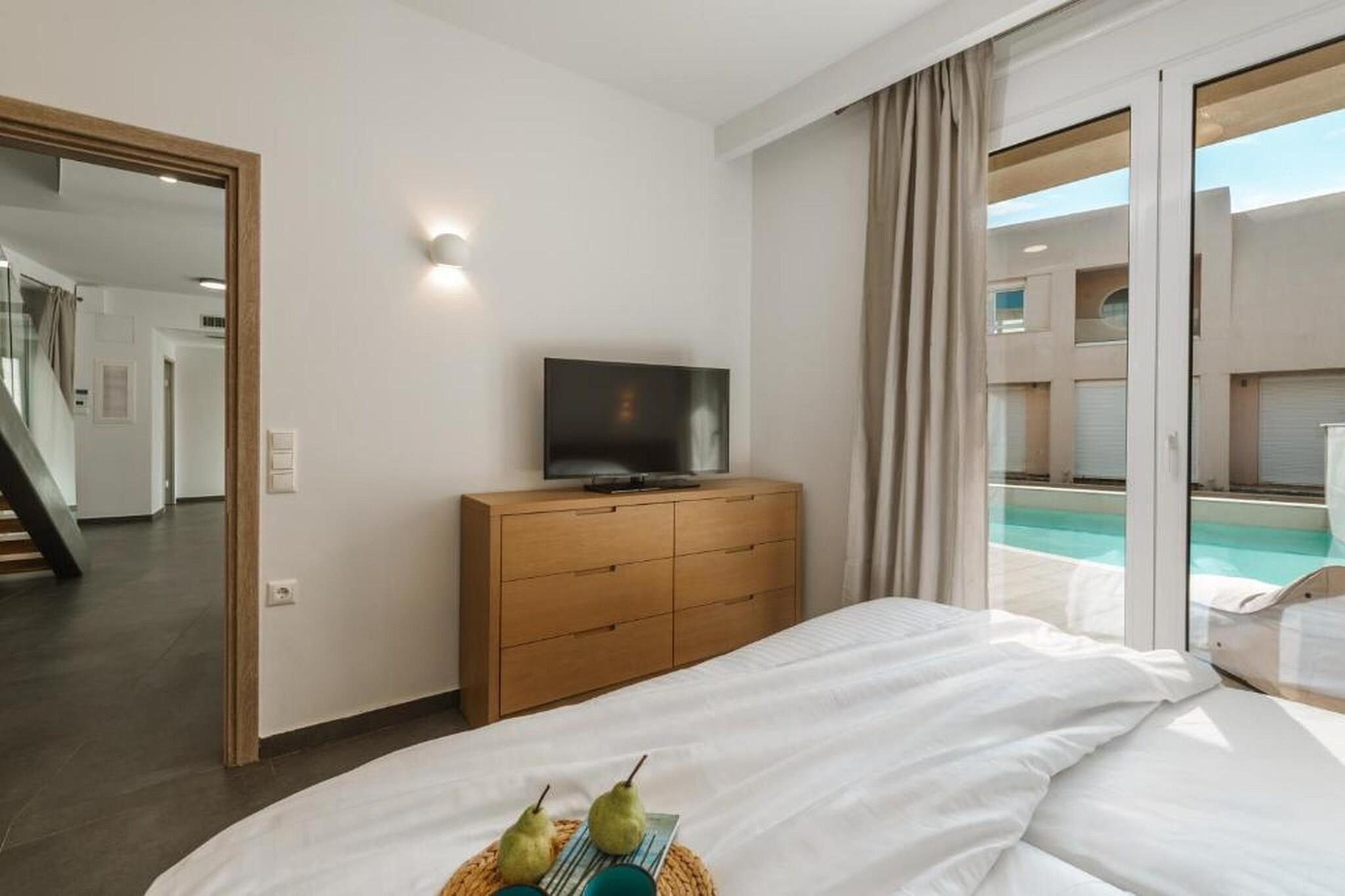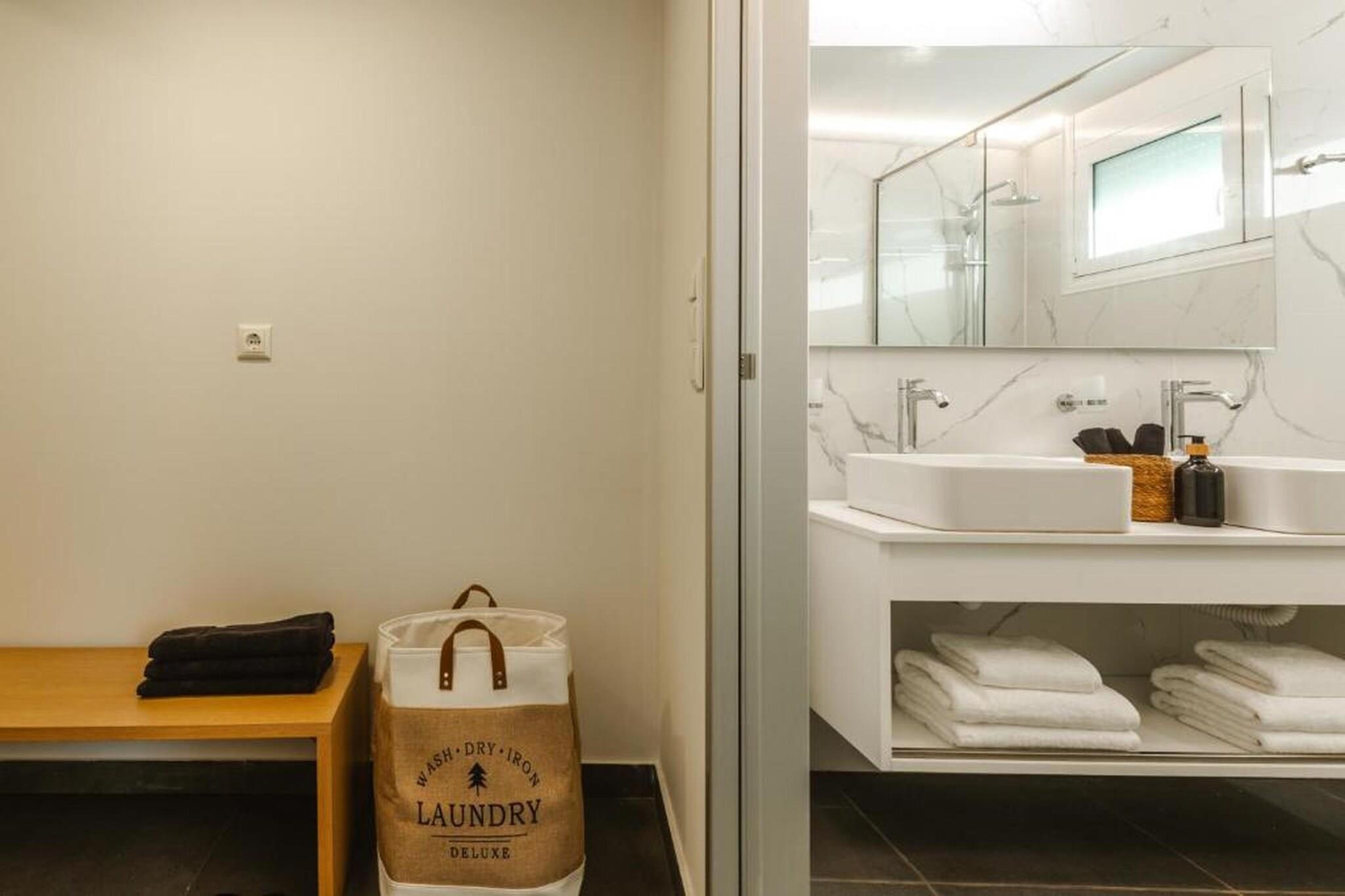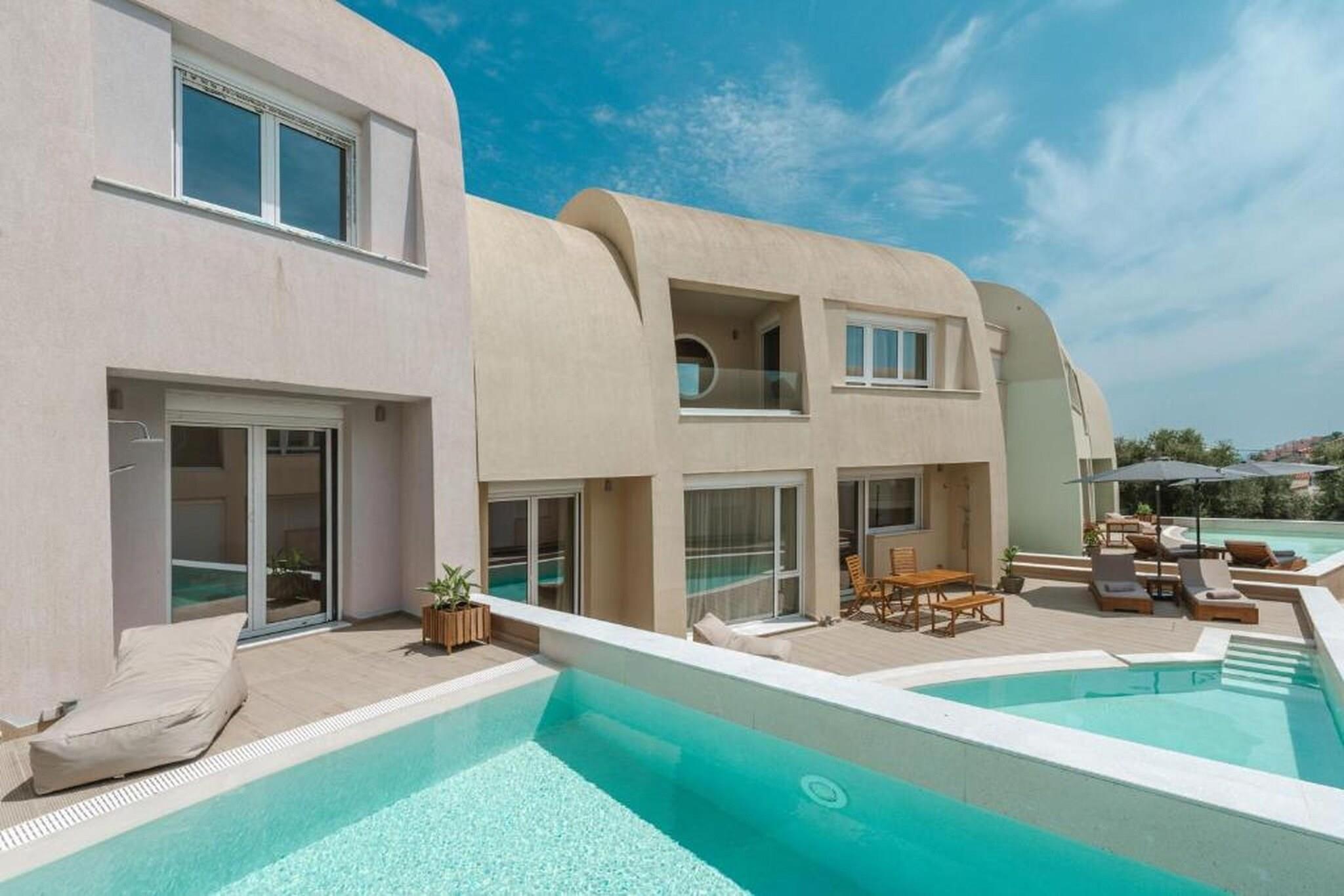 Fordyb dig i en raffineret middelhavsferie på Tortuga Luxury Villas Sivota, hvor moderne arkitektonisk elegance møder den uberørte naturlige skønhed ved den joniske kyst. Denne villa på 130 m²-135 m² med tre soveværelser er designet til kræsne rejsende og tilbyder en problemfri blanding af indendørs og udendørs ophold og førsteklasses faciliteter. Villaen er perfekt egnet til grupper eller familier på op til seks personer og har en sæsonåben privat swimmingpool og en rolig terrasse møbleret med havemøbler og liggestole, hvilket giver et afsidesliggende fristed at slappe af i Grækenlands afslappede rytme. Interiøret er et udstillingsvindue for sofistikeret komfort med tre soveværelser med eget badeværelse, store dobbeltsenge og en rummelig opholdsstue med satellit-tv og højhastigheds-Wi-Fi. Det fuldt udstyrede åbne køkken inkluderer high-end apparater såsom espressomaskine, ovn, opvaskemaskine og endda et raclette-sæt til mindeværdige aftener. Yderligere faciliteter såsom parkering, aircondition og vaskeri er omhyggeligt udvalgt for at sikre et fredeligt og luksuriøst ophold. Ideelt beliggende i et roligt boligområde i Sivota, kun 17 minutters gang (1,4 km) fra det krystalklare vand ved Zavia-stranden og en kort tur på 1,5 km til den pulserende Sivota-havn. Ejendommen tilbyder bekvemmeligheden af gratis privat parkering på stedet, lufthavnstransport og fuld tilgængelighed for handicappede gæster. Uanset om du nyder en grillfest på terrassen eller nyder udsigten over bjergene og poolen fra din private balkon, tilbyder disse villaer en autentisk og fornemt græsk ø-livsoplevelse.