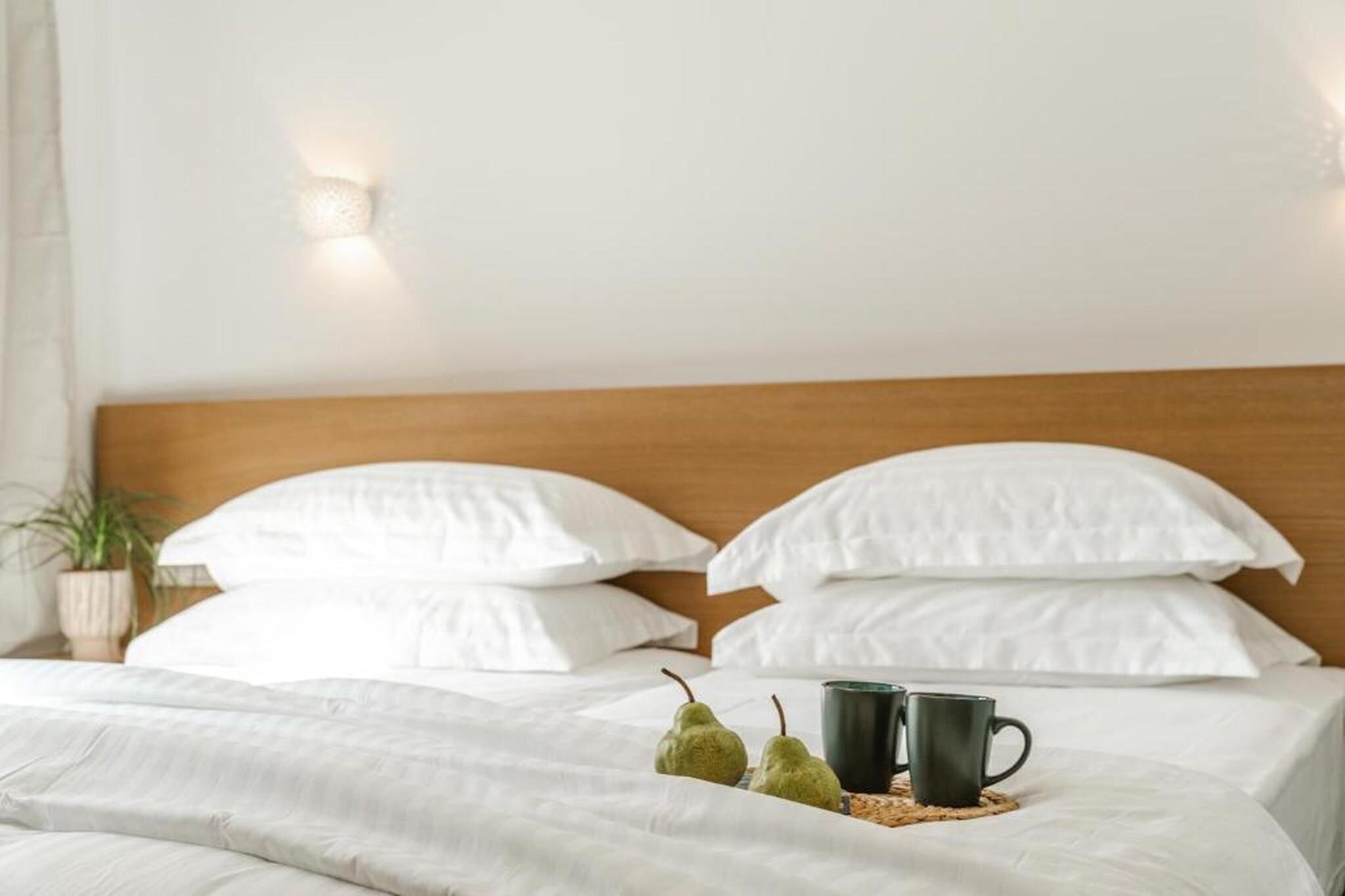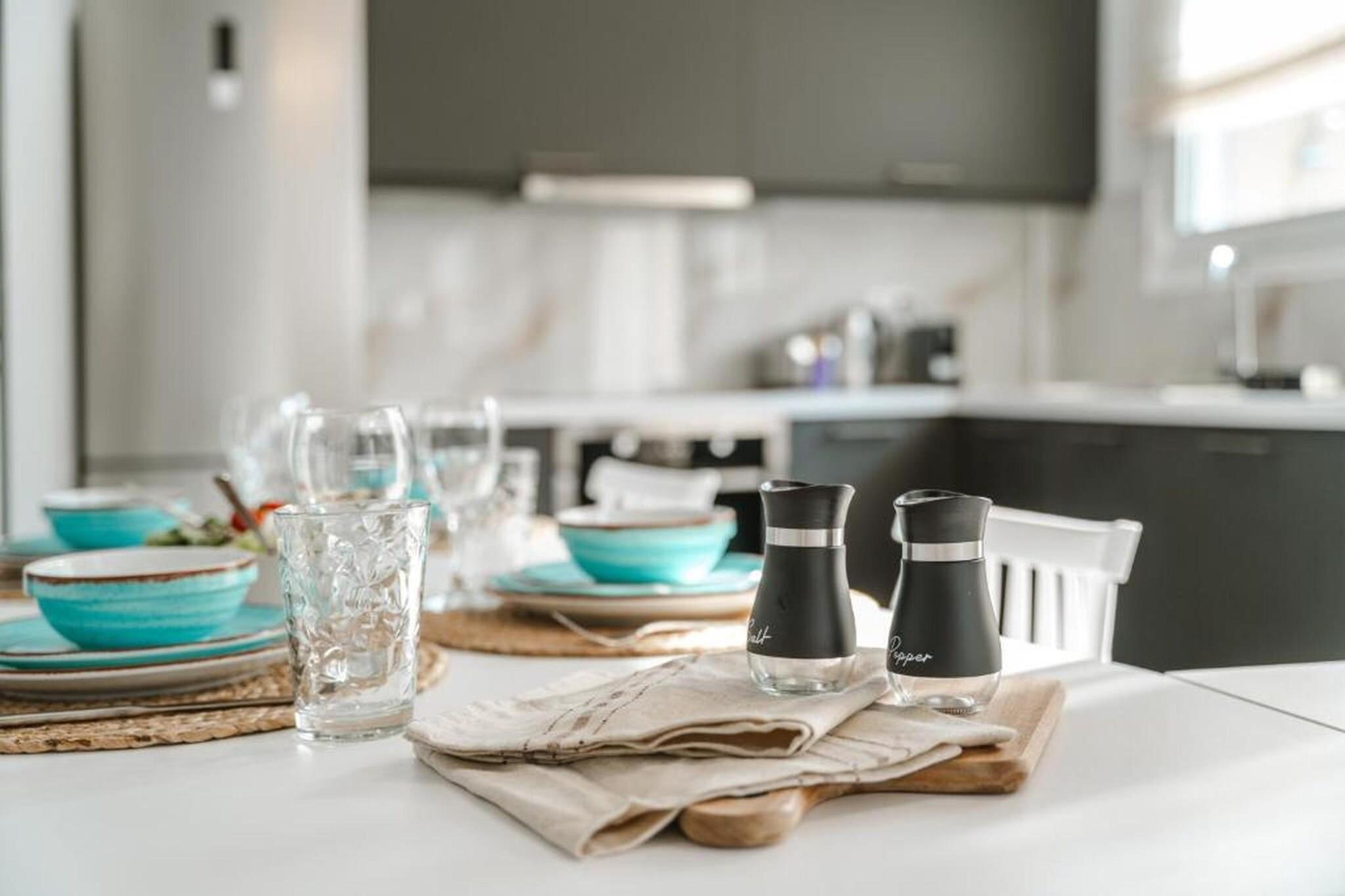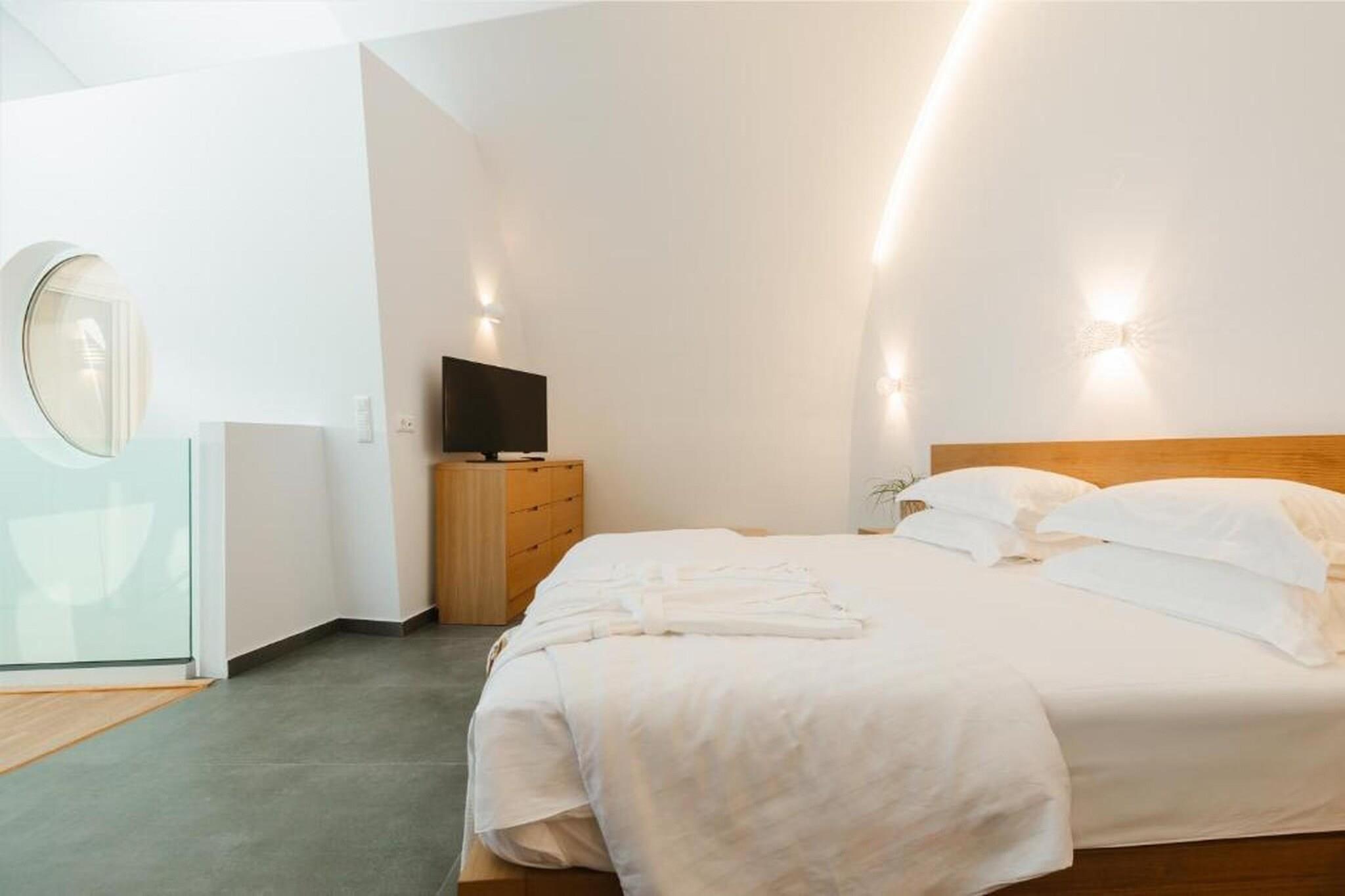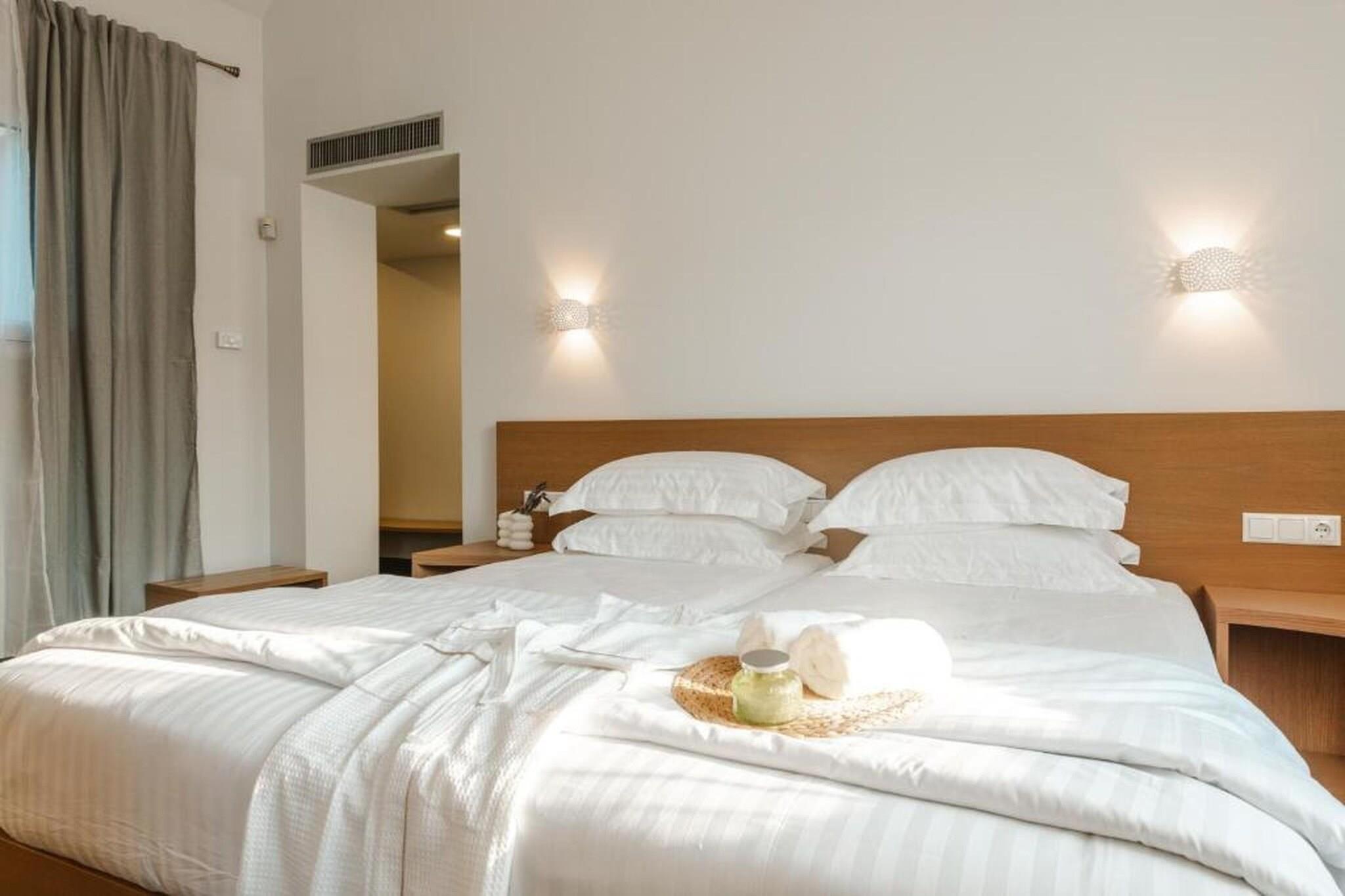 Fordyb dig i en raffineret middelhavsferie på Tortuga Luxury Villas Sivota, hvor moderne arkitektonisk elegance møder den uberørte naturlige skønhed ved den joniske kyst. Denne villa på 130 m²-135 m² med tre soveværelser er designet til kræsne rejsende og tilbyder en problemfri blanding af indendørs og udendørs ophold og førsteklasses faciliteter. Villaen er perfekt egnet til grupper eller familier på op til seks personer og har en sæsonåben privat swimmingpool og en rolig terrasse møbleret med havemøbler og liggestole, hvilket giver et afsidesliggende fristed at slappe af i Grækenlands afslappede rytme. Interiøret er et udstillingsvindue for sofistikeret komfort med tre soveværelser med eget badeværelse, store dobbeltsenge og en rummelig opholdsstue med satellit-tv og højhastigheds-Wi-Fi. Det fuldt udstyrede åbne køkken inkluderer high-end apparater såsom espressomaskine, ovn, opvaskemaskine og endda et raclette-sæt til mindeværdige aftener. Yderligere faciliteter såsom parkering, aircondition og vaskeri er omhyggeligt udvalgt for at sikre et fredeligt og luksuriøst ophold. Ideelt beliggende i et roligt boligområde i Sivota, kun 17 minutters gang (1,4 km) fra det krystalklare vand ved Zavia-stranden og en kort tur på 1,5 km til den pulserende Sivota-havn. Ejendommen tilbyder bekvemmeligheden af gratis privat parkering på stedet, lufthavnstransport og fuld tilgængelighed for handicappede gæster. Uanset om du nyder en grillfest på terrassen eller nyder udsigten over bjergene og poolen fra din private balkon, tilbyder disse villaer en autentisk og fornemt græsk ø-livsoplevelse.