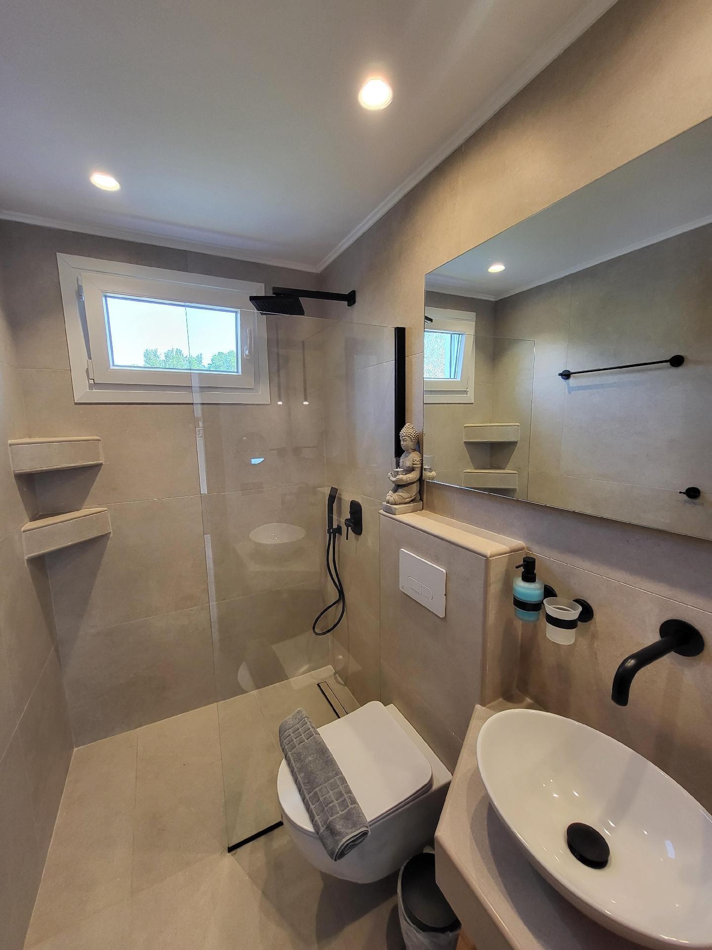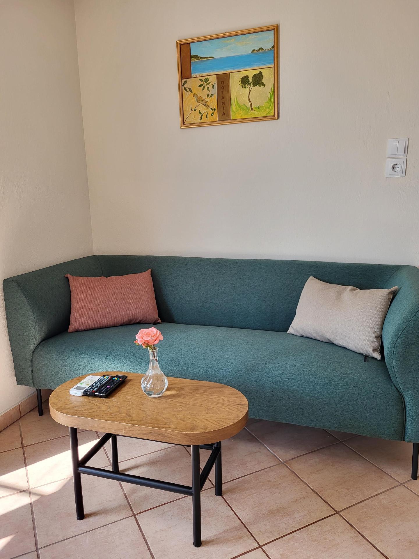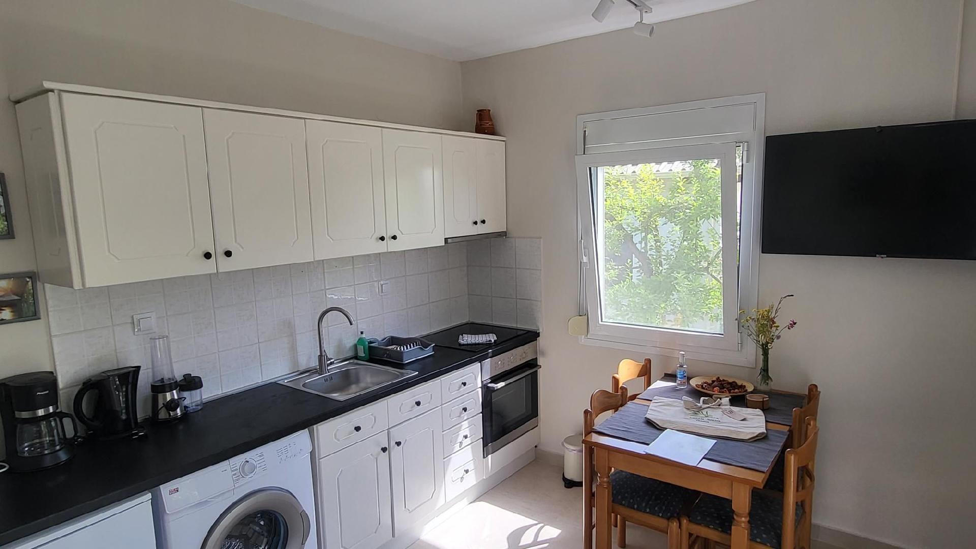 In a quiet and idyllic location, the holiday home offers you an ideal holiday domicile. In addition to two bedrooms and a bathroom, the living room has a fully equipped kitchenette and a sofa bed, the house is freshly painted and has air conditioning, satellite TV (including a selection of German programmes) and WiFi. The large terrace is perfect for relaxing hours on your sun lounger or for romantic evenings with Greek wine.your holiday home on Thassos awaits you nestled in a green olive grove, away from the stress and noise of everyday life. The imposing mountain panorama radiates an intense tranquillity that will immediately relax you. Intense colours of green and blue shine in the morning sun and there is rarely a cloud in the sky. The island also has its own special charm outside the high season. In spring, green flower meadows and in autumn the golden light of October invite you to relax. In summer, our own grapevines provide shade on the cosy terrace and if you arrive by car or hire car, you can park directly at your holiday home on Thassos. Our 10-hectare property offers enough space so that you can easily park your vehicle. If you need help planning your journey, we will be happy to help you. The two houses are identically equipped and are each suitable for up to 4 people. Each house has 2 open terraces with a garden in front. There are two bedrooms (1 double bed, 2 single beds), a bathroom with shower and a living/dining room. Your terrace is the ideal place to end a relaxing day on the island. Use fresh herbs and oregano that you have collected yourself on walks in the neighbourhood and prepare a delicious dinner with local ingredients in your fully equipped kitchenette. If you prefer to eat out, there are plenty of quaint tavernas within walking distance of your holiday home on Thassos. There is a supermarket in the immediate vicinity. It is also an ideal starting point for hikes in the forests and mountains as well as to neighbouring mountain villages. The beautiful sandy Golden Beach, which is about three kilometres long, can be reached quickly via a short footpath and is also ideal for children.German, English and Greek-speaking contact persons are available on site.Brief description 1Number of kitchens : 1Living room 1Other living room facilities : TV, fully equipped kitchen, air conditioningBedroom 1Other bedroom facilities : Cot on requestKitchen 1Other kitchen facilities : Washing machine, additional electric cookerPalettesSurroundingsLoan facilities : Car hire, boat hire, bicycle hireSports activities in the surrounding area : Fishing, mountaineering, canoeing, cycling, water skiingGarden and outdoor facilitiesRecreational facilities at the property : Shared outdoor pool, swimming poolGarden equipment : Garden furniture available, barbecueServicesServices (may apply) chargeable) : Transfer service (airport etc.)