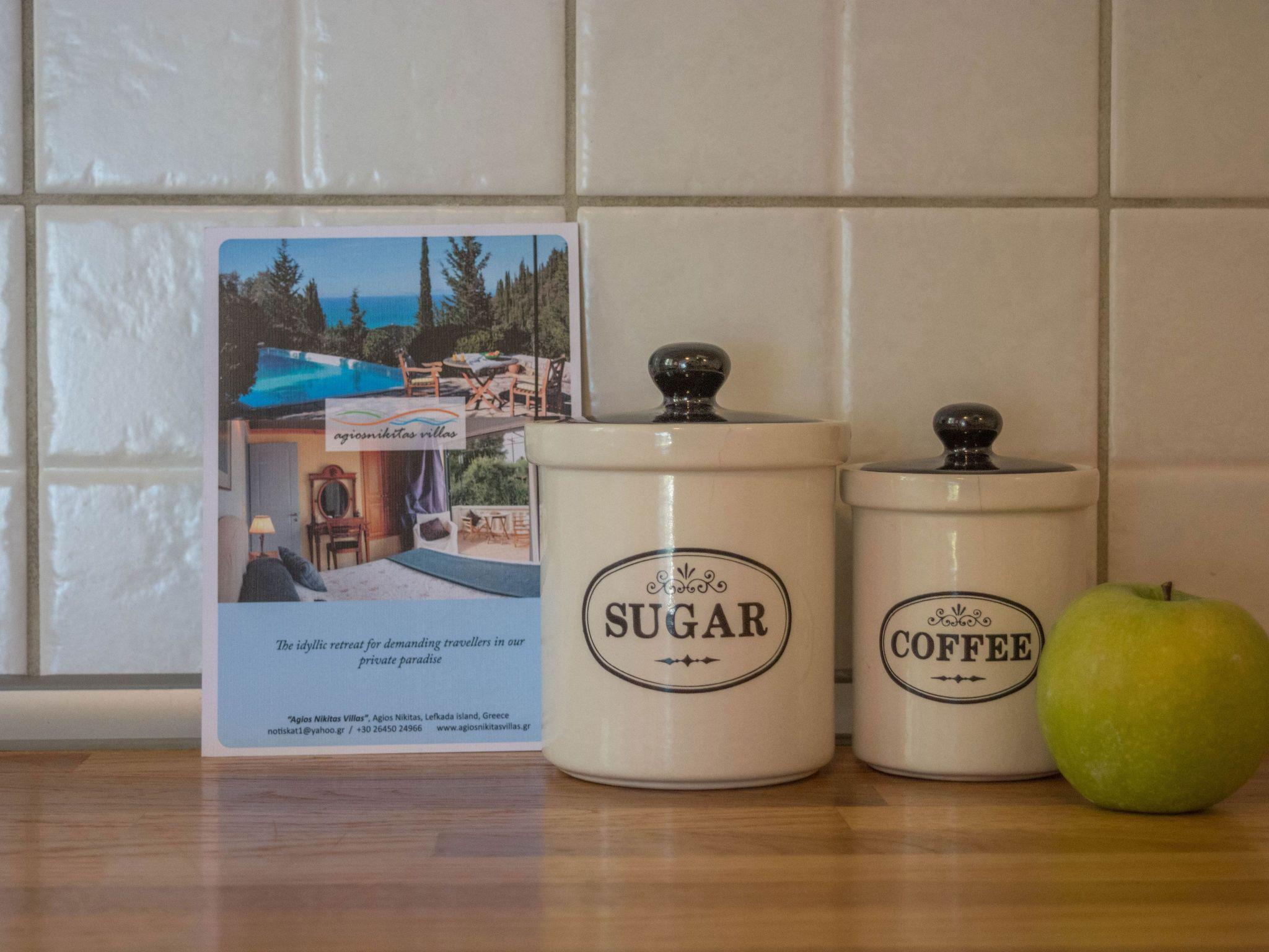 Although the pretty village of Agios Nikitas is only a 20-25 minute walk downhill; it feels a longer and much hotter journey back. The village and beach is less than 10 minutes by car. Of course, we would like to encourage you to use the car for exploring the wonders of this beautiful island!