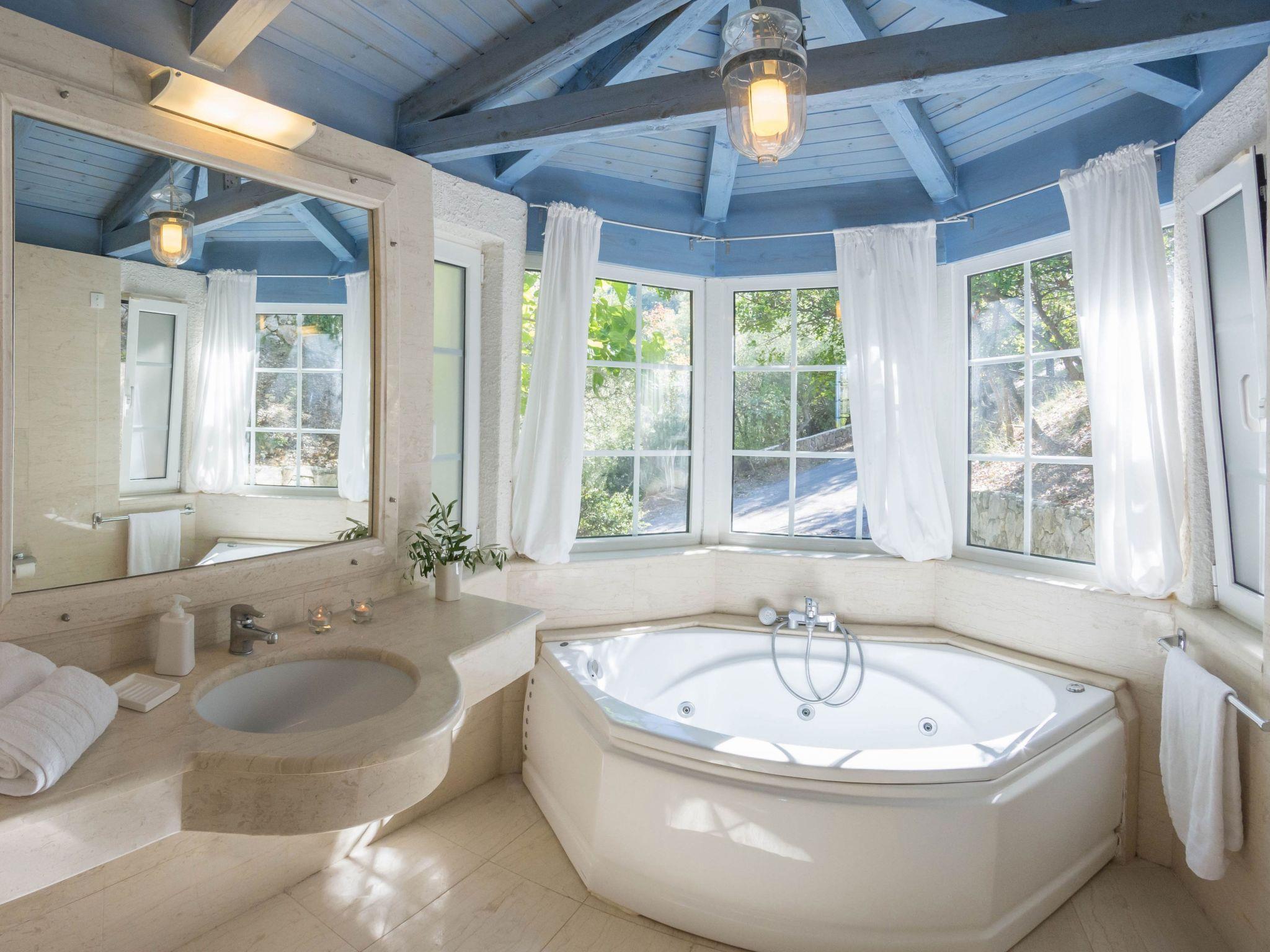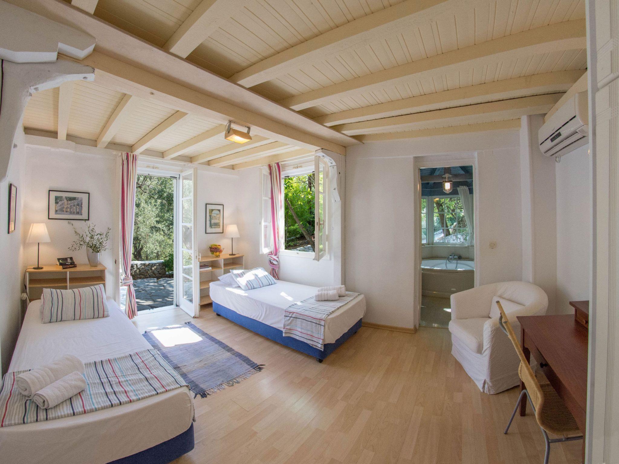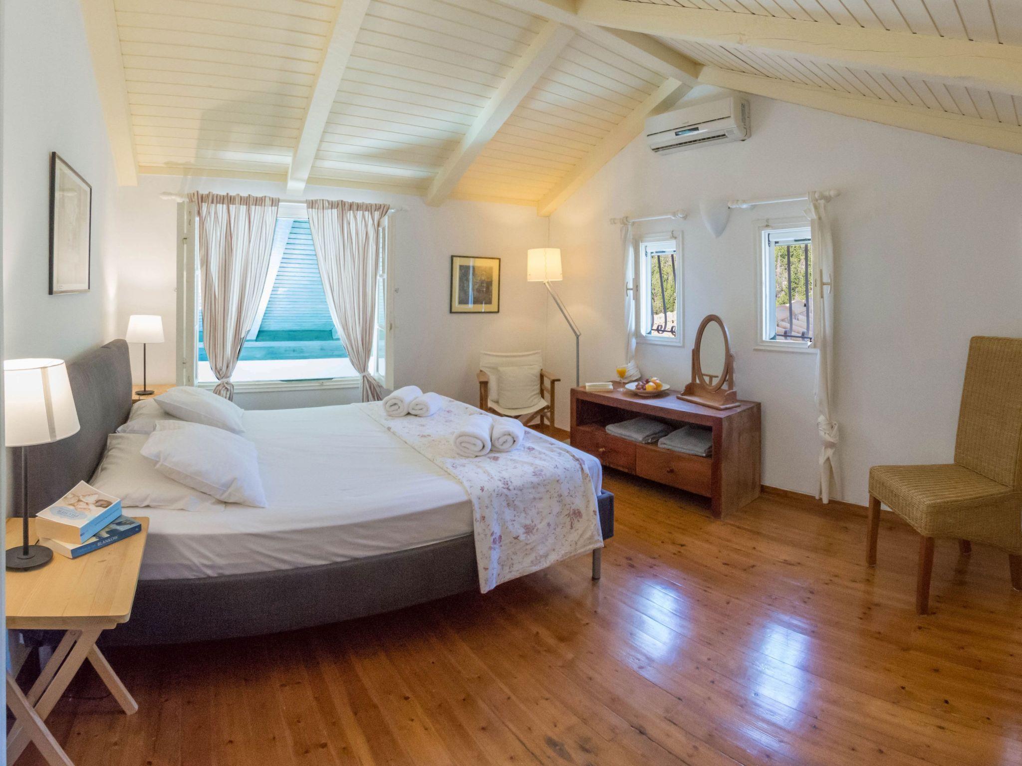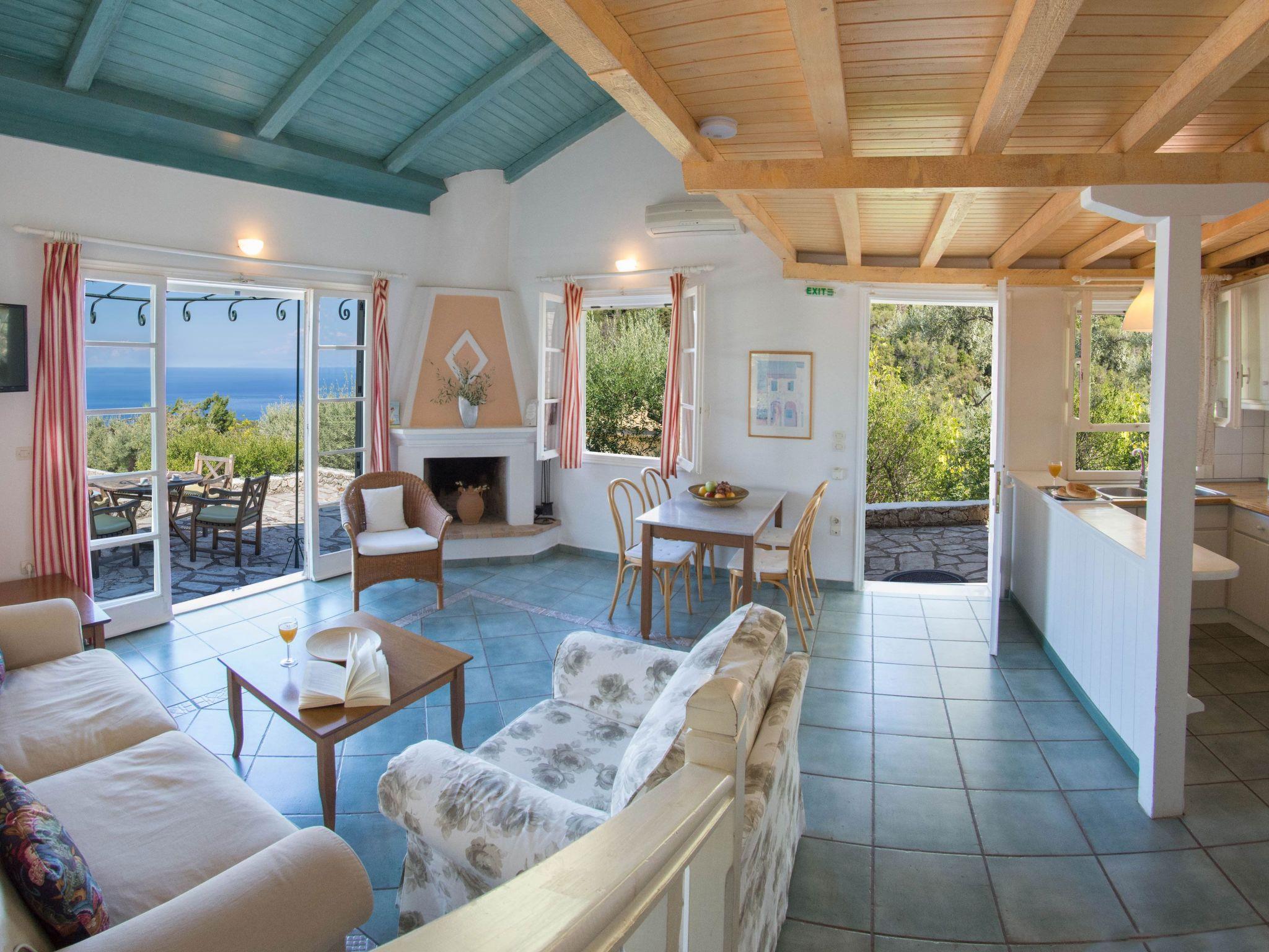 An asphalt drive leads up from the village of Agios Nikitas to the villa. Situated on different levels, natural stone walls, olive trees, shrubs, climbers and cacti surround each villa to create privacy.