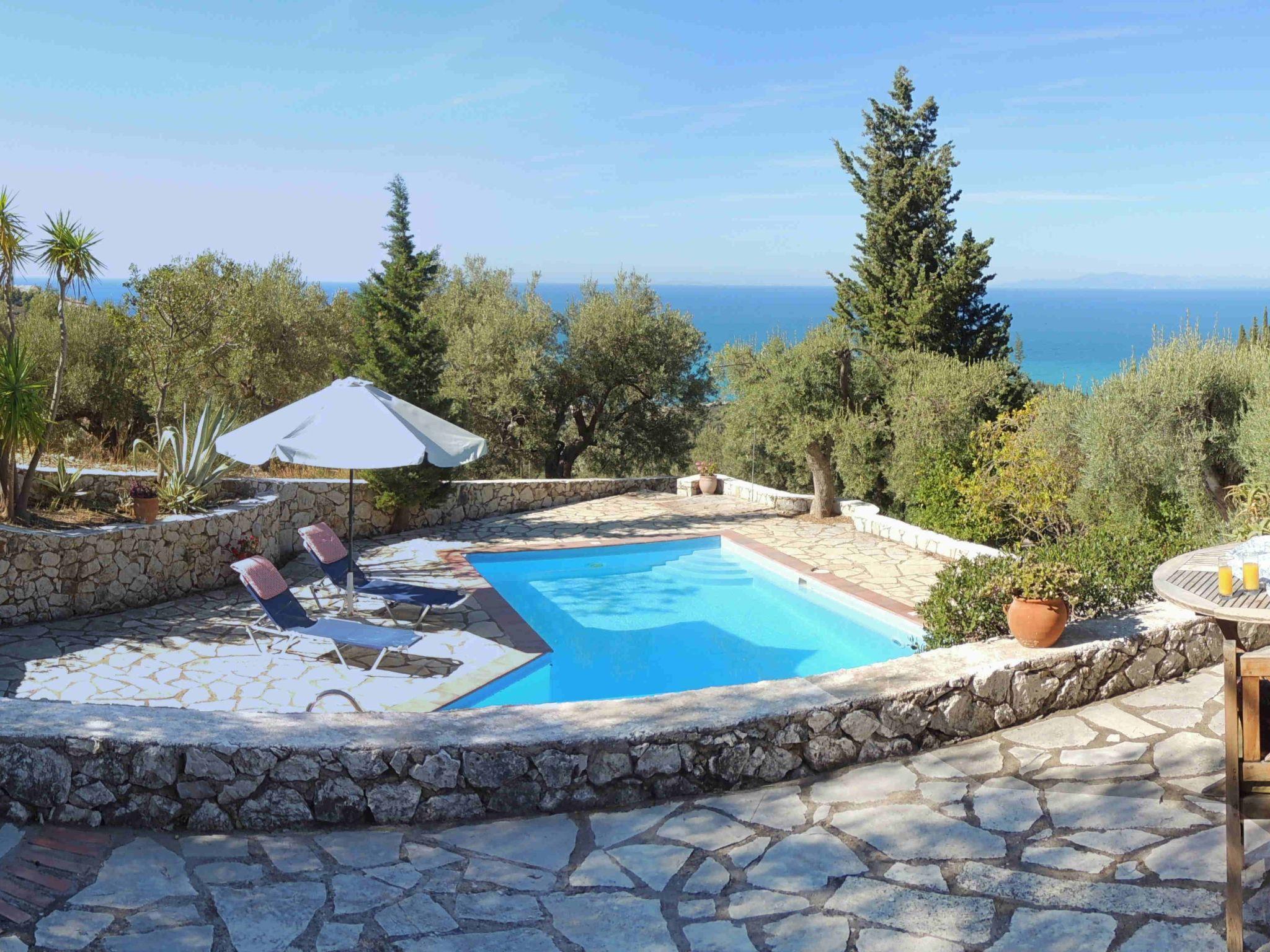 Villa sits on the highest level out of the three. It has uninterrupted sea views and the pool and a shady umbrella to sit under and relax enjoying fresh coffee with breakfast whilst overlooking this view, and listening to the birds of prey "mewing" in the background above the hills. Is perfect! At lunchtime a refreshing cool breeze arrives and dies down just as the sun is about to set.