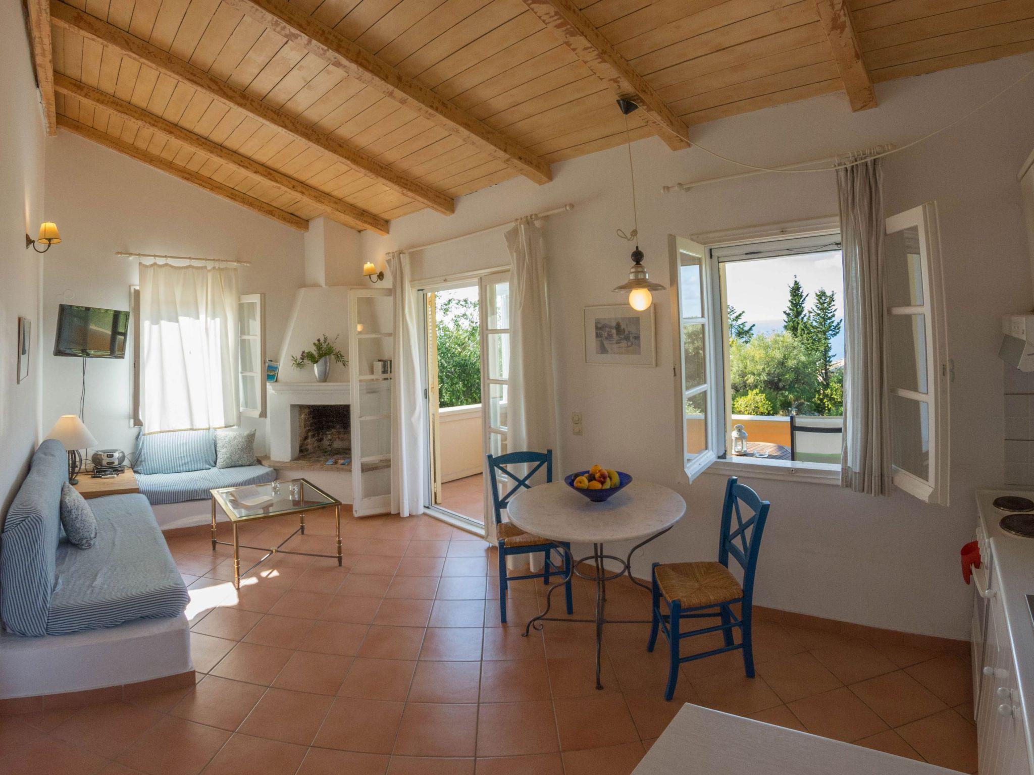 Outside: A steep drive leads up from the village of Agios Nikitas to the appartments. Situated of different levels, natural stone walls, olive trees, shrubs and climbers surround each apt. to create privacy.