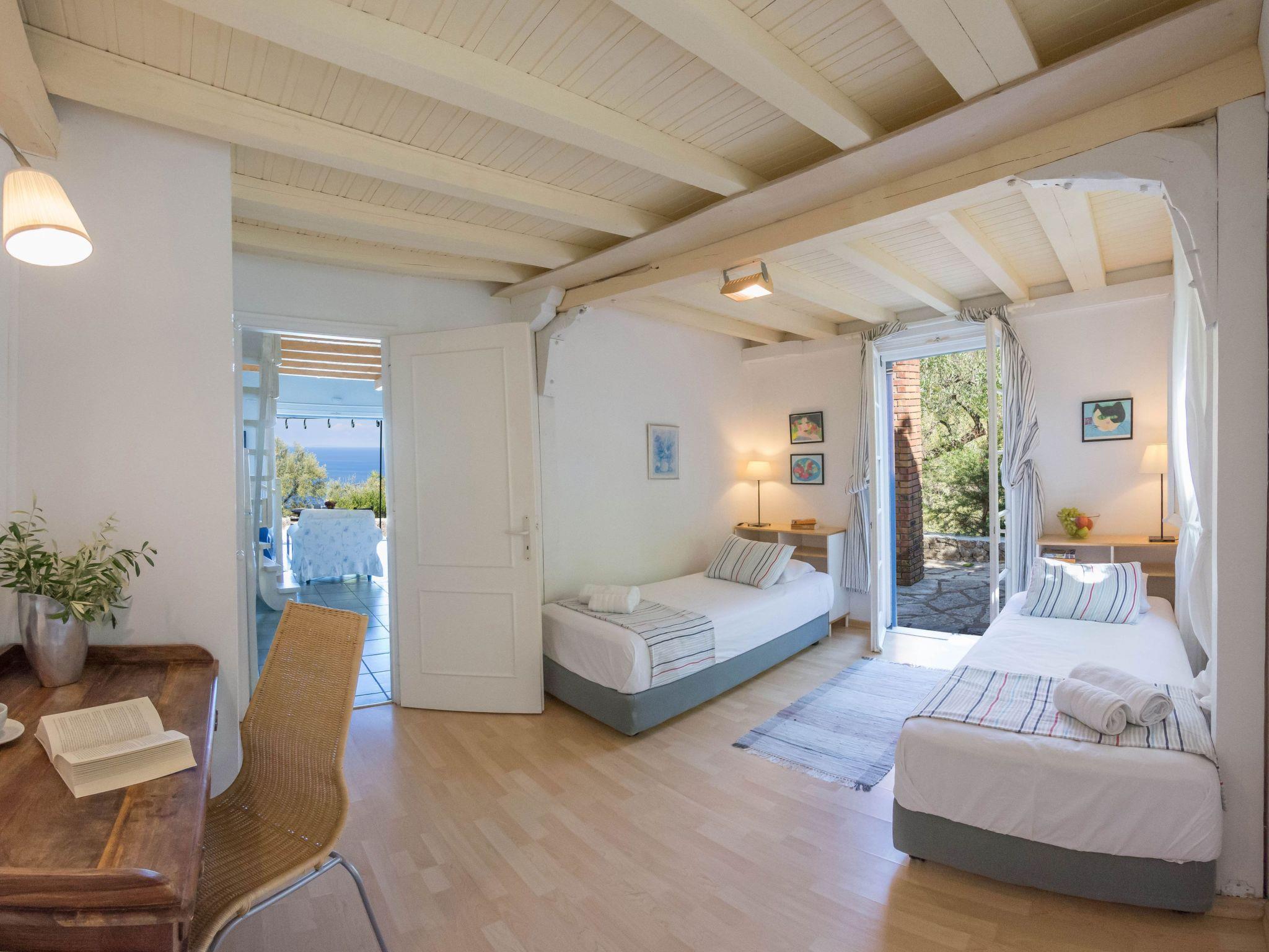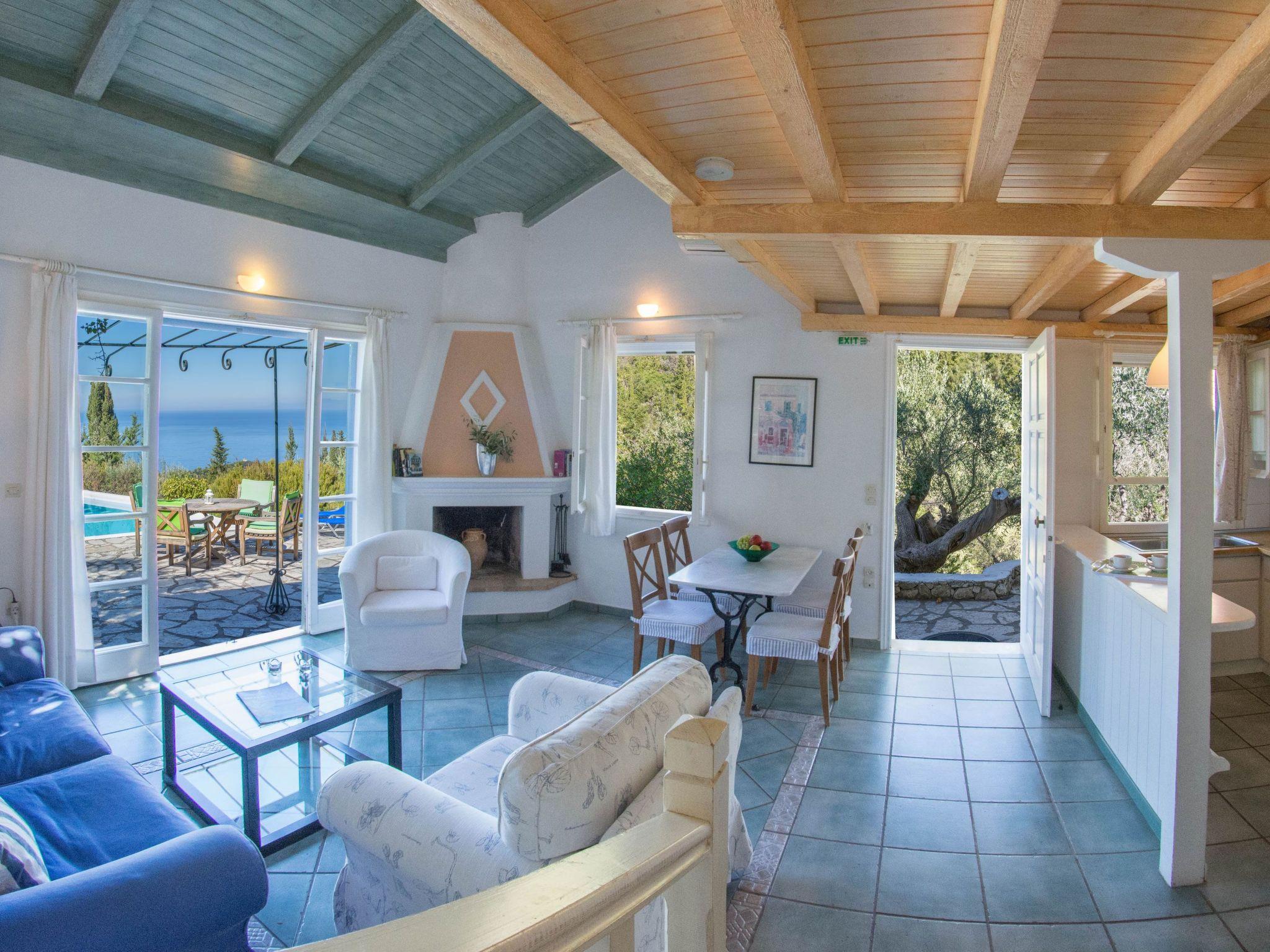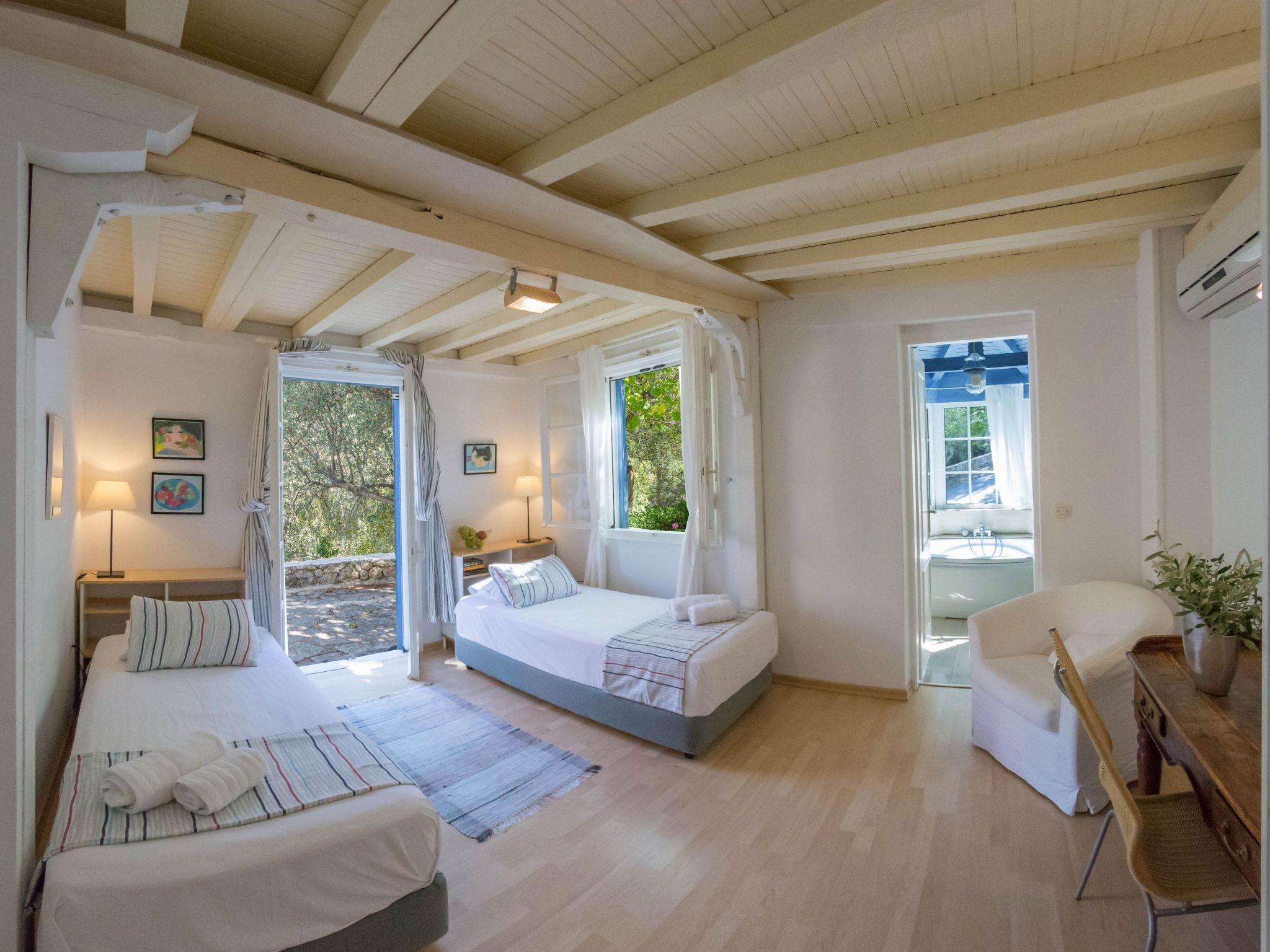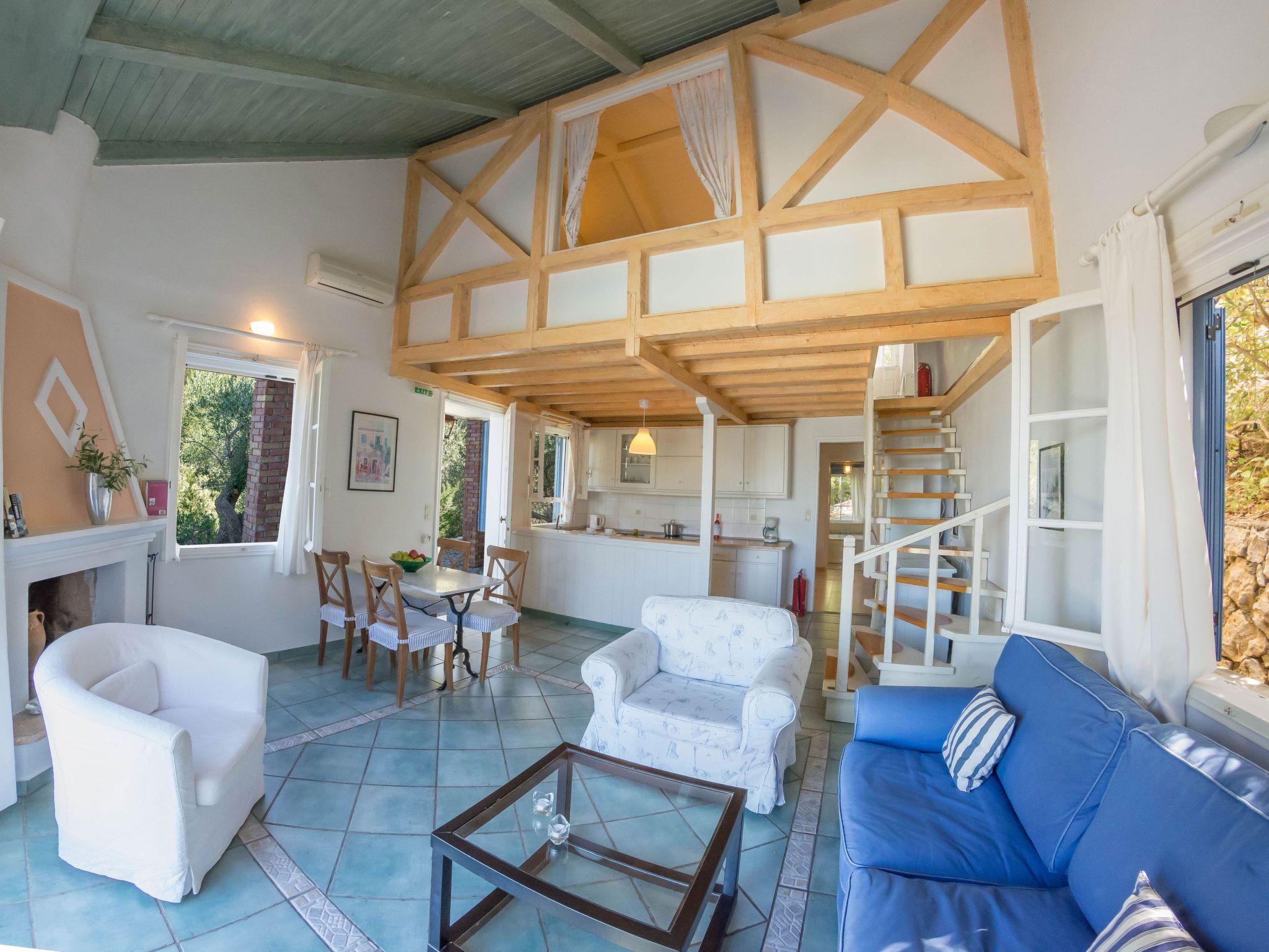 An asphalt drive leads up from the village of Agios Nikitas to the villas. Situated on different levels, natural stone walls, olive trees, shrubs, climbers and cacti surround each villa to create privacy.