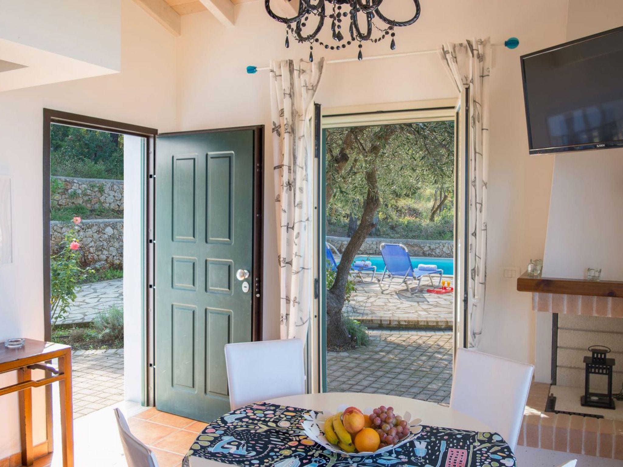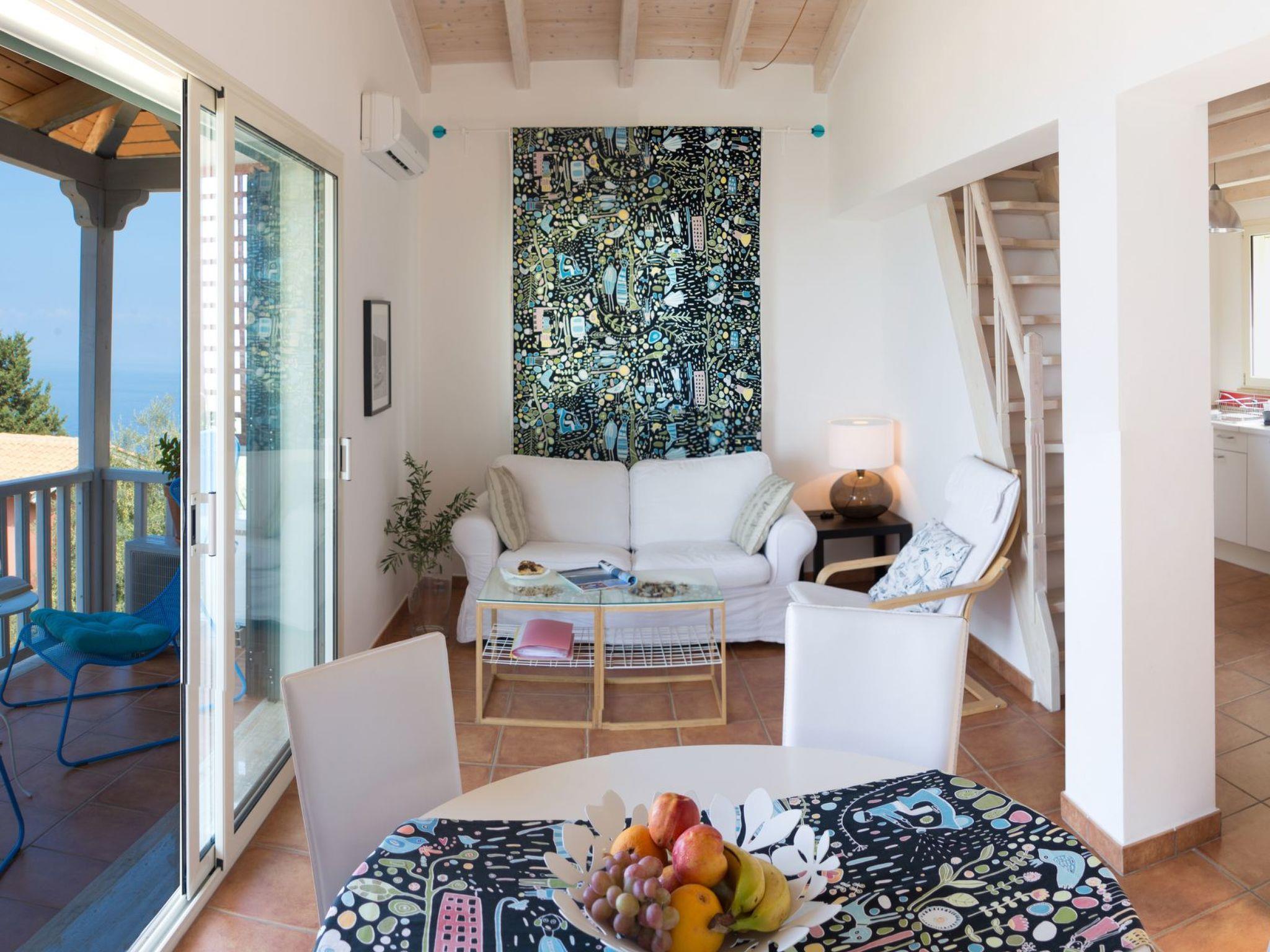 An asphalt drive leads up from the village of Agios Nikitas to the villa Mare Magico. Situated on a quiet mountain side between olive and cypress trees, shrubs, thymes, sages and climbers that create privacy.