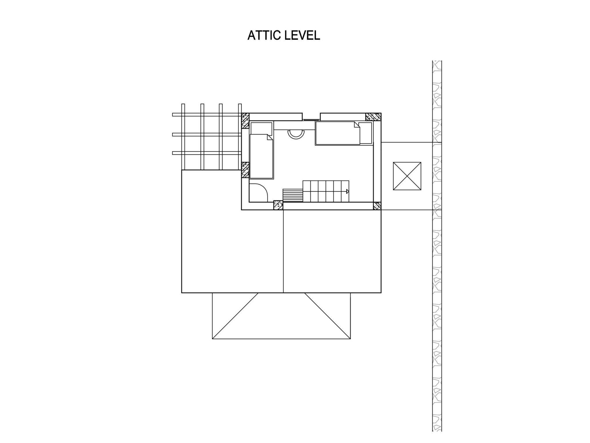 The villa counts approx. 100 m² split in two main levels and an attic, with 2 bedrooms, 2 bathrooms & 1 w.c with a shower, plus the attic as a third bedroom. Entering the villa the main entrance level has an open plan living/dining/kitchen area. The living area has a fire-place and French windows that open onto a wide canopy balcony to the sea views. The dining area has French windows open onto the large swimming pool terrace. Next to the kitchen are the stairs leading up to the attic and down to the bedrooms .There is also one bathroom with shower in common use for this floor and the attic. Staircase leads down to one double bedroom, with en-suite spacious bathroom, leading to big open terrace and one twin bedded room, leading to the same open terrace, next to another bathroom with shower. From the main level, an open staircase leads up to the attic ,as a third bedroom with two single beds.