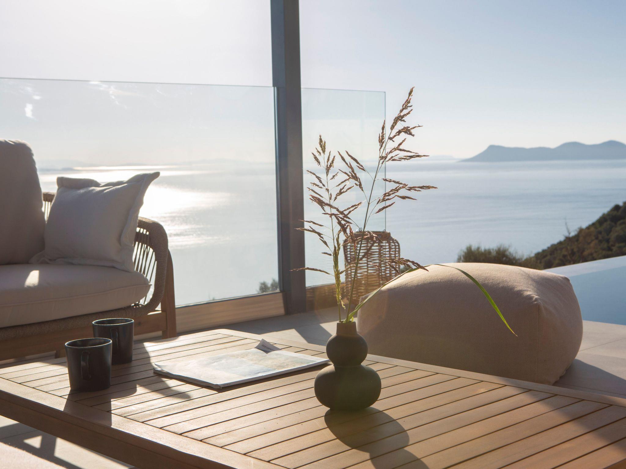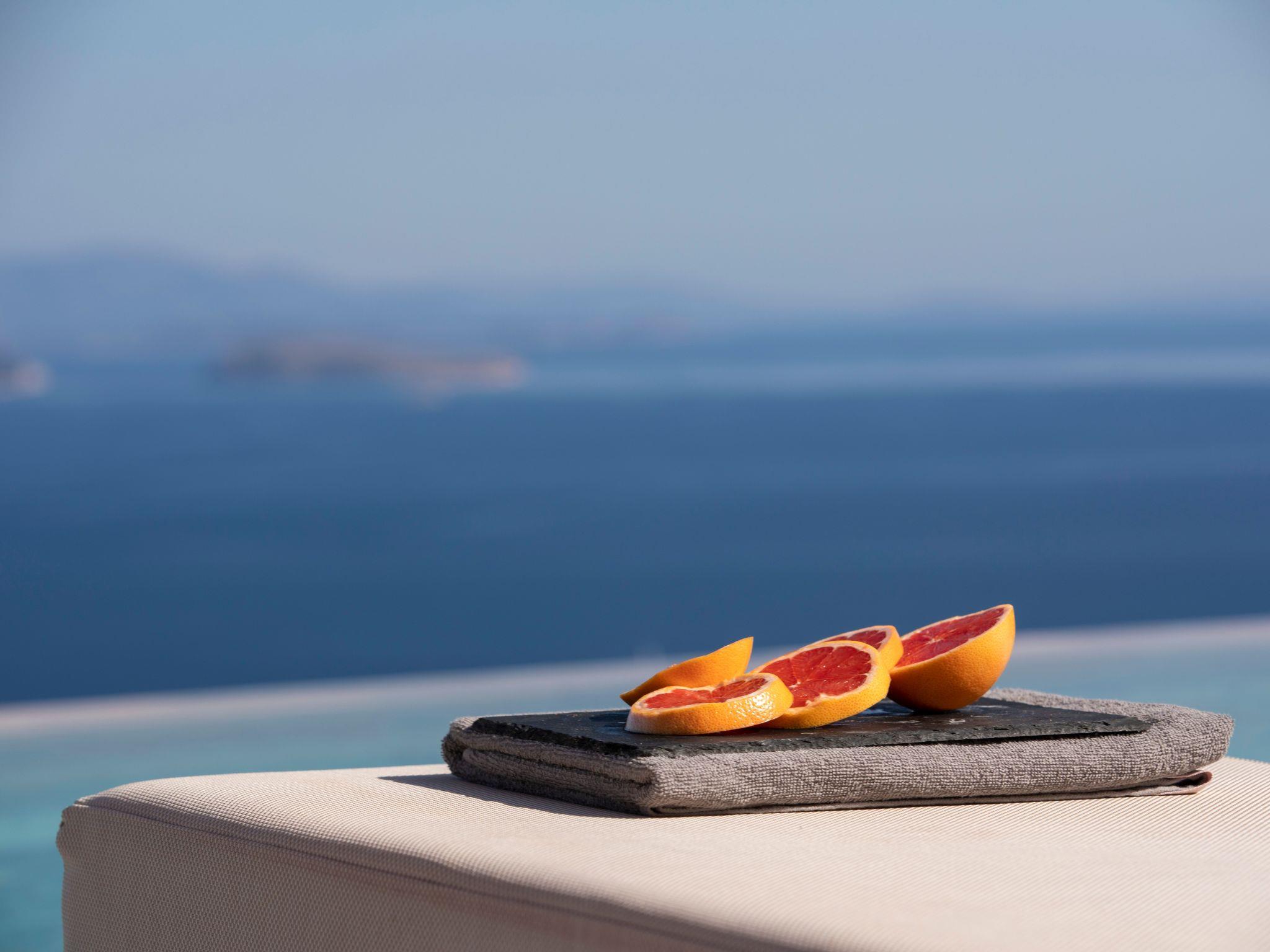 A private swimming pool with stunning sea views for refreshing swims under the Mediterranean sun.