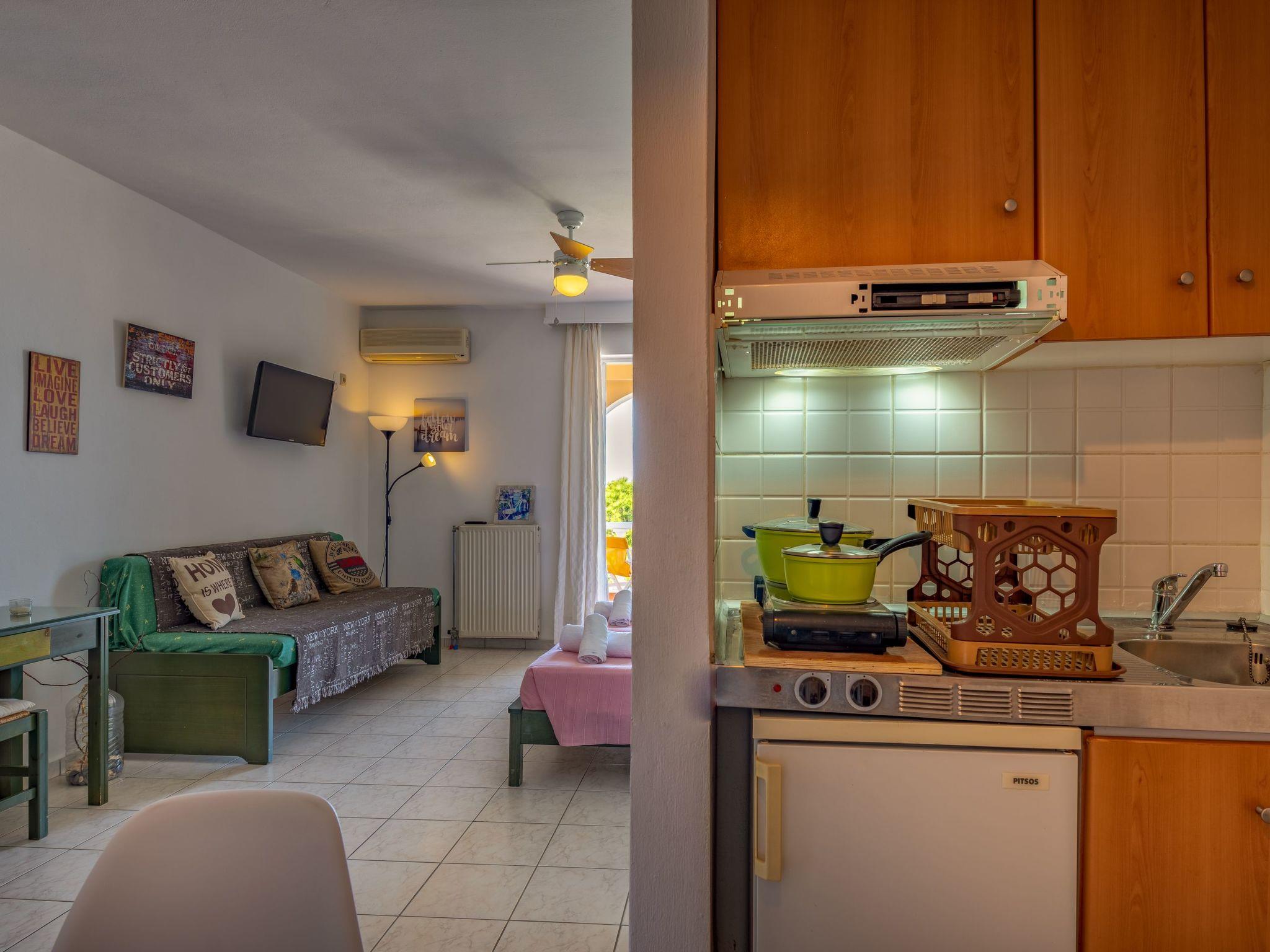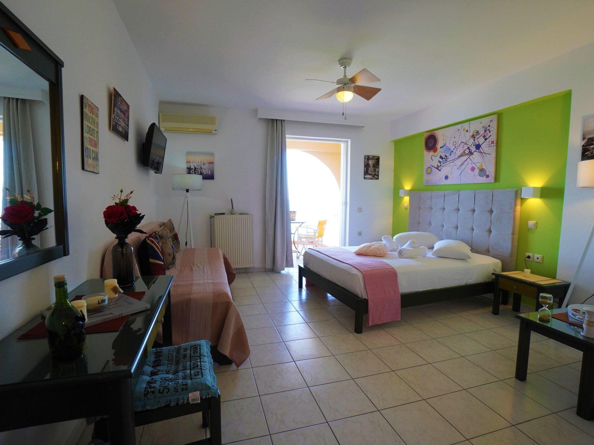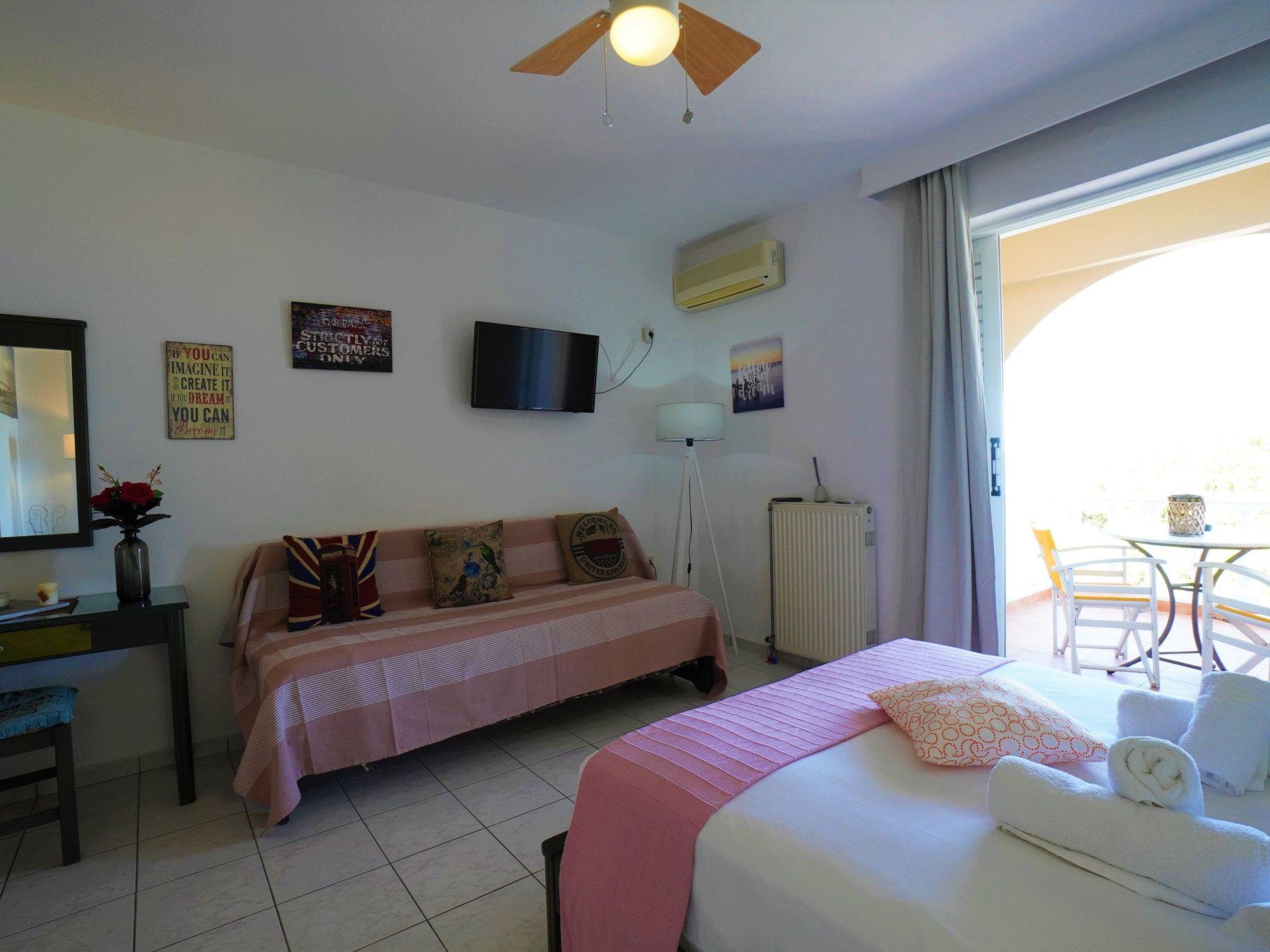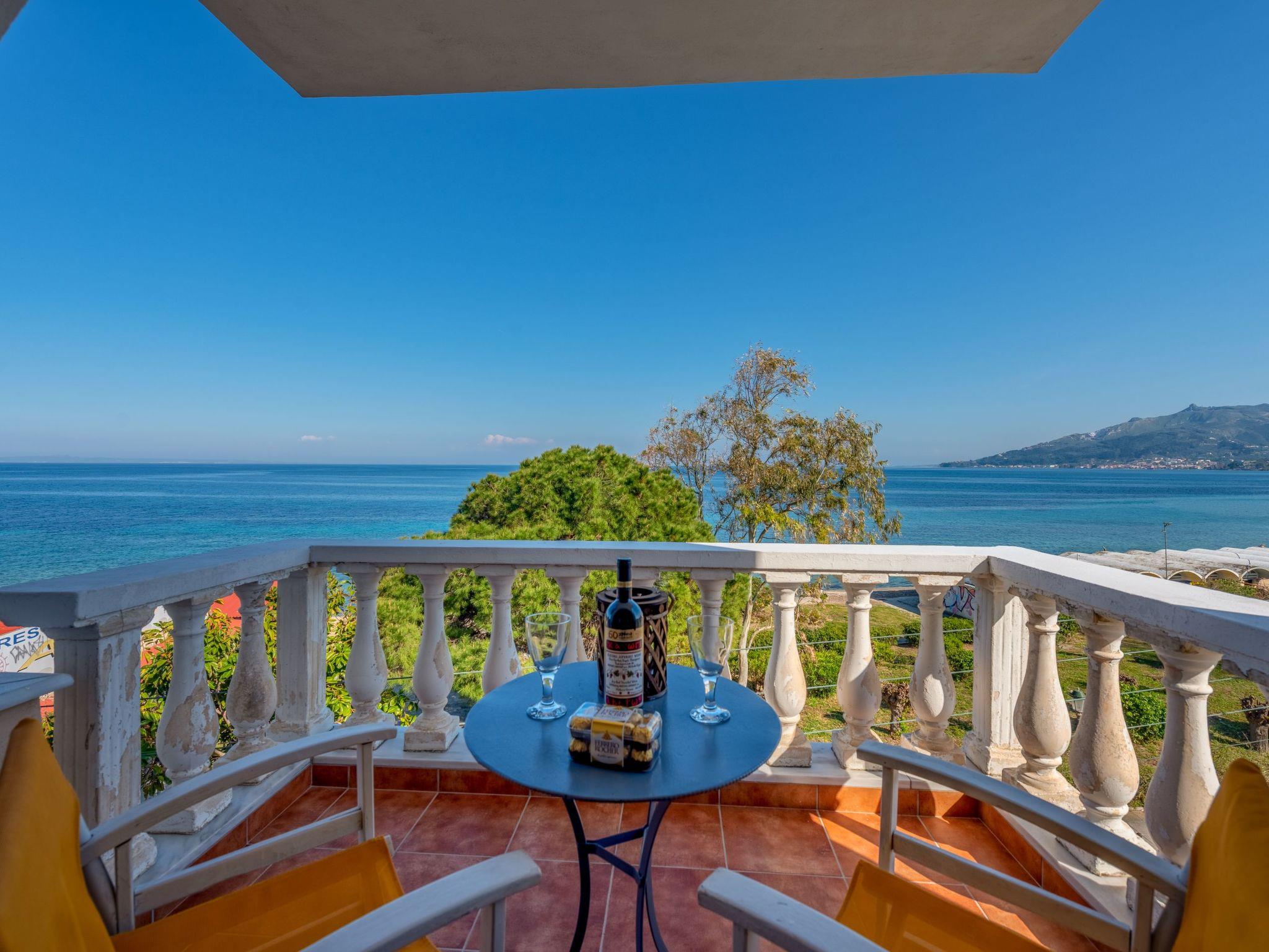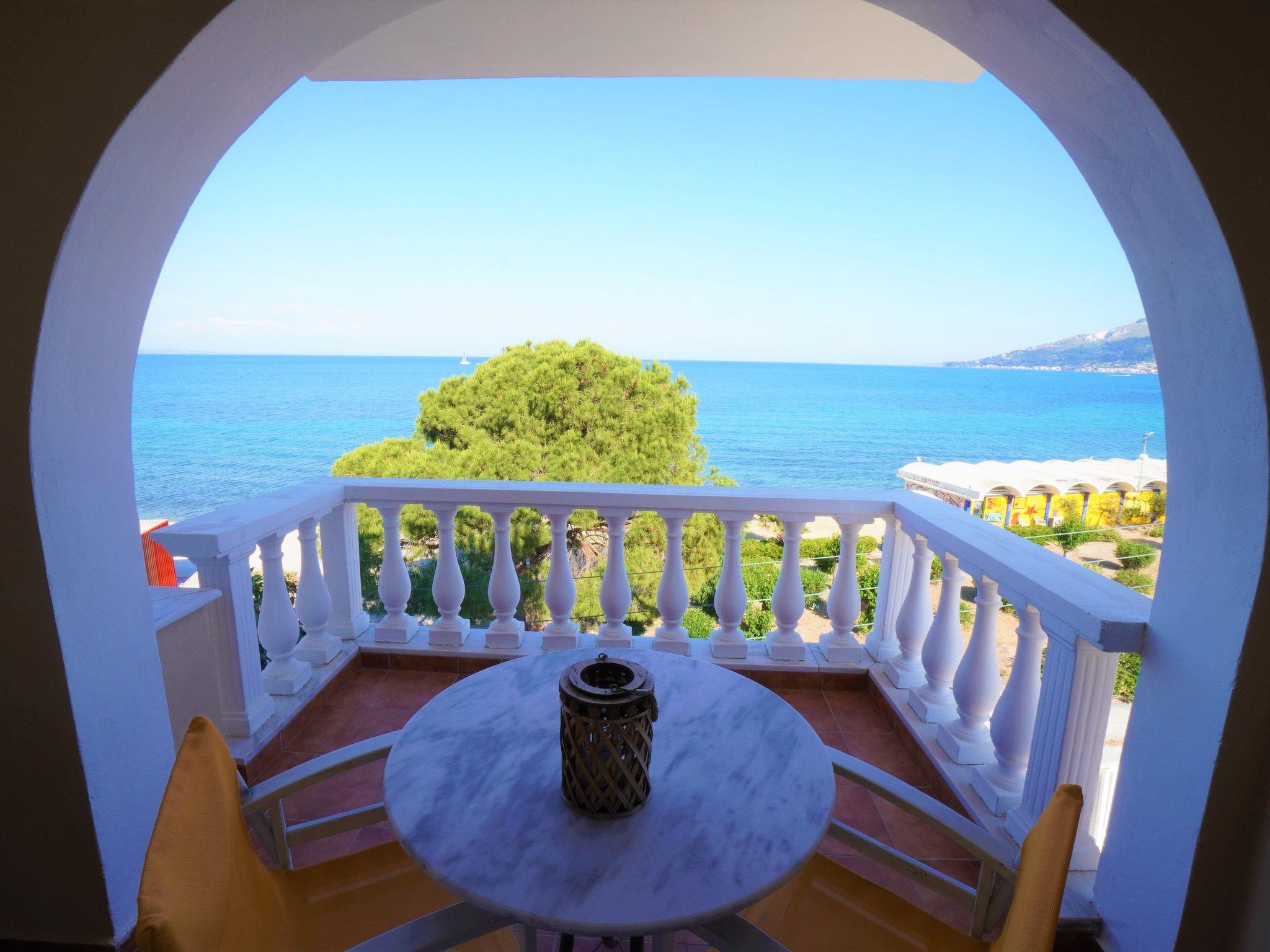 Modern studio apartment in Zakynthos with a private balcony offering beautiful sea views It is located in Holy Trinity, a residential suburb of Zakynthos town. It is in an ideal location just a very short walk from the beach. The central square of Zakynthos is 500 metres away and the port only about 1.5 km. The nearest airport is Zakynthos International "Dionysios Solomos" Airport, approximately 5 km away.