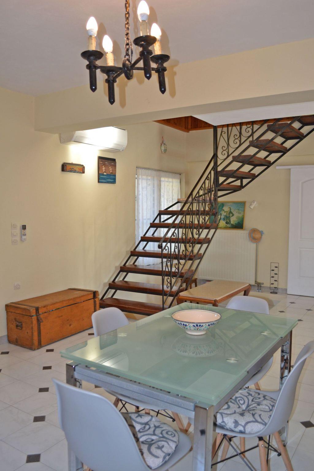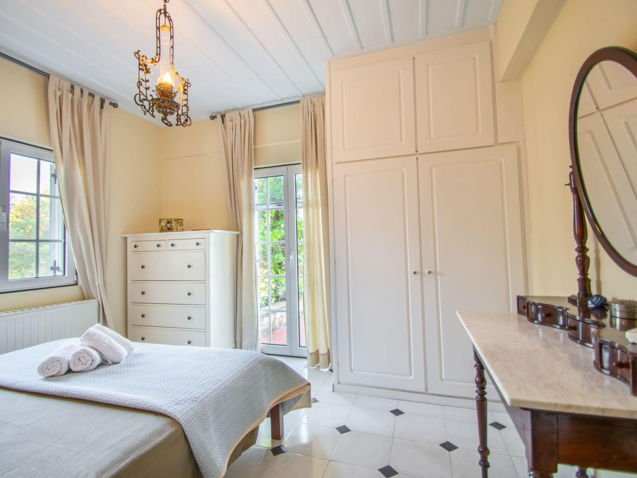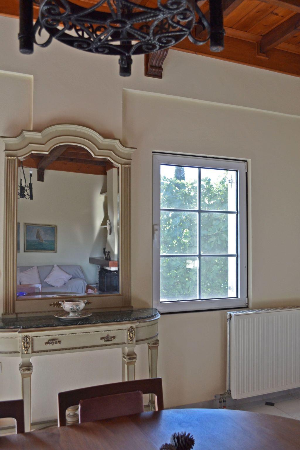 The elegant villa was built in accordance to the typical Zakynthian architecture and has only recently been fully and stylishly. It consists of three levels: ground floor, loft, and lower ground floor. The villa features four bedrooms and three bathrooms and can accommodate up to ten persons. All rooms are equipped with either air-conditioning or ceiling-fans. The ground floor has a spacious and comfortable open plan living-room / dining-room area with a fully equipped kitchen, a master bedroom with a king size bed (160 x 200 cm), a second bedroom with two single size beds (90 x 200 cm), and a bathroom with a bathtub, wash basin and toilet. The open fireplace provides a romantic ambience in the living area where you will also find a large flatscreen TV. The kitchen is complete with dishwasher, electric stove, oven, microwave, fridge with freezer compartment, kettle, toaster and coffee machine. The impressive interior staircase on the ground floor leads upstairs to the must-see, cozy loft. This open space has been converted to comfortably accommodate four persons - it is practically a separate apartment. Traditionally decorated, the loft is comprised of a double bed (160 x 200 cm), two single size beds (90 x 200 cm), a child's crib and a private bathroom with a shower, wash basin and toilet. The lower ground floor features a romantic bedroom with a vintage double bed (140 x 200 cm), a private bathroom with a shower, wash basin and toilet and a laundry area. This level may be accessed from the interior staircase on the ground floor and via its own private entrance from the yard. The villa has a washing machine, bed linen and towels are provided and WiFi is also available free of charge.