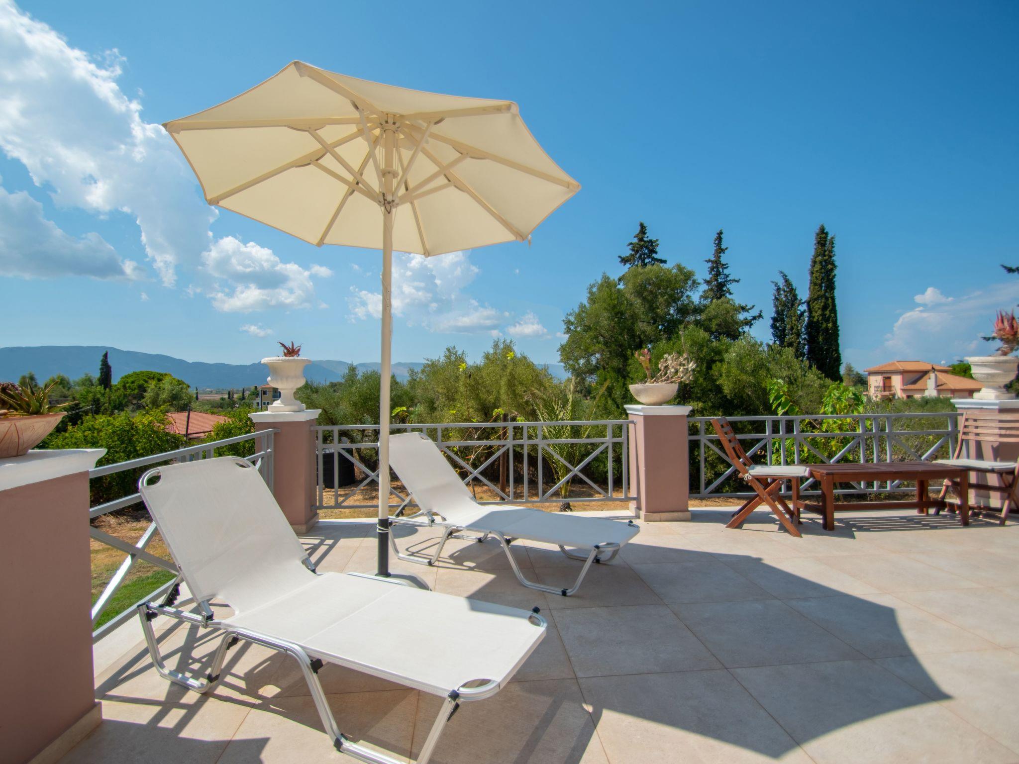 Surrounding the villa and overlooking the yard, are two lovely fully furnished terraces. Here you may relax and peacefully enjoy your meals with a picturesque view of the meadows and mountains of Zakynthos.