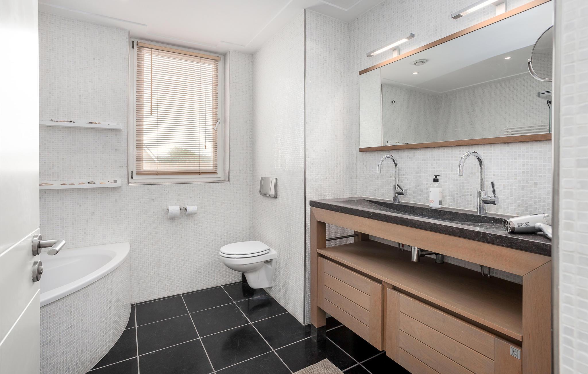 Det moderne Bulthaup-køkken er udstyret med den nyeste teknologi og har alt, hvad I forventer. I det tilstødende bryggers får I masser af lagerplads og udstyr. Soveværelserne er indrettet med fire dobbeltsenge og to køjesenge. Dørene til et af soveværelserne åbner ud til den beskyttede terrasse (40 m2). Den smukke indendørspool er unik i Bergen aan Zee.