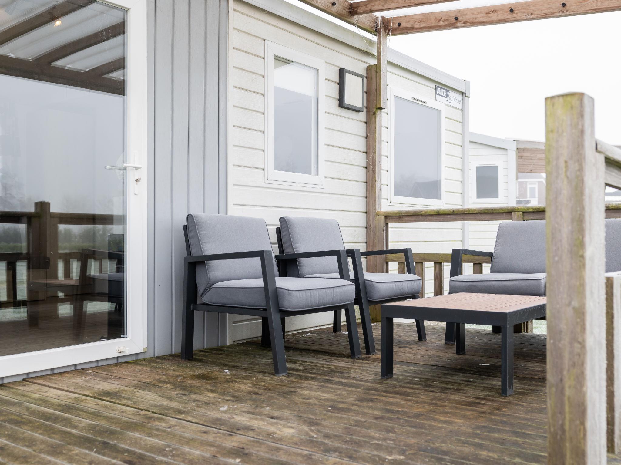 "4-persoons Hilda", 3-room mobile home 27 m2. Comfortable furnishings: living/dining room with dining table and flat screen. Exit to the terrace. 1 room with 2 beds. 1 room with 1 double bed (1 x 160 cm, length 190 cm). Open kitchen (4 hot plates, dishwasher, kettle, microwave, electric coffee machine). Shower, sep. WC. Electric heating. Terrace. Terrace furniture. Facilities: Internet (WiFi, free). Please note: non-smokers only. Maximum 1 pet/ dog allowed. Smoke alarm.