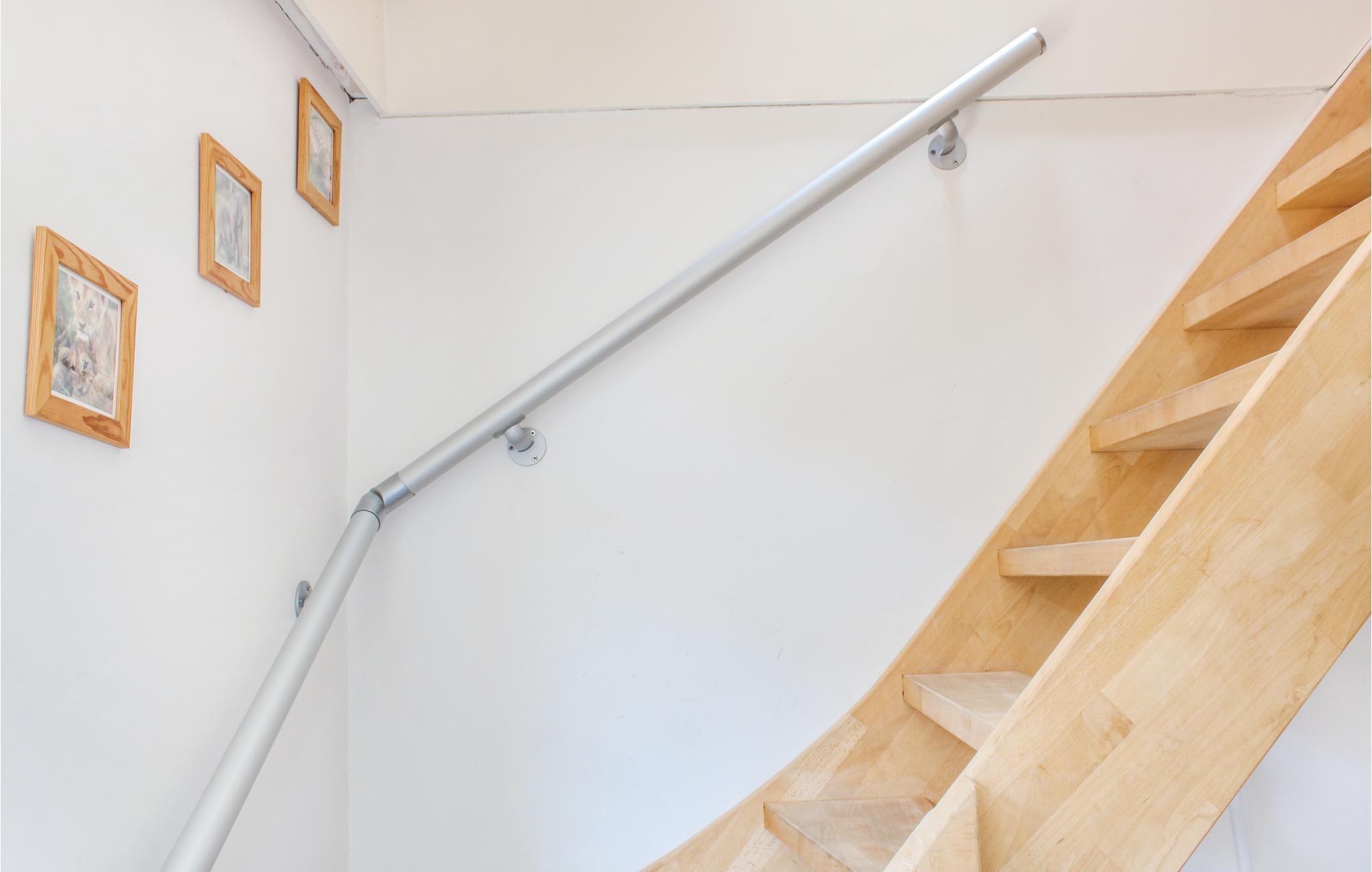 Huset ligger bag husejernes hus, men haven er delt så I har jeres privatliv i fred. Stedet er perfekt for hunde og de er hjertelig velkommen. Indvendigt er der et veludstyret køkken med kaffemaskine og mikroovn. Badeværelset ligger i stueetagen. De to soveværelser ligger på første sal, adskilt af en gang.