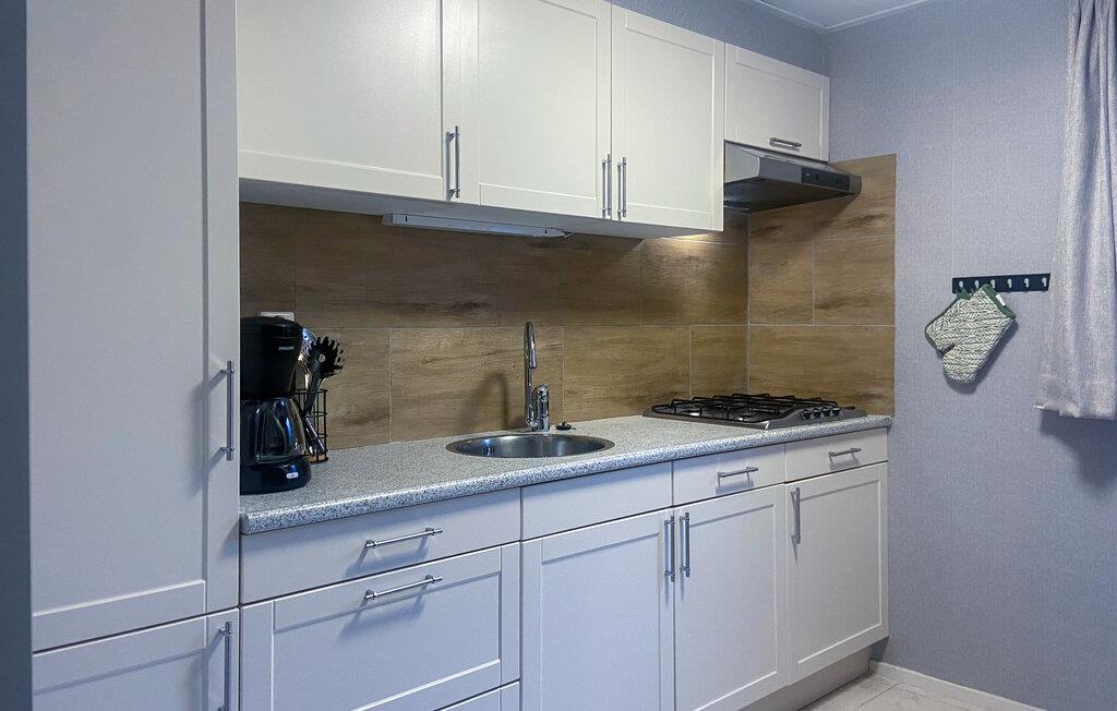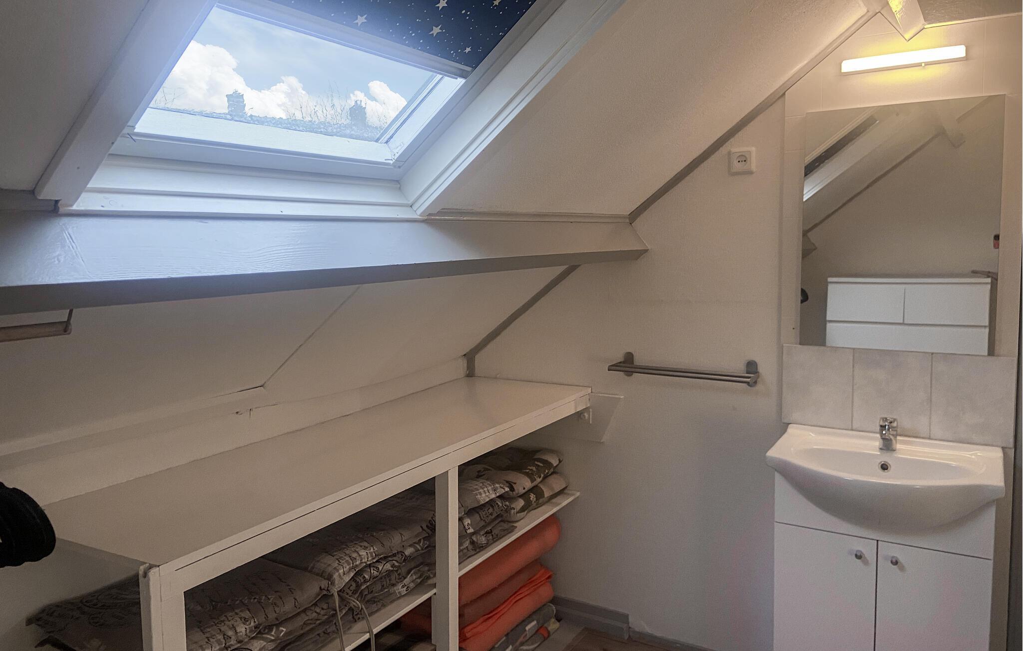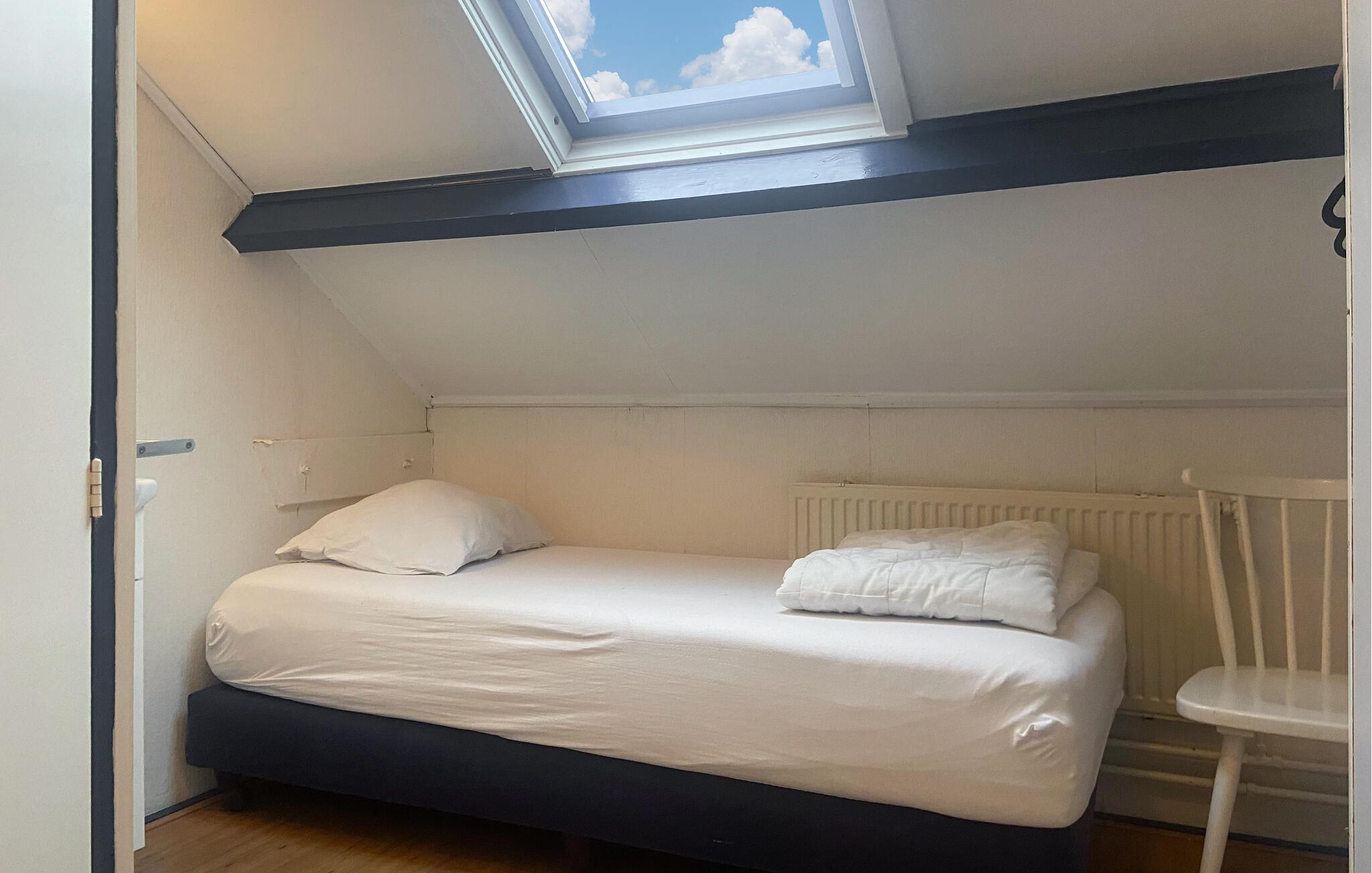 Huset har et rummeligt køkken med en filterkaffemaskine og en kombineret mikrobølgeovn. Badeværelset er i stueetagen. Her er der et brusebad, en håndvask og et toilet. De to soveværelser er på 1. sal, og der er en passage mellem de to soveværelser. Et soveværelse har 2 enkeltsenge, det andet 3 enkeltsenge. Nyd dette hyggelige feriehus i smukke Egmond aan Zee.