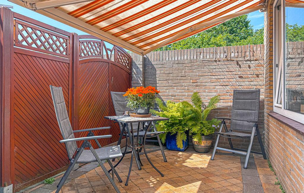 Udnyt det overdækkede udendørsområde til afslappende øjeblikke i den friske luft. Nyd morgenmaden på den lille terrasse, som er udstyret med en parasol. Blomsterdekorationer og grønne planter skaber en behagelig og afslappende atmosfære.