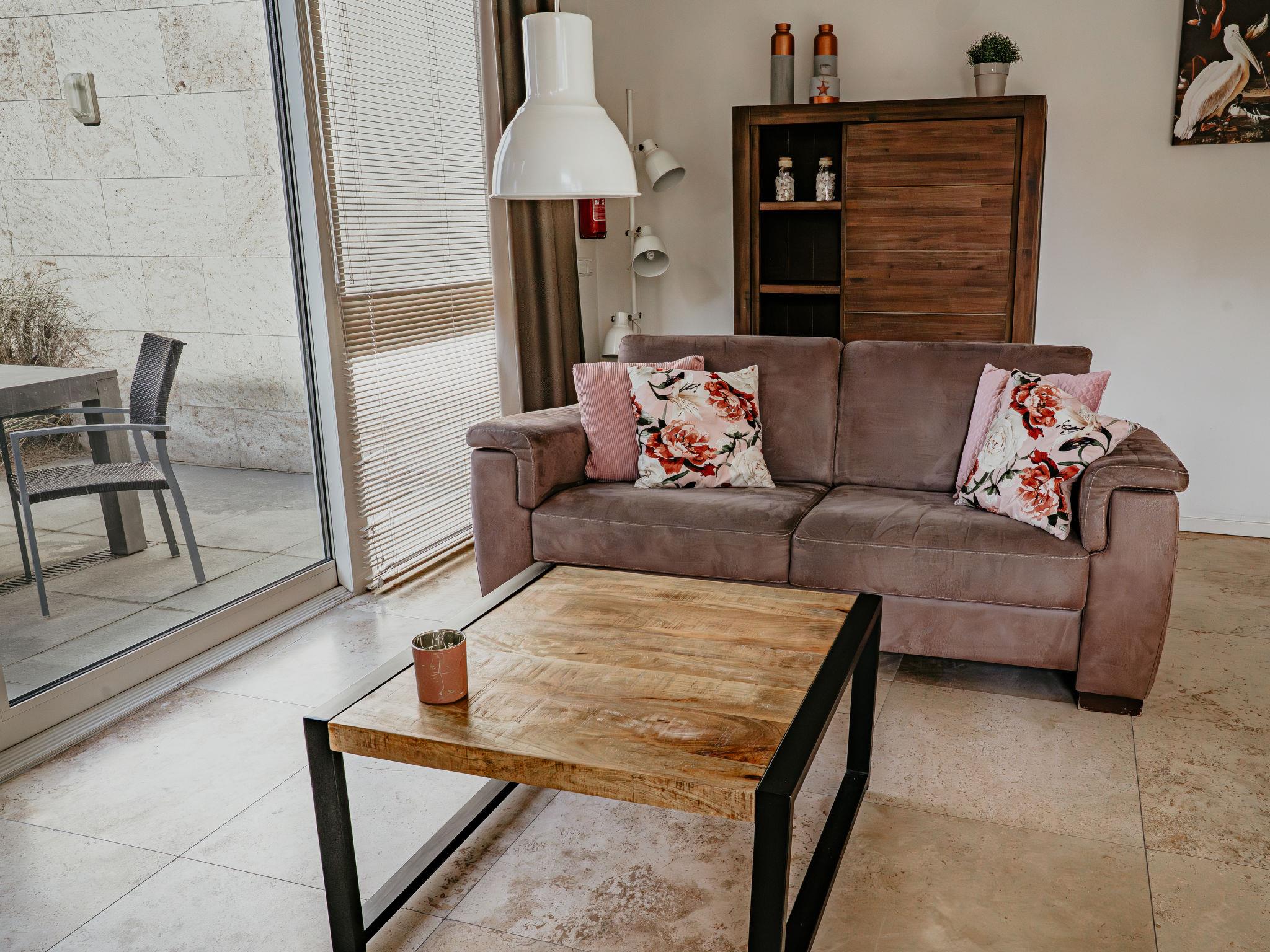 "Sea Bass", 3-room bungalow 80 m2. Bright, comfortable and tasteful furnishings: entrance hall with separate WC. Open living/dining room with dining table, TV, CD-player and DVD. Exit to the terrace. Open kitchen (4 hot plates, oven, dishwasher, electric coffee machine) with dining table. Heating. Upper floor: with sloping ceilings, 2 double bedrooms, each room with 2 beds. Shower/WC, double hand-basin. Terrace. Terrace furniture. Facilities: washing machine, dryer. Please note: non-smoking house. Maximum 2 pets/ dogs allowed. Smoke alarm. Pets on request.