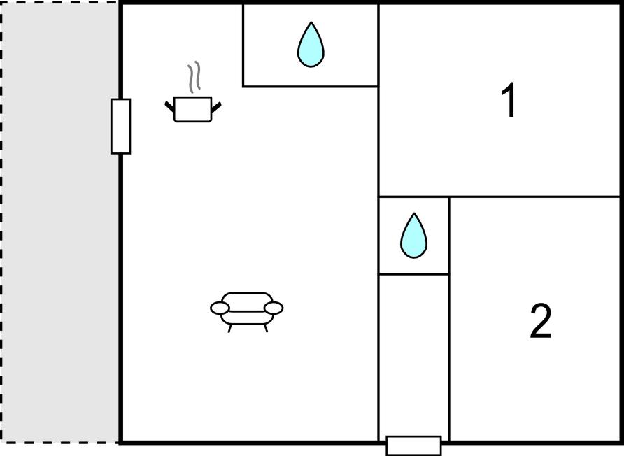 Soveværelse (nr. 1) - 2 Sovepladser. (Enkeltseng(e)).