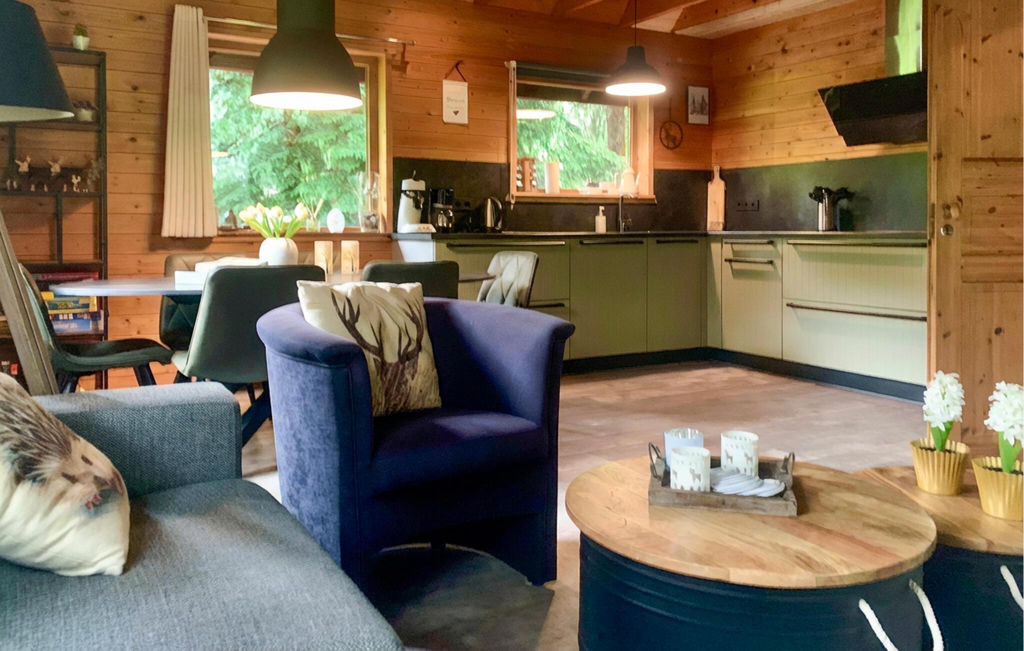 Nyd roen i dette dejlige feriehus til seks personer. Det ligger i provinsen Gelderland og er renoveret i 2016. huset er velindrettet og har alt i udstyr. Huset har tre soveværelser med dobbeltsenge, badeværelse med bruser og et gæstetoilet. Haven er nærmest integreret i den skovrige landskab og har både gynge, grill og bålsted. Det er skønt at sidde på den overdækkede terrasse uanset årstiden. Det kan anbefales at opleve den smukke natur ved Veluwe på nærmeste hold enten på cykel eller på gåben. I de nære omgivelser er der mange oplevelser: Nyd en tur i saunaen i wellnessresortet Veluwse Bron eller i Wellness Komplex Zwaluwhoeve. Besøg byen Apeldoorn med en hyggelig midtby og den Zoologiske Have Apenheul. Også det fyrstelige palads "het Loo", Dolfinariet og Walibi World i Biddinghuizen ligger indenfor bekvem afstand fra feriehuset.