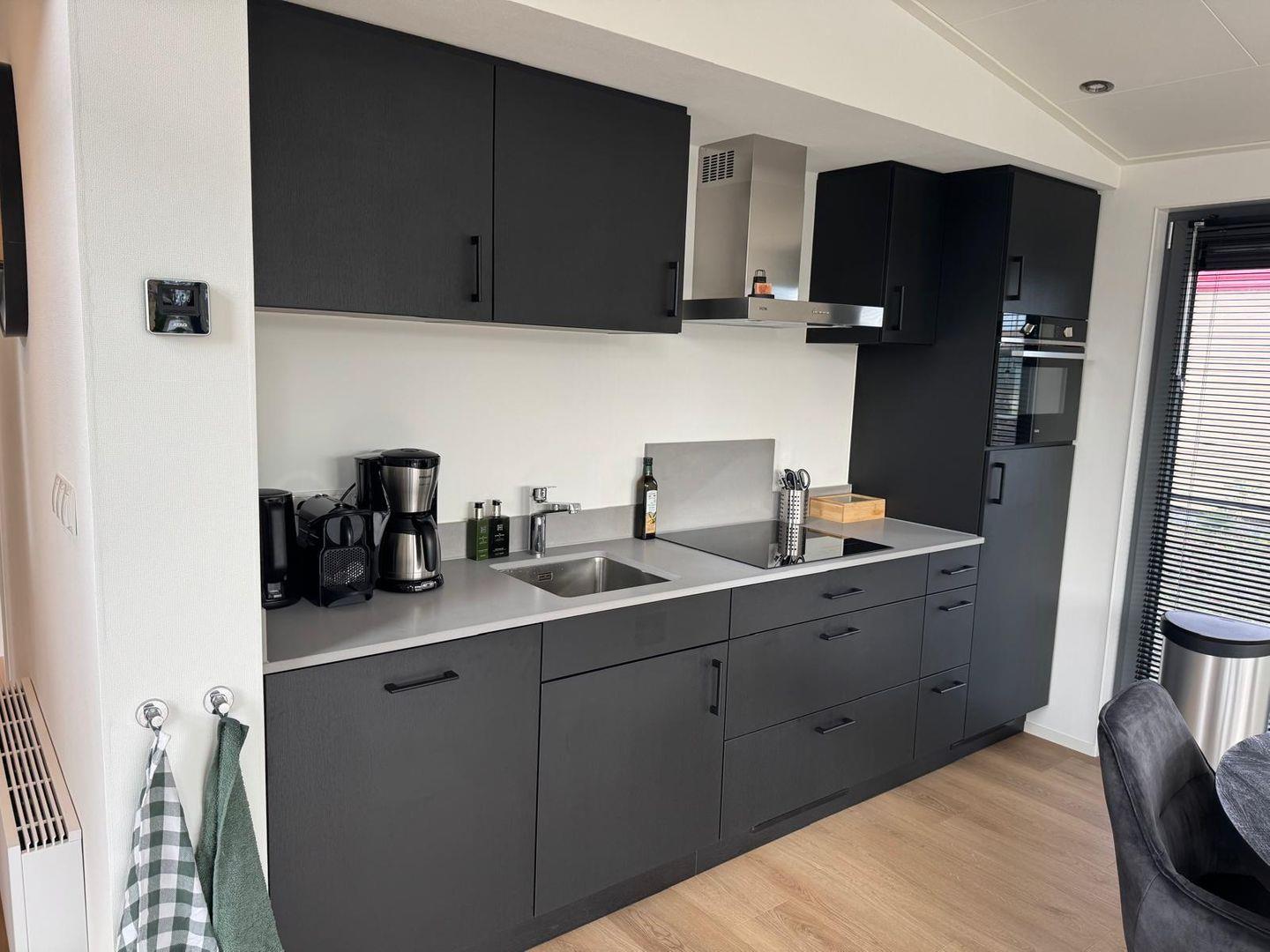 Die voll ausgestattete Küche lässt keine Wünsche offen: Induktionsherd, Backofen, Mikrowelle, Spülmaschine sowie umfangreiches Geschirr und Besteck bieten alles, was Sie für genussvolle Kochabende brauchen.
